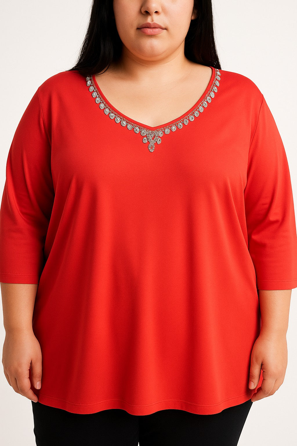 Tunica taglie forti con dettagli decorativi, rossa