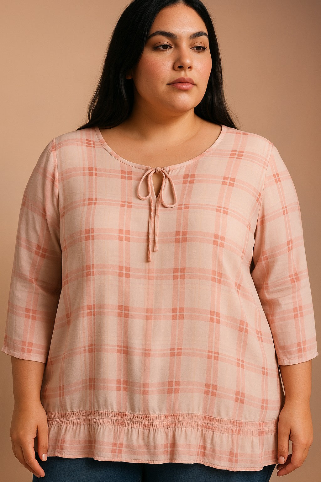 Tunica trasparente taglie forti con stampa a quadri, rosa