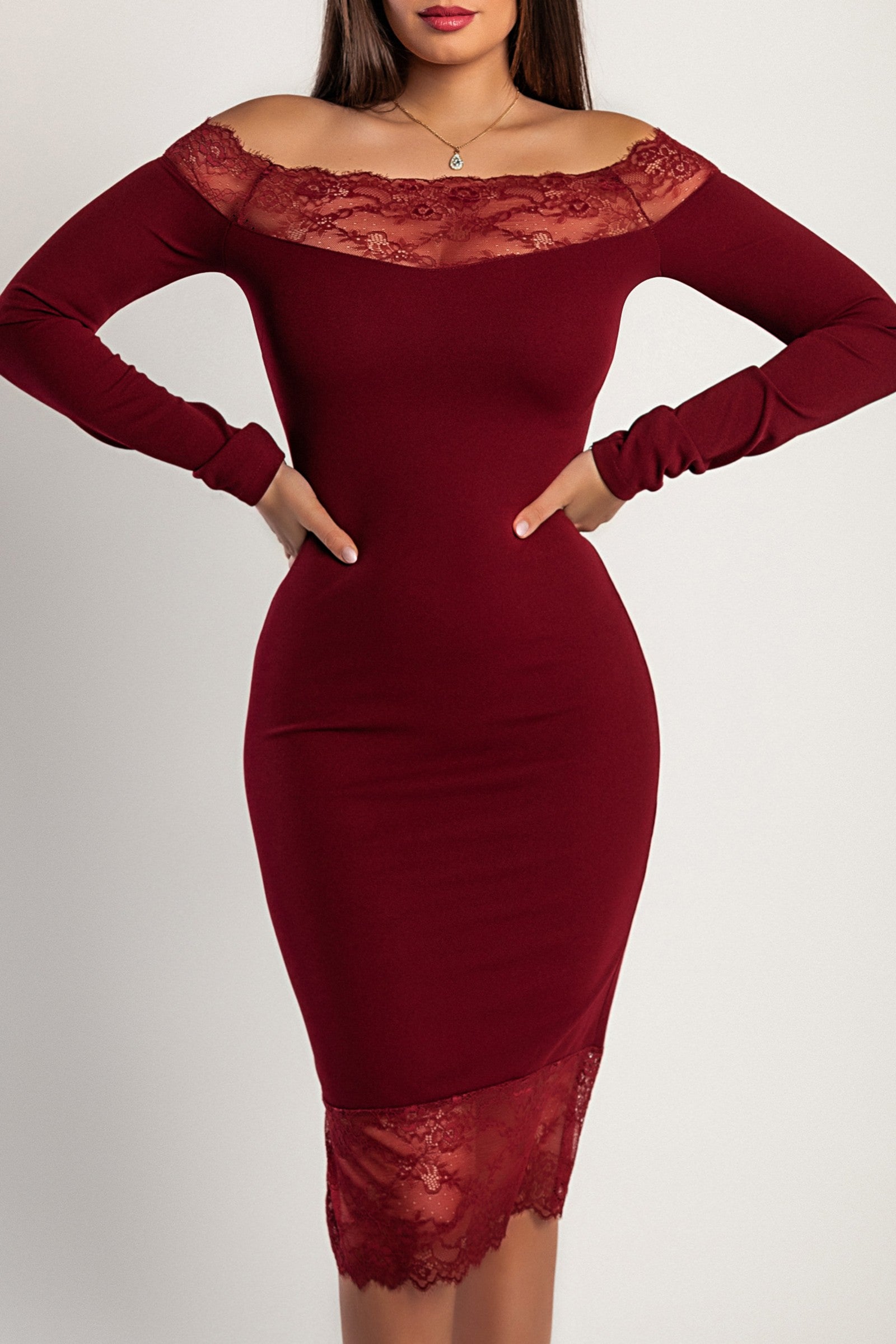Abito elegante midi a maniche lunghe con dettaglio in pizzo trasparente Avignon, nero