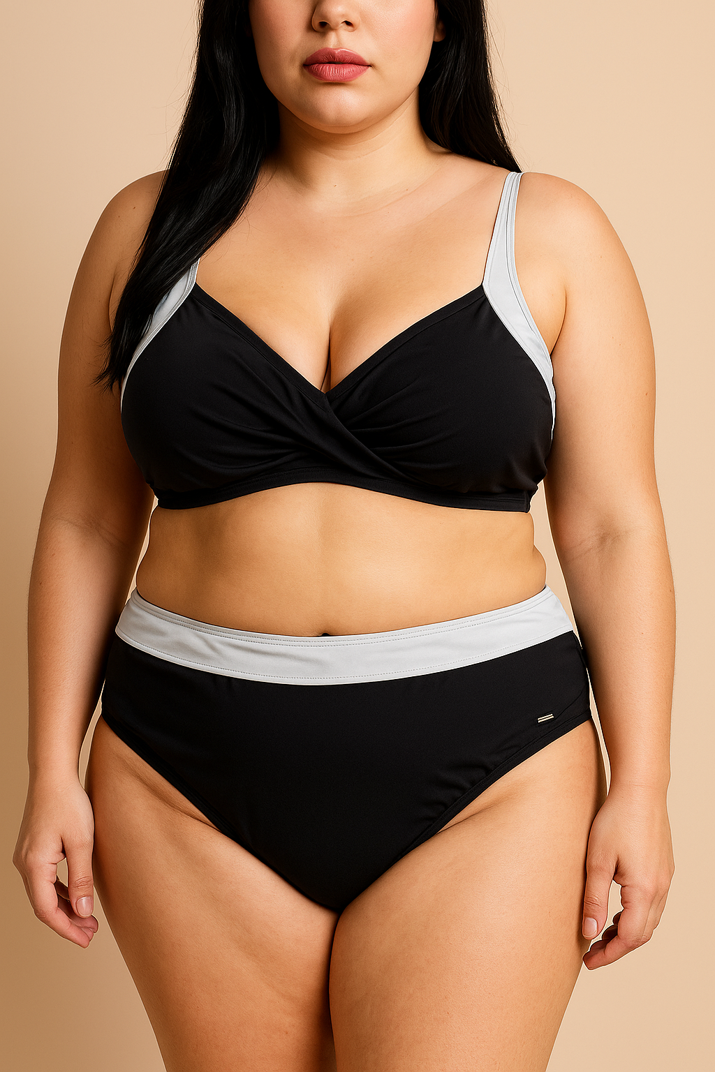 Costume da bagno due pezzi taglie forti con stampa, nero