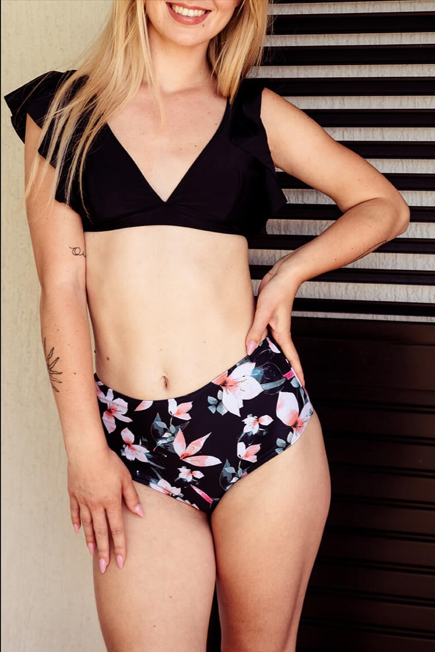 Costume da bagno due pezzi con reggiseno imbottito, nero e giallo