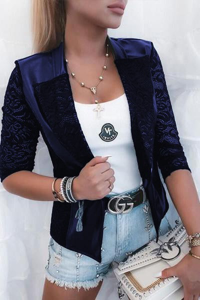 Blazer in similpelle con pizzo Amalfi, blu scuro