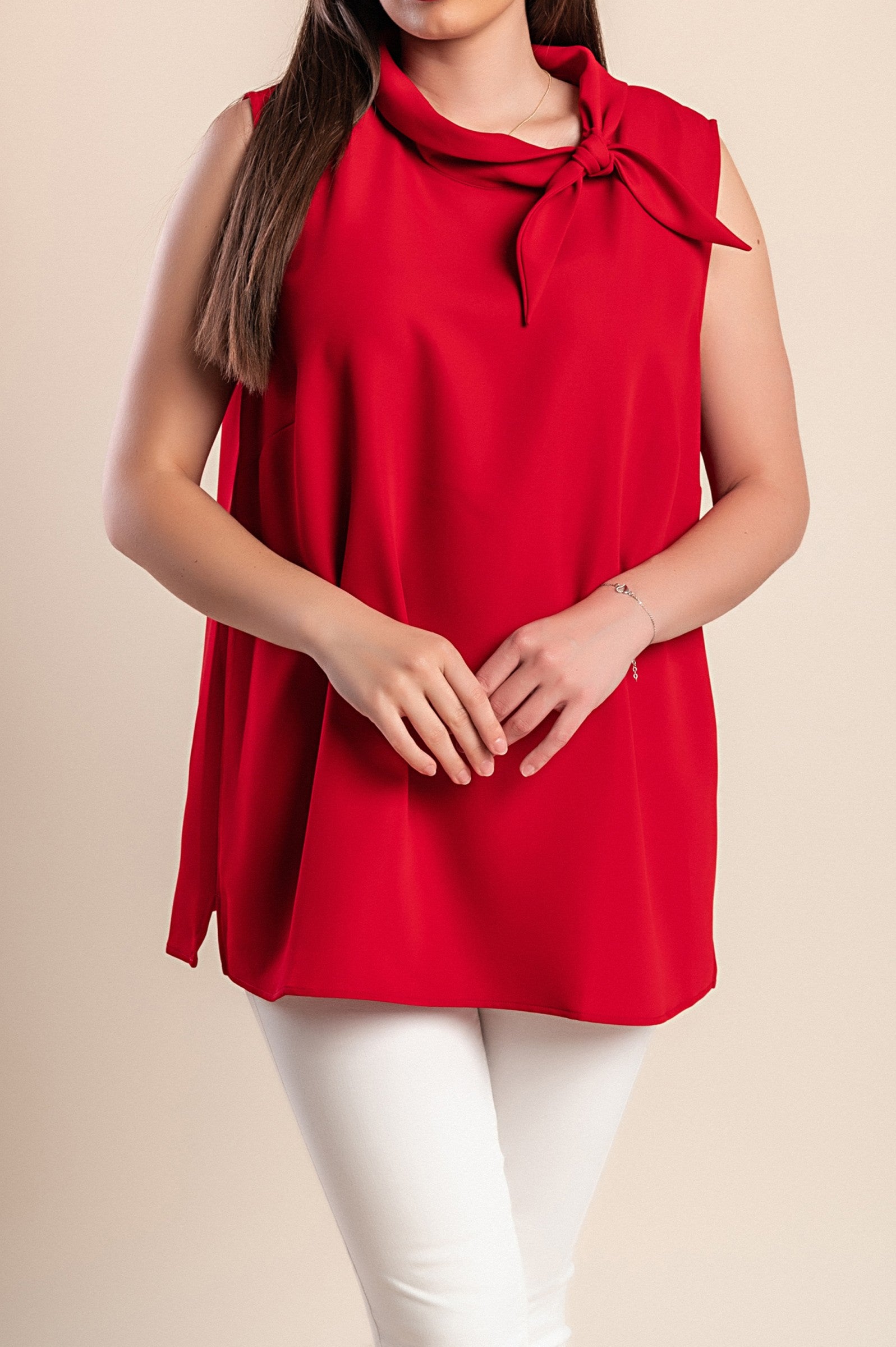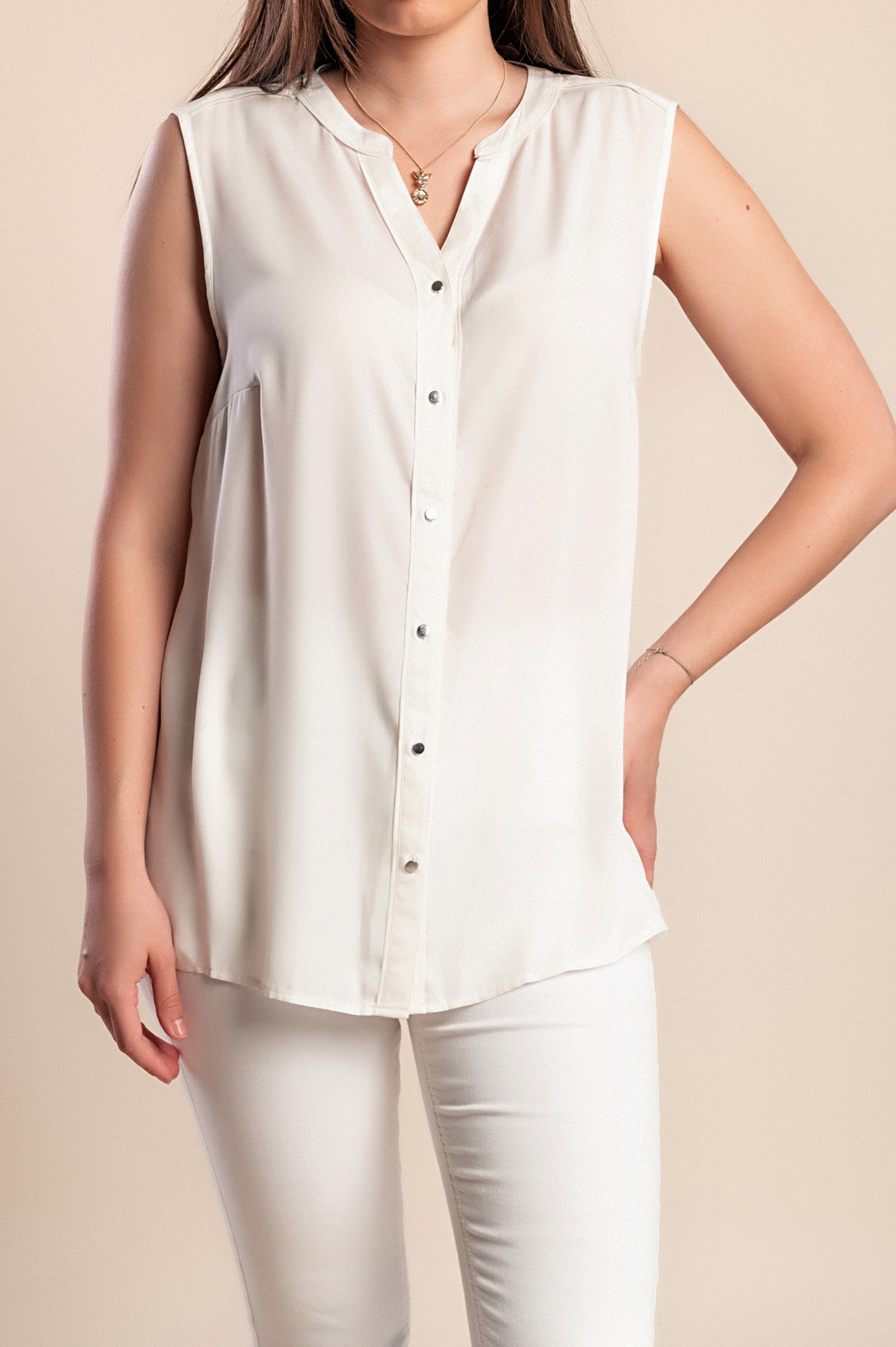 Camicetta senza maniche in taglie forti con dettagli decorativi, bianca