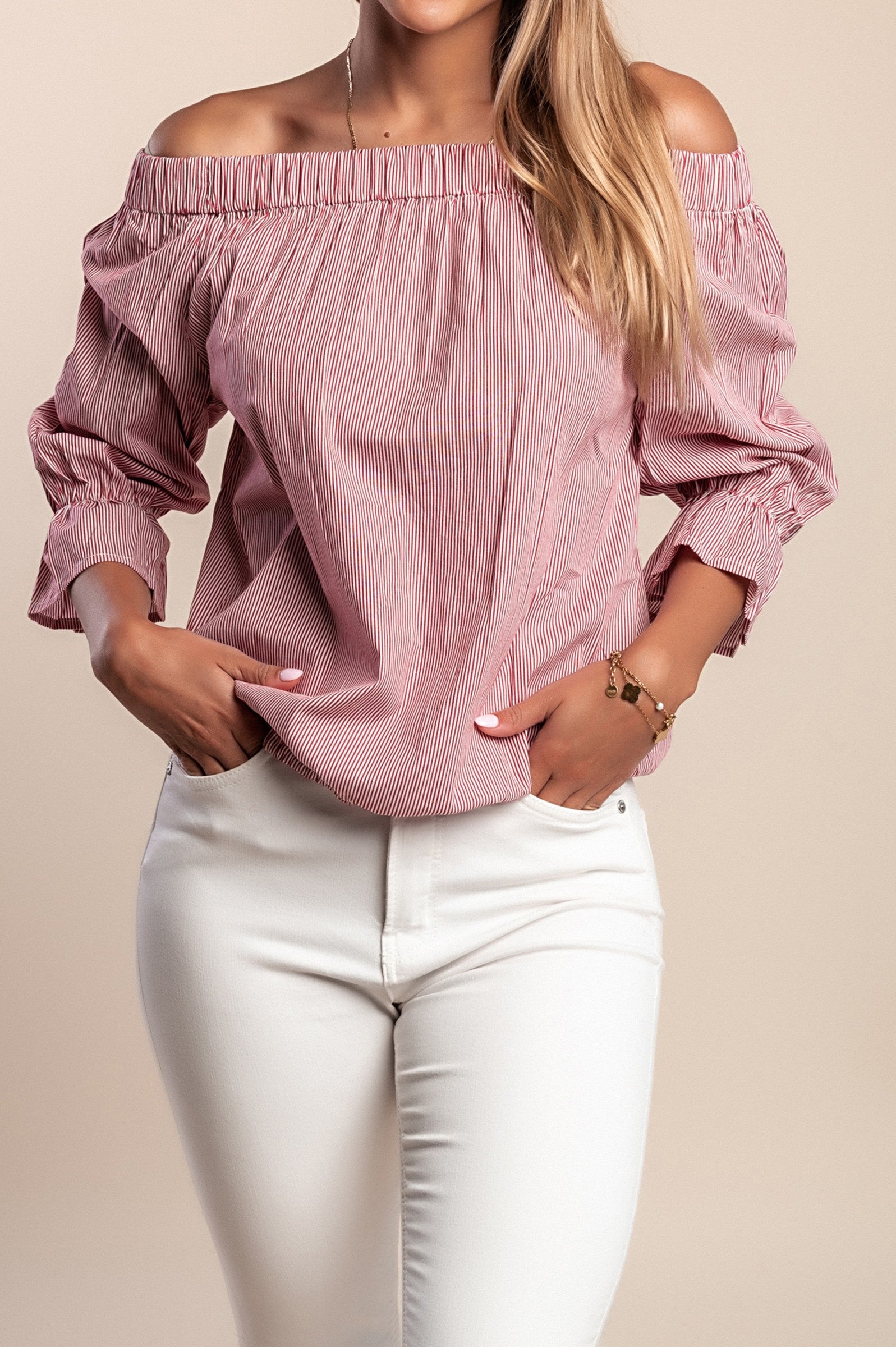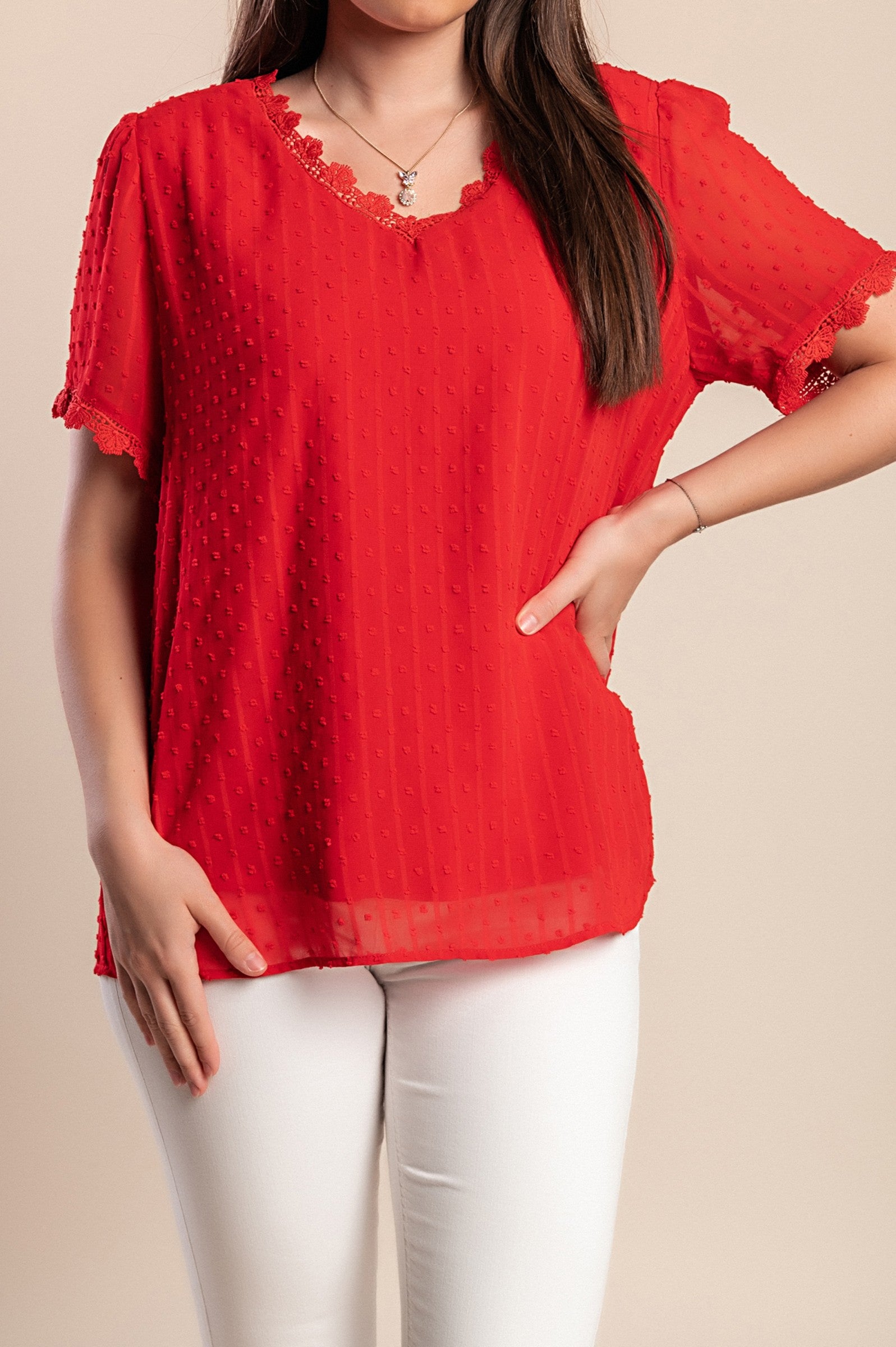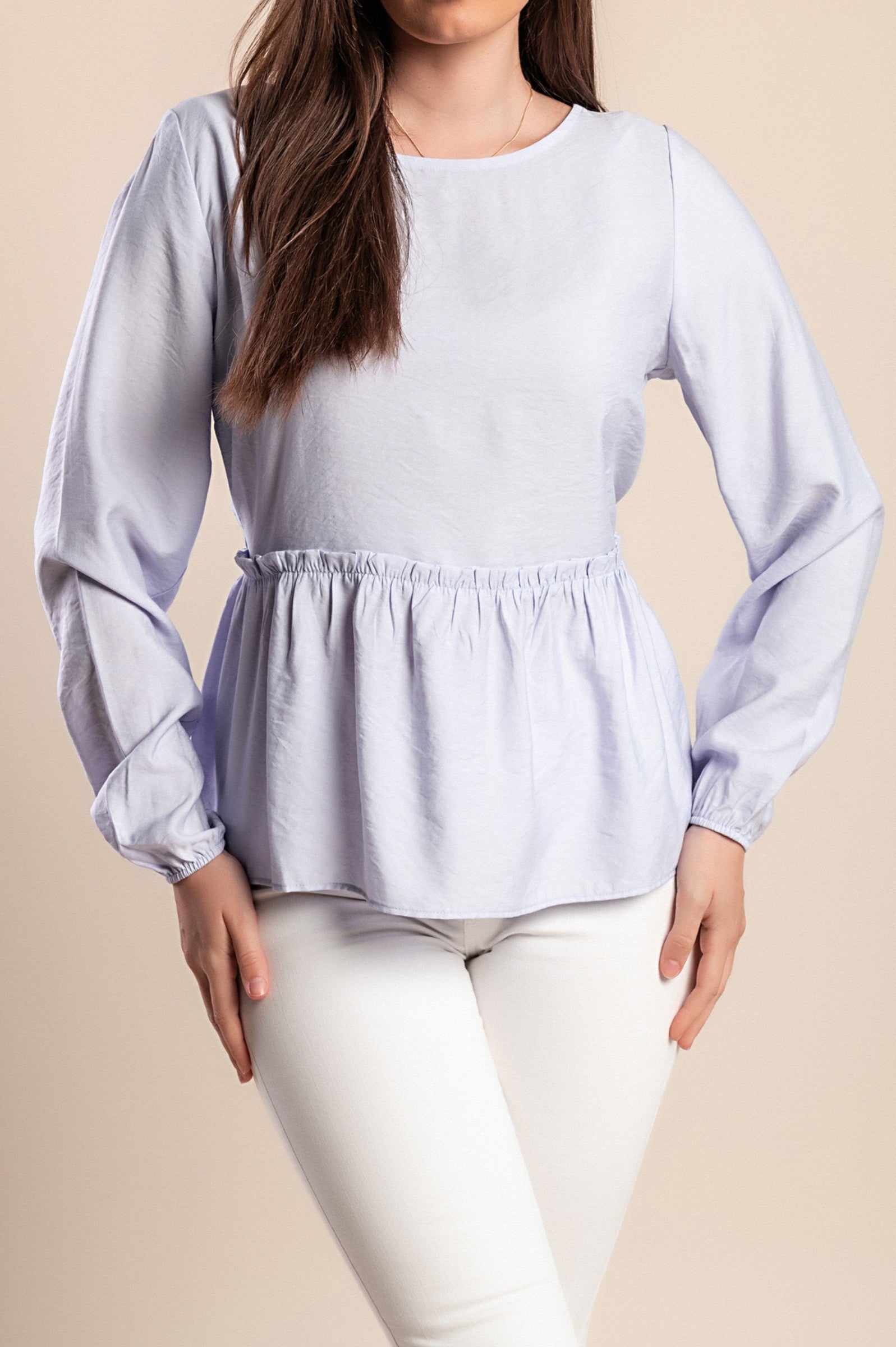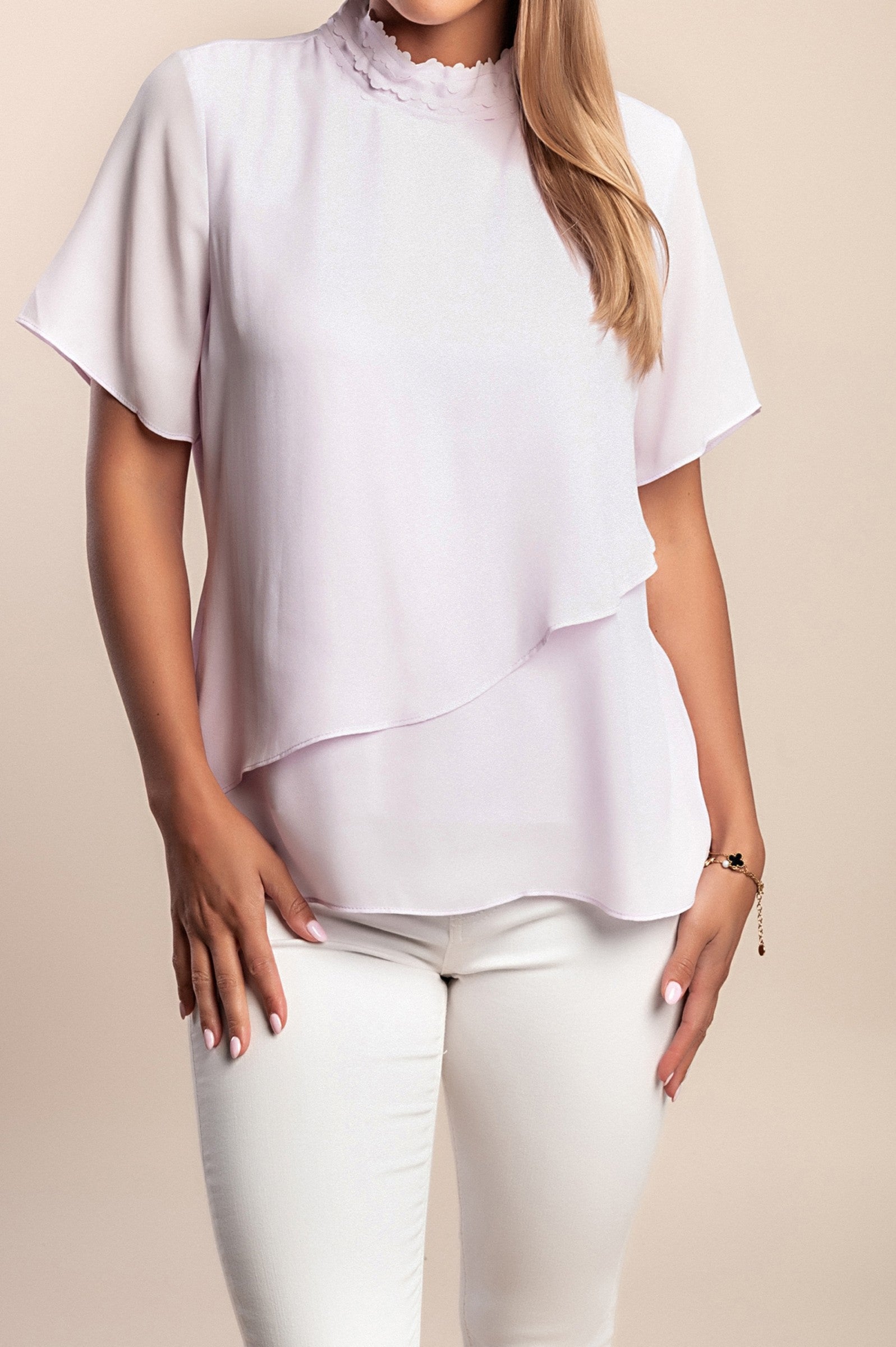 Blusa elegante ampia con scollo a "V", colore rosa chiaro
