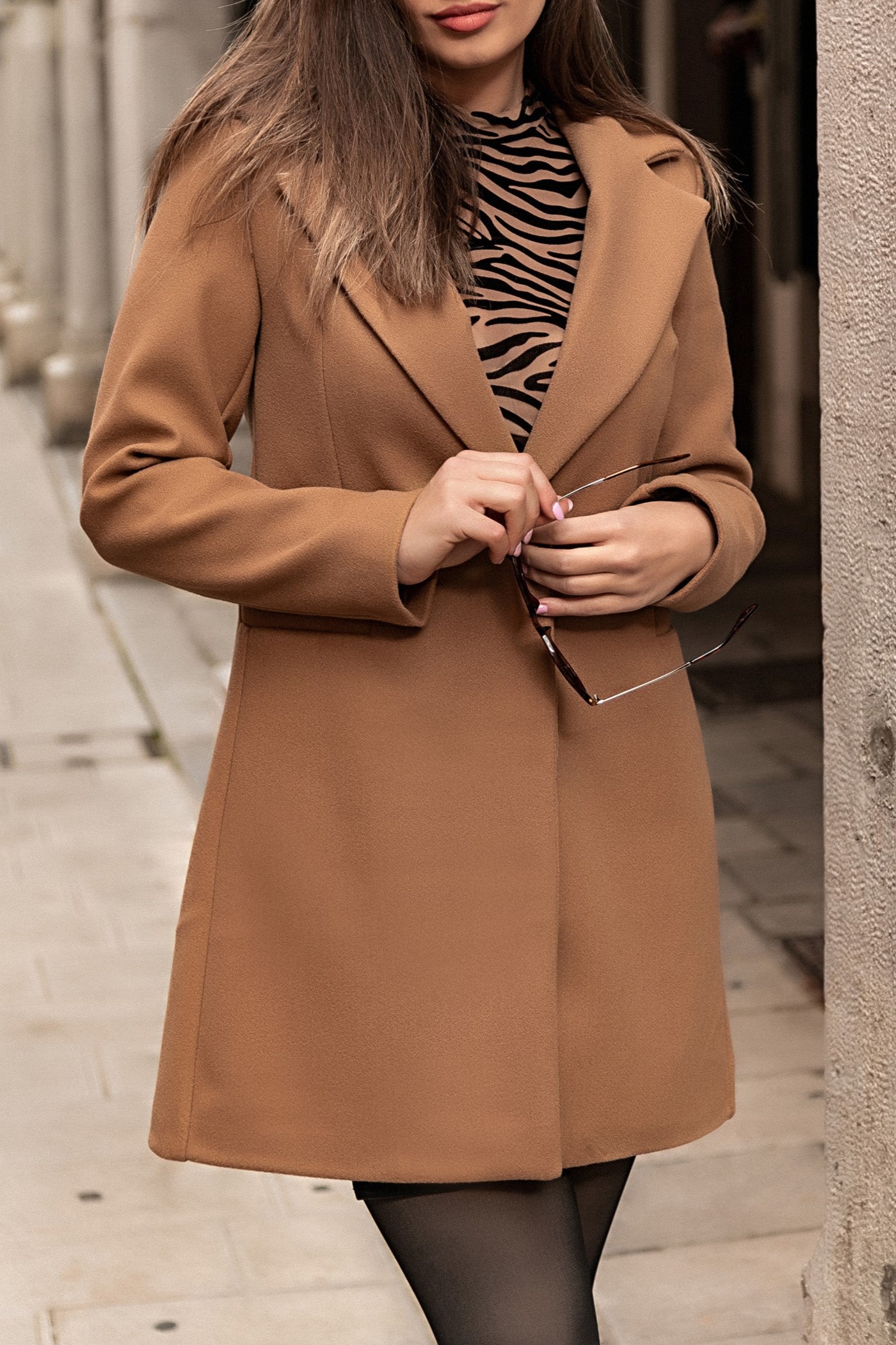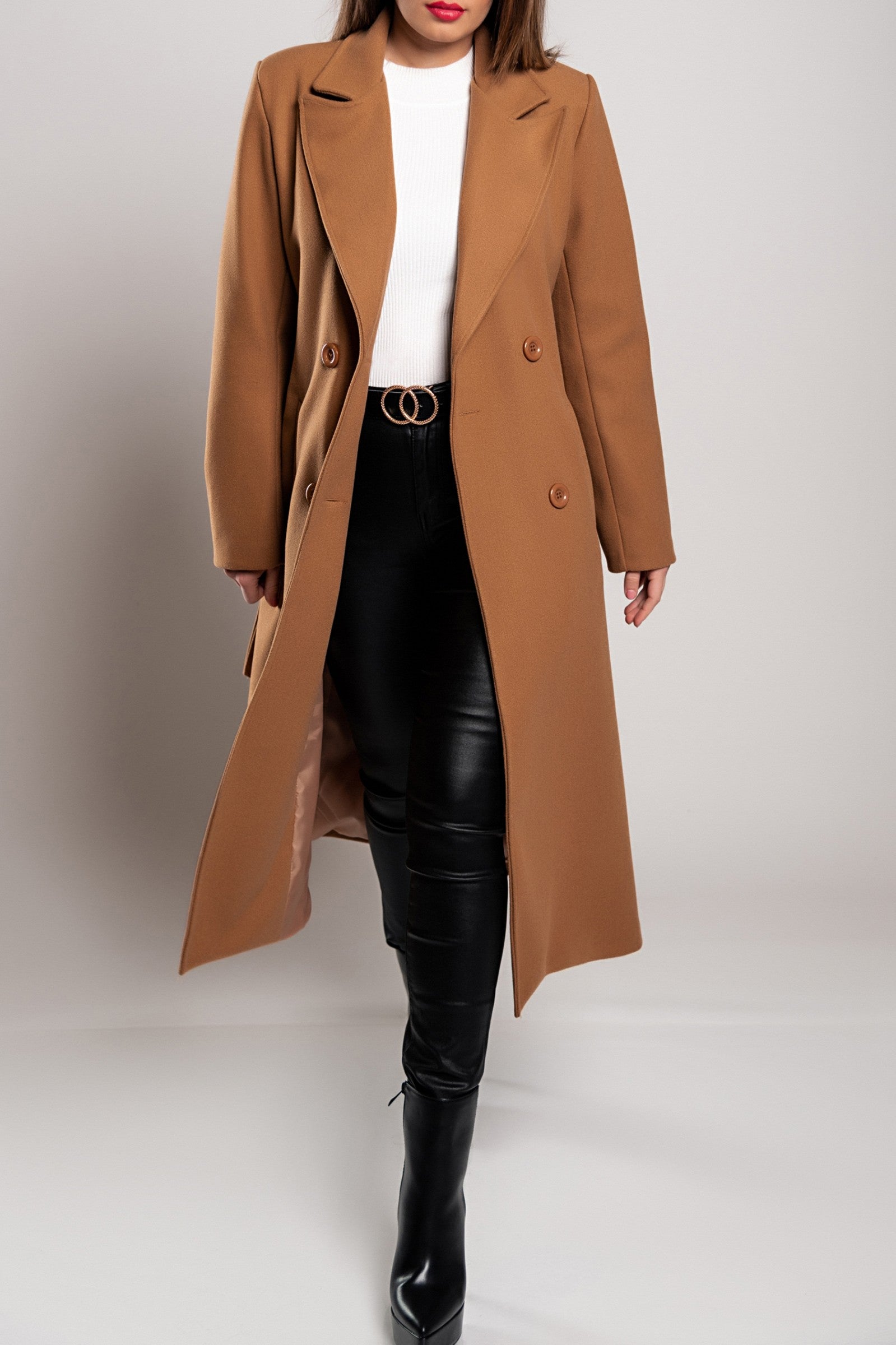Cappotto lungo elegante in eco pelliccia Benimia, cammello