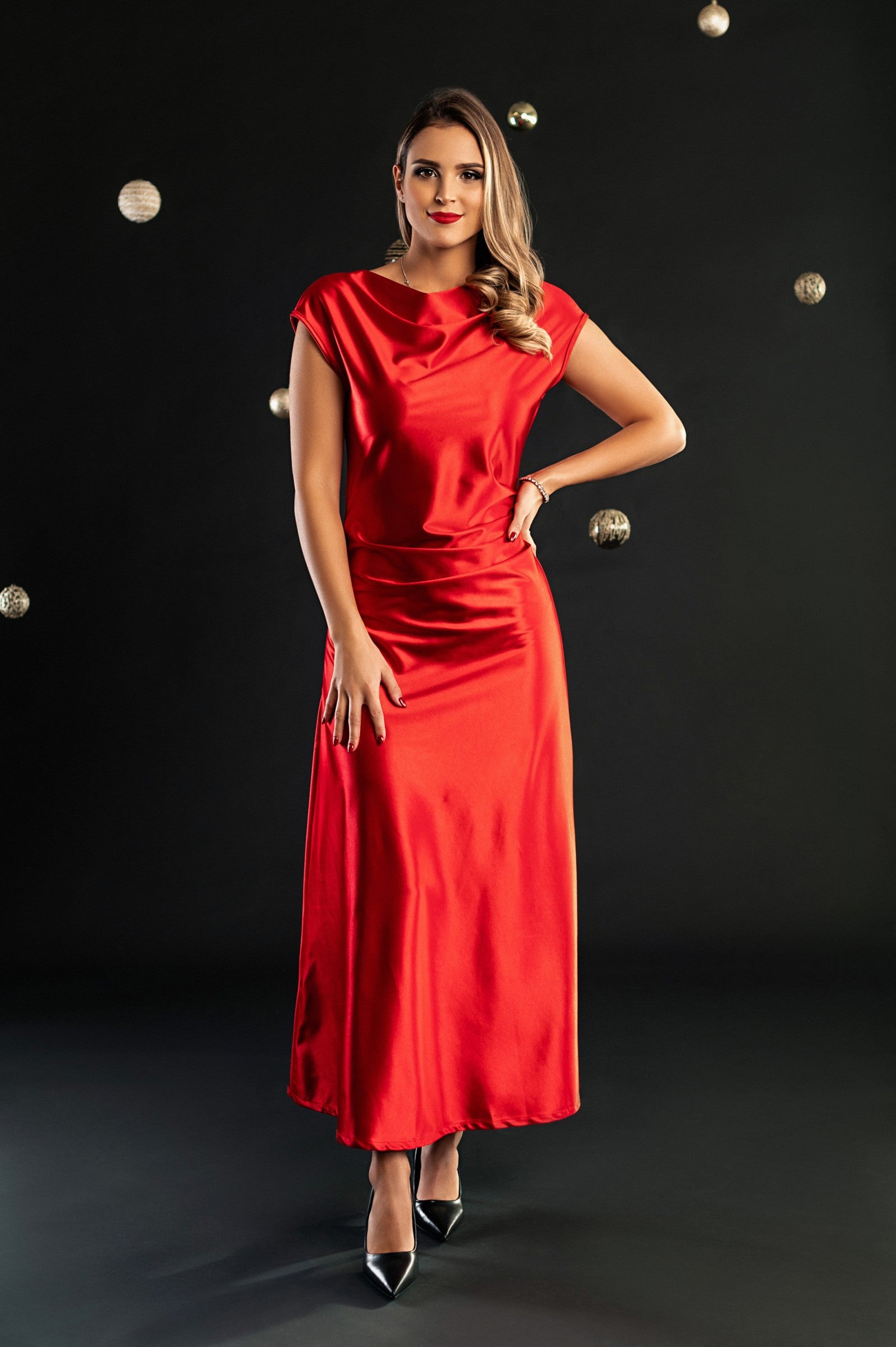 Vestito elegante ad incrocio e bottoni Karsyn, rosso
