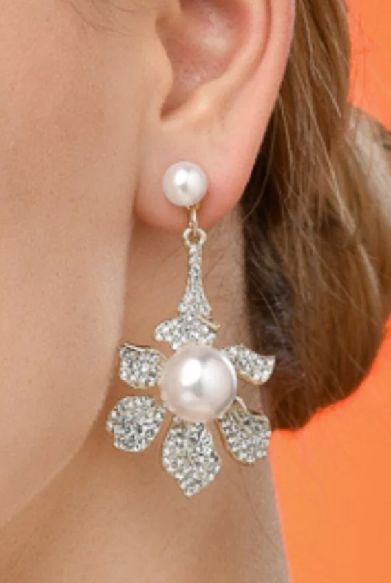 Orecchini eleganti con strass, bianchi
