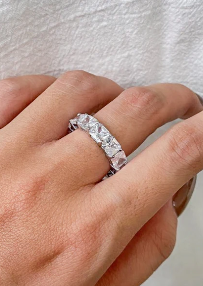 Anello in argento con strass, colore argento