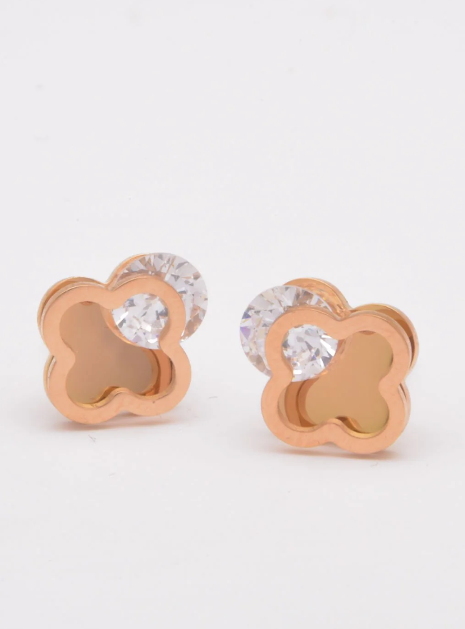 Eleganti orecchini a bottone con strass, ART510, oro rosa