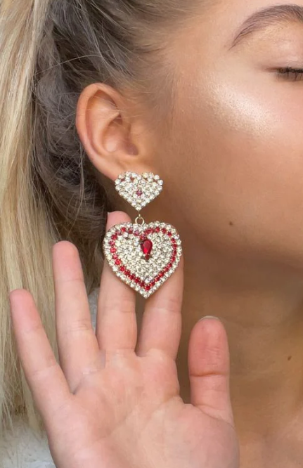 Eleganti orecchini a forma di cuore, ART365, colore rosso