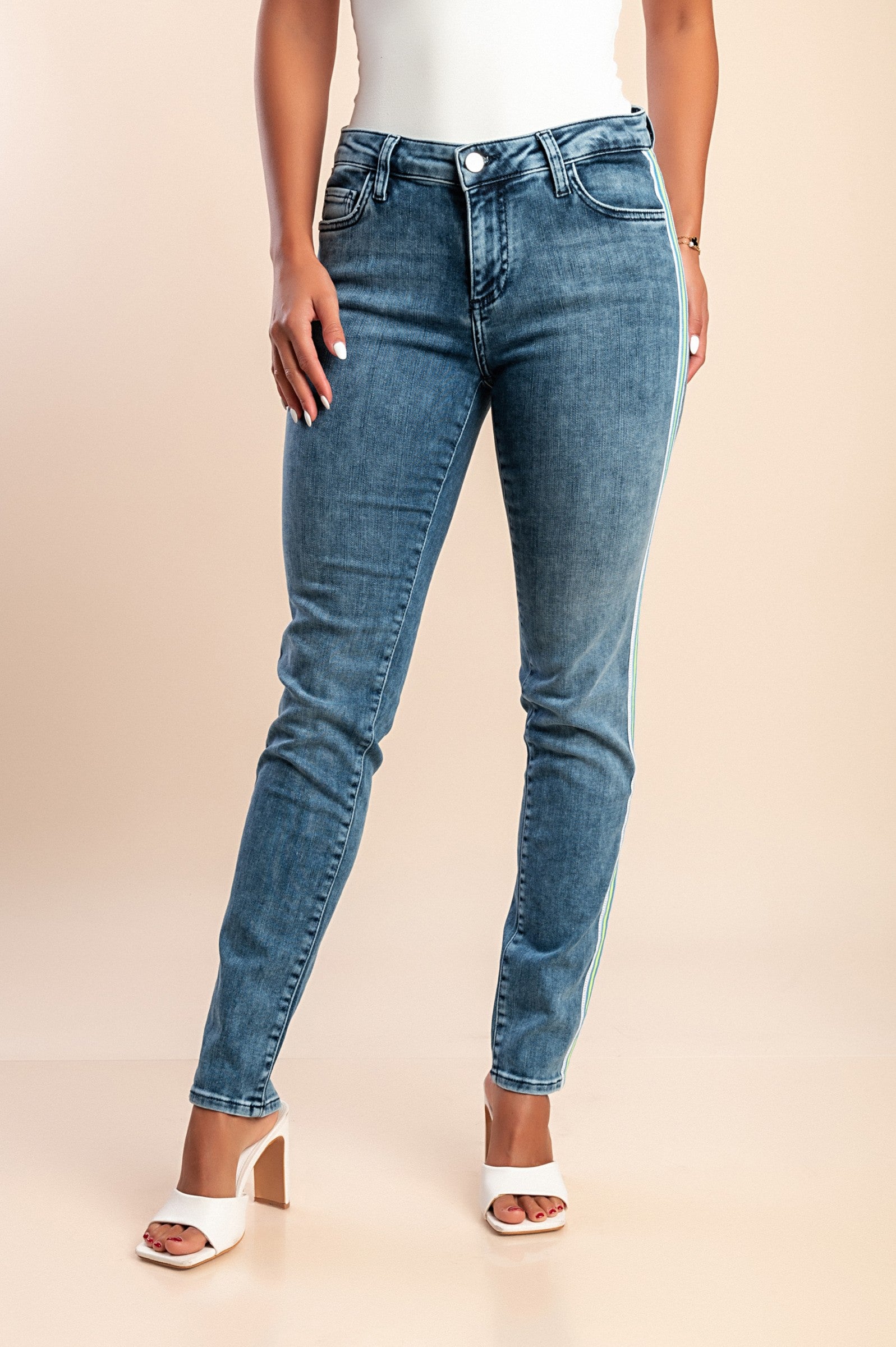 Jeans attillati a vita alta e spacchi Stefana, celeste