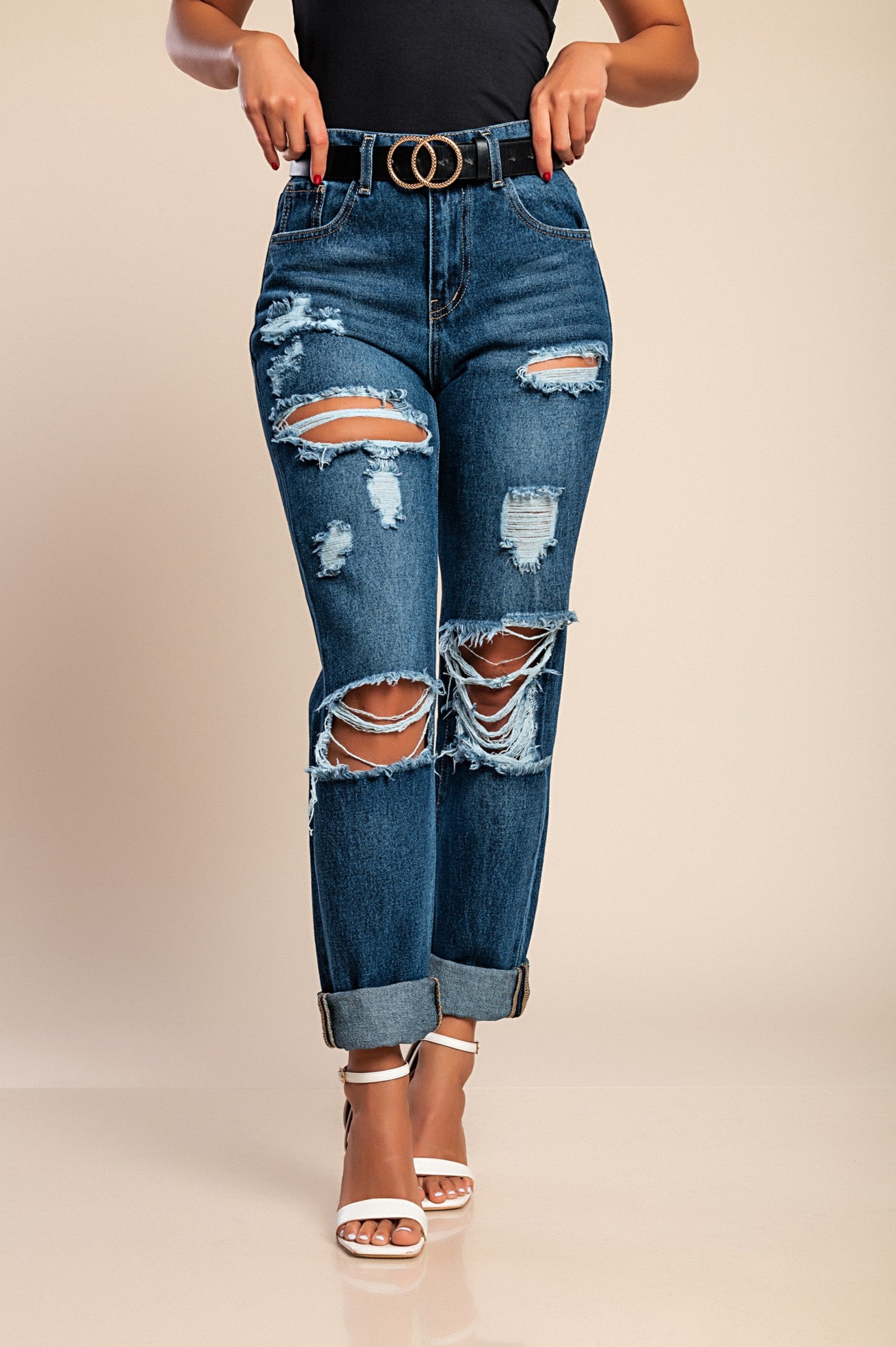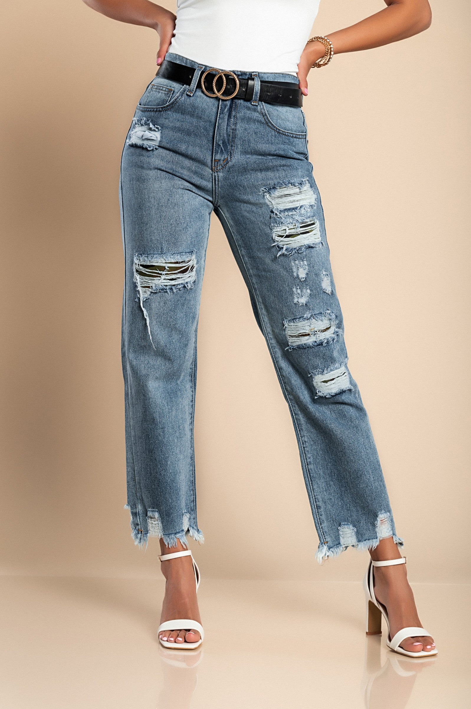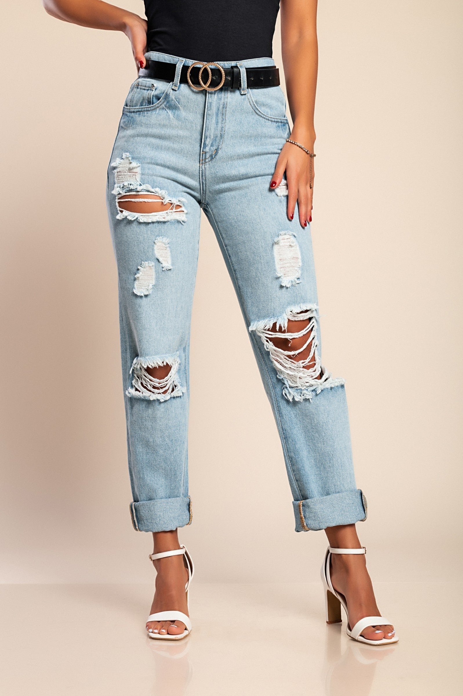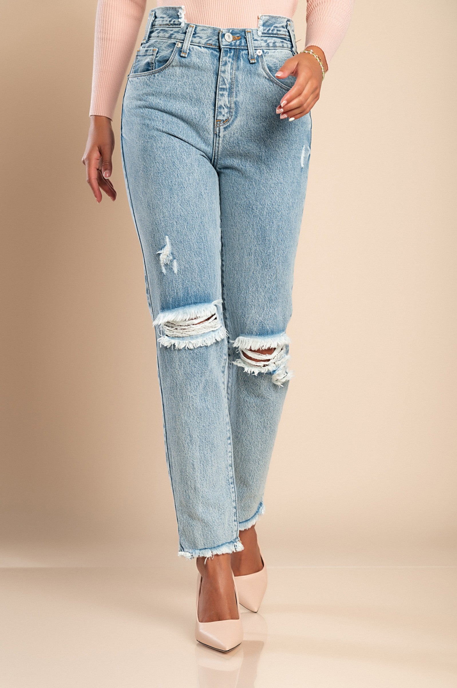 Jeans con dettagli strappati, colore azzurro