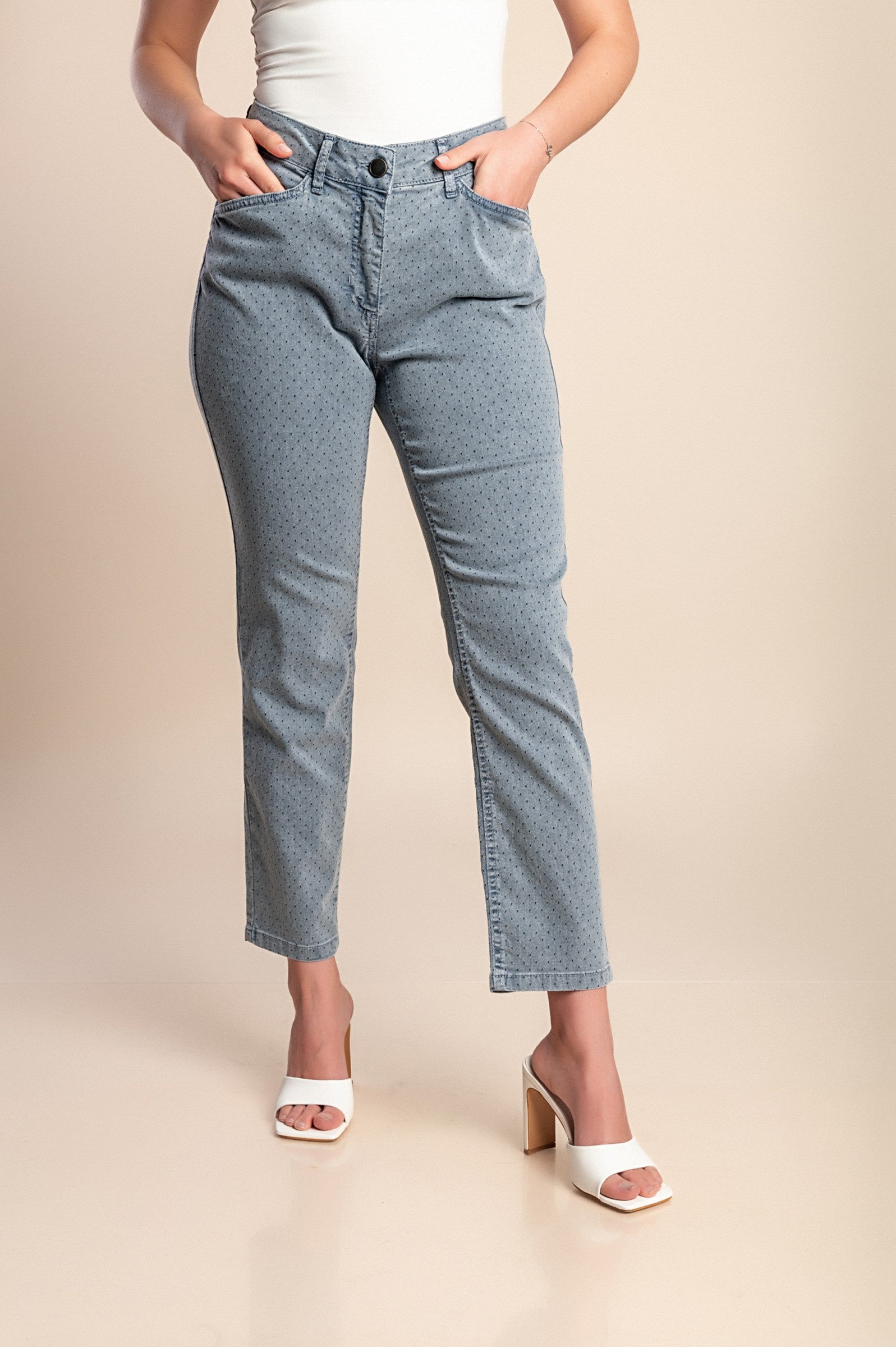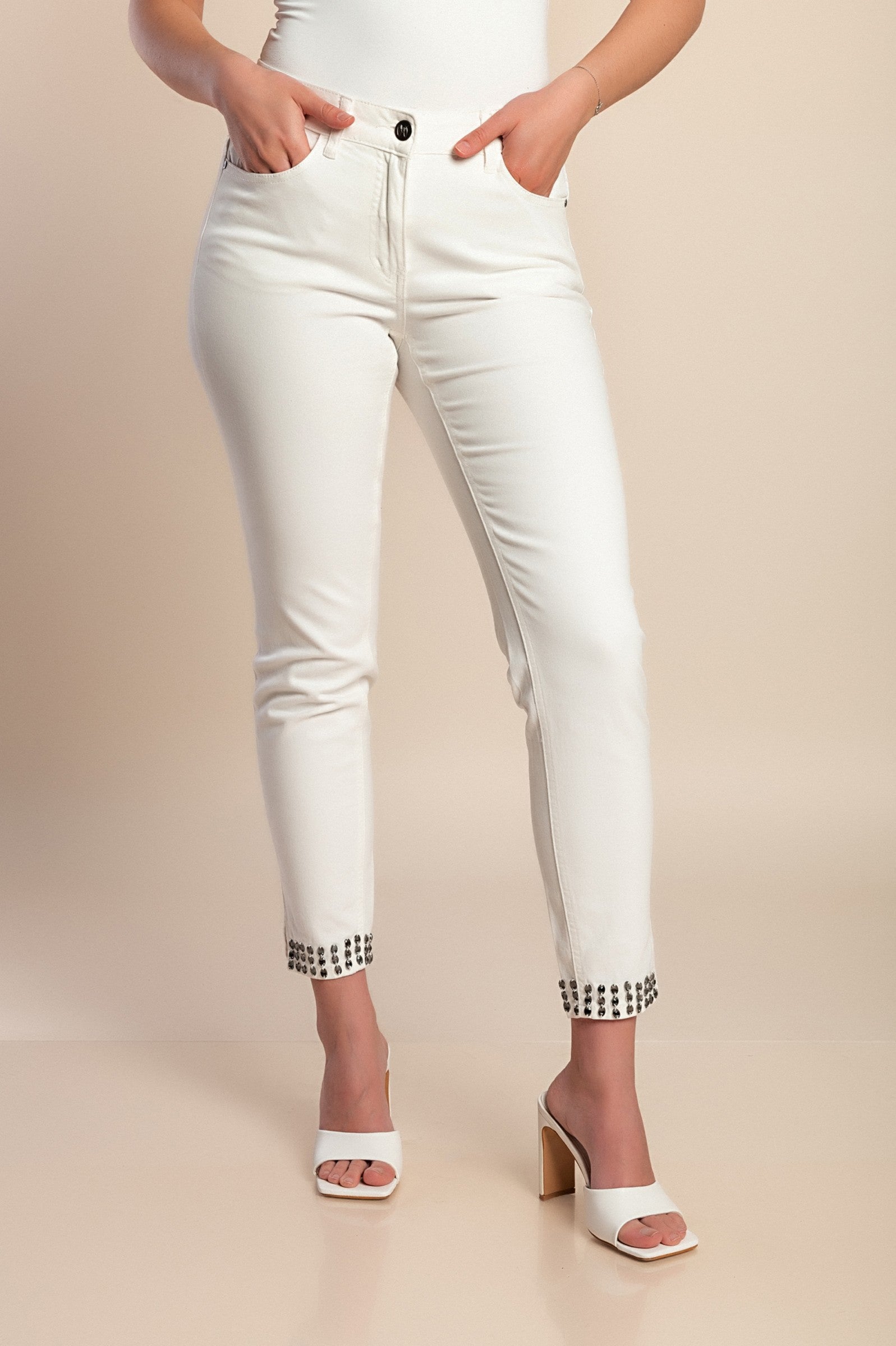 Jeans con rivetti decorativi, bianchi