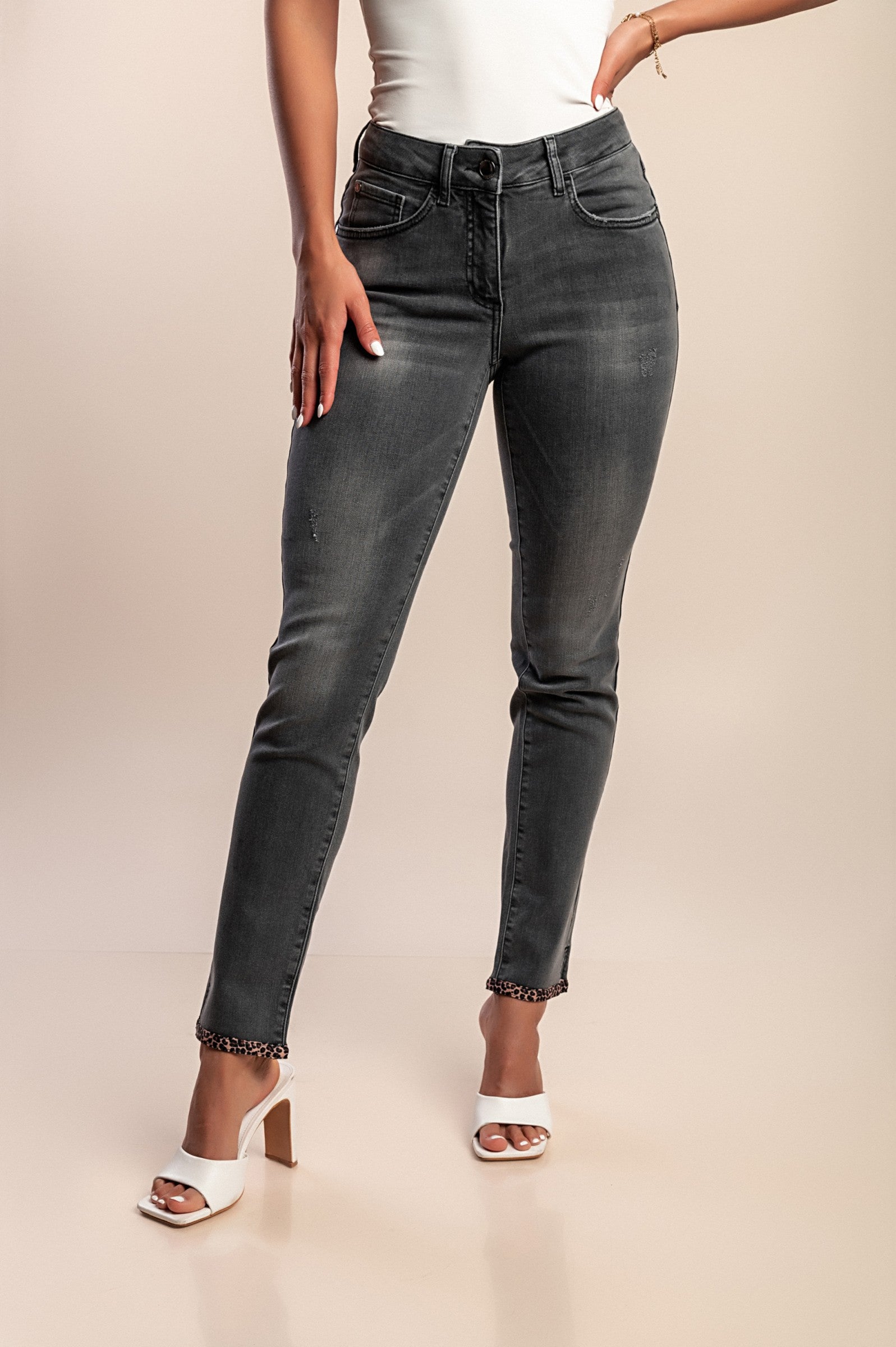 Jeans con stampa leopardata, grigio
