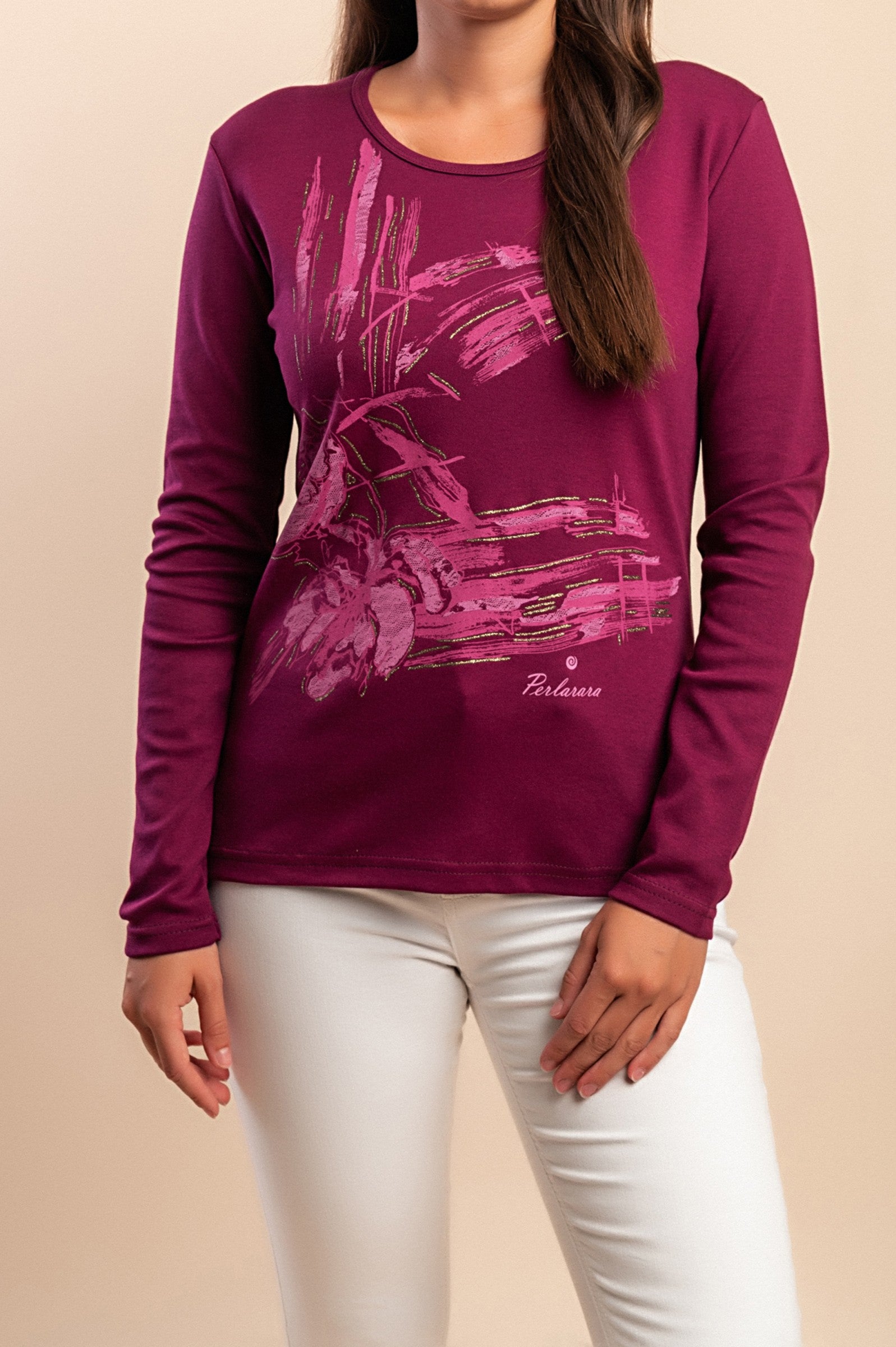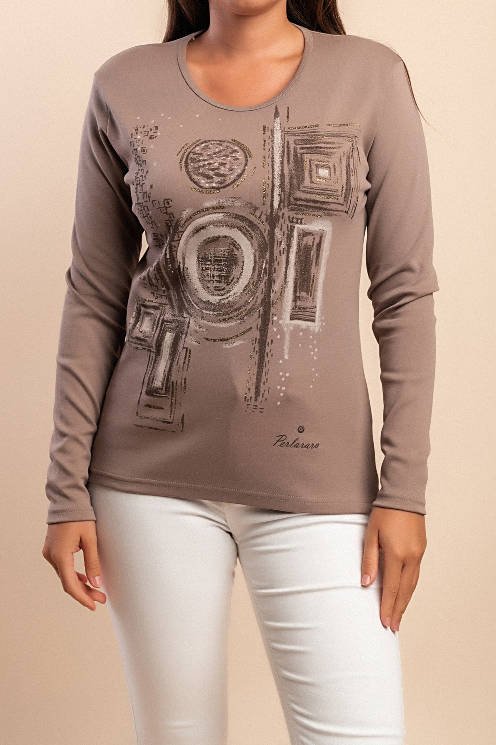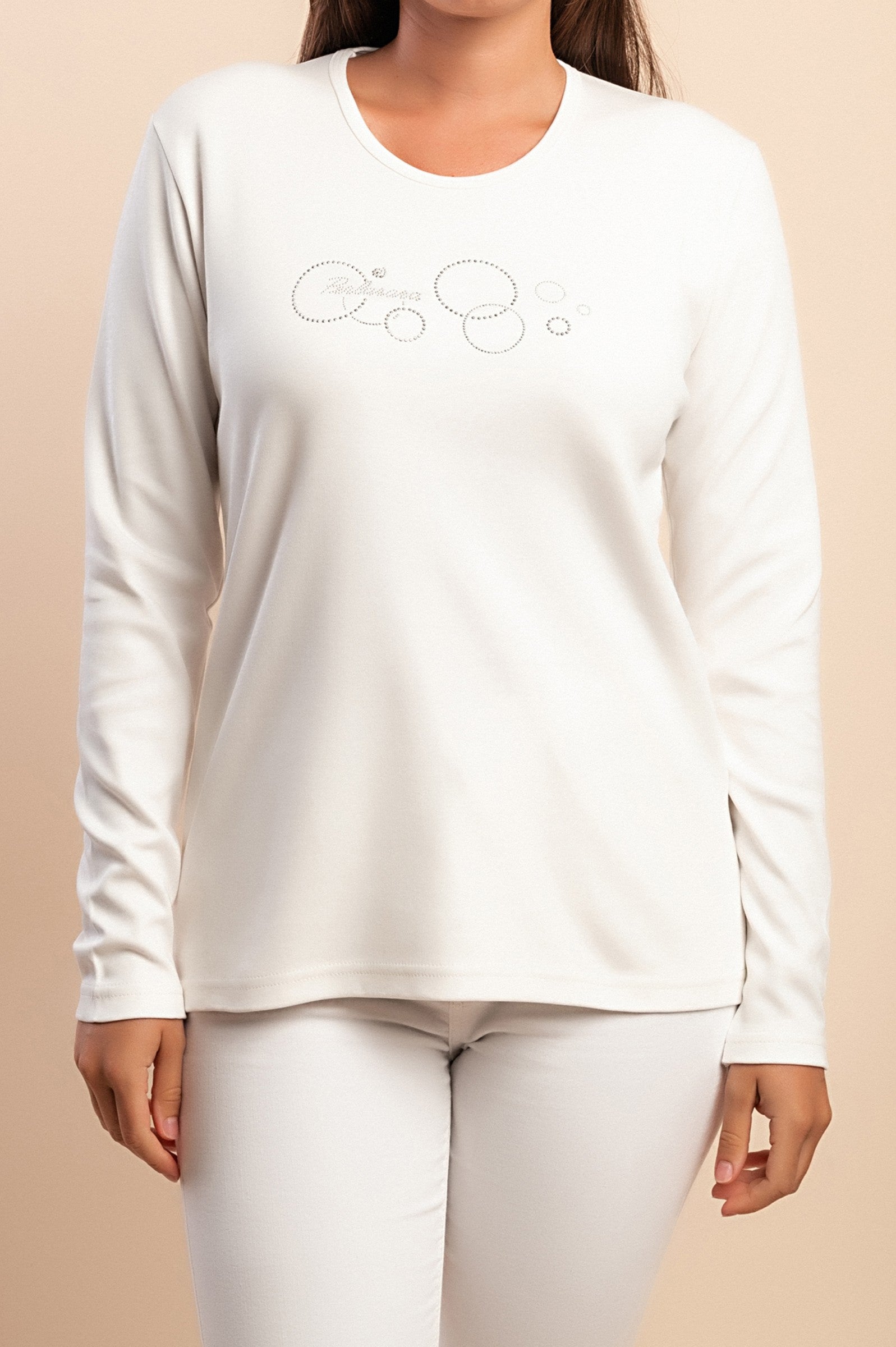 Maglietta lavorata a maglia con scollo rotondo, bianco