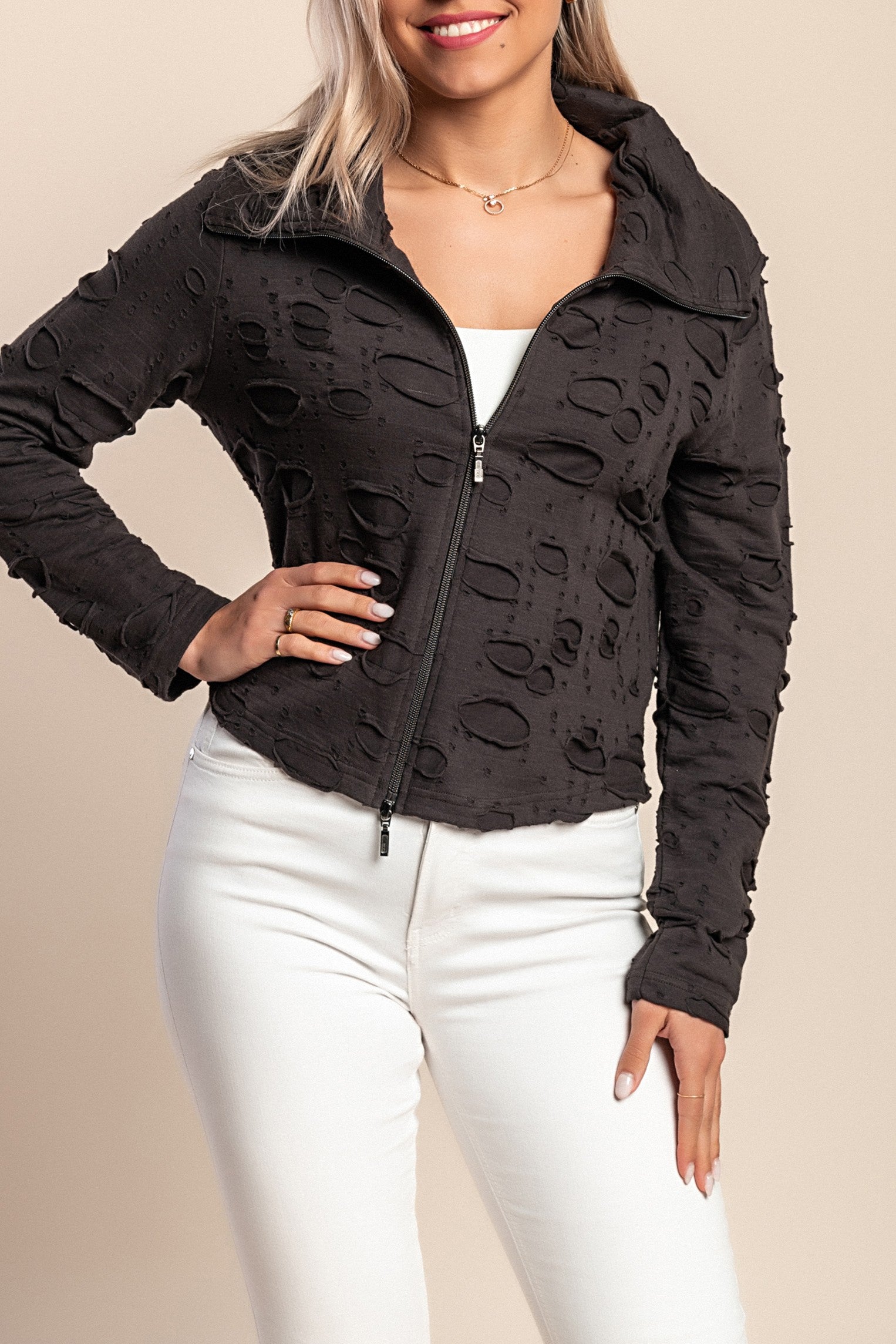 Top con cerniera, nero