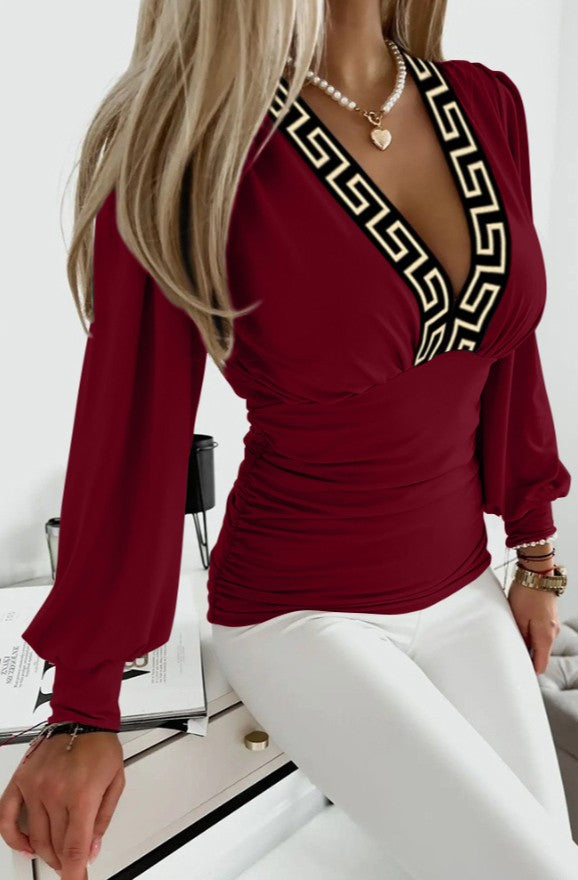 Top con maniche a 3/4, taglie forti, bordeaux