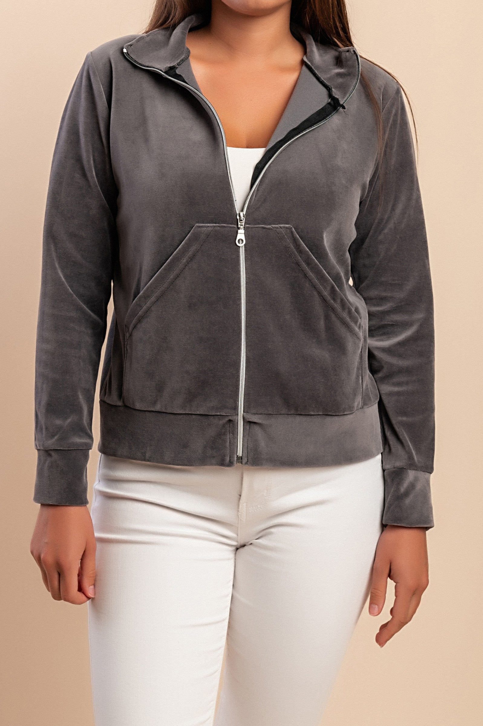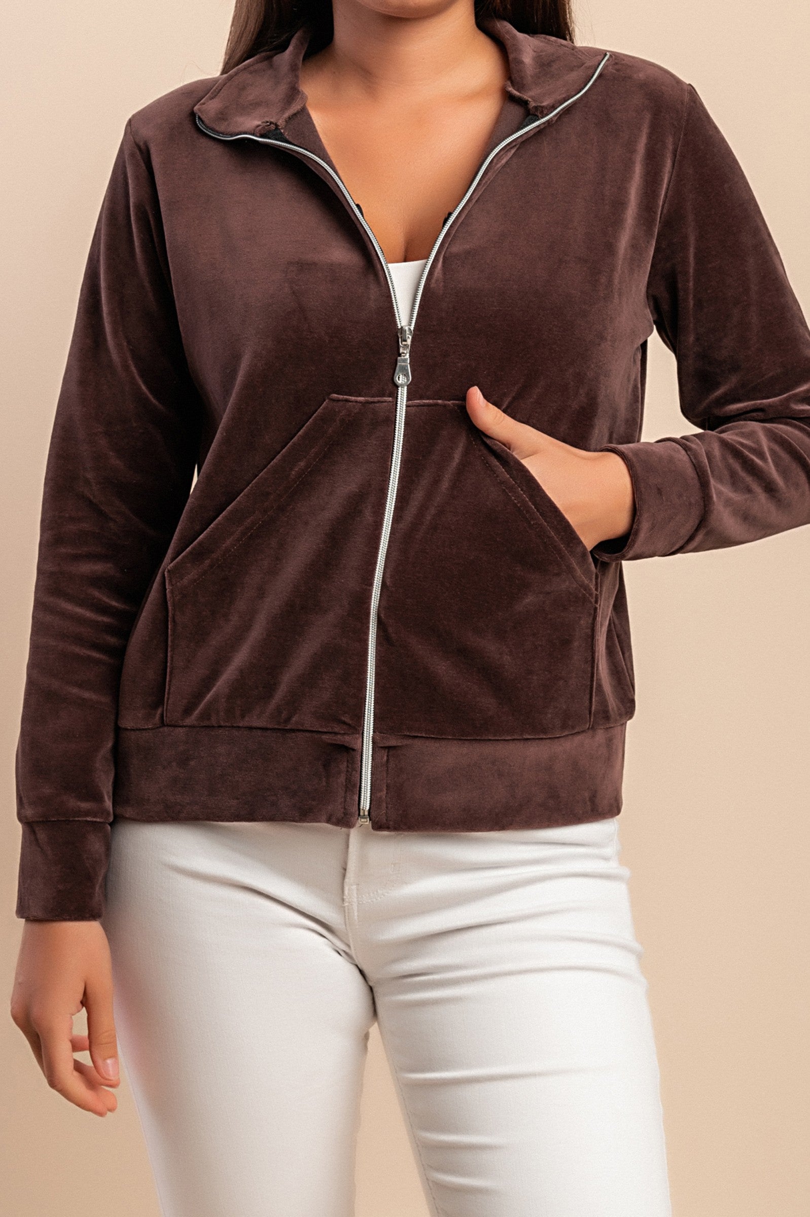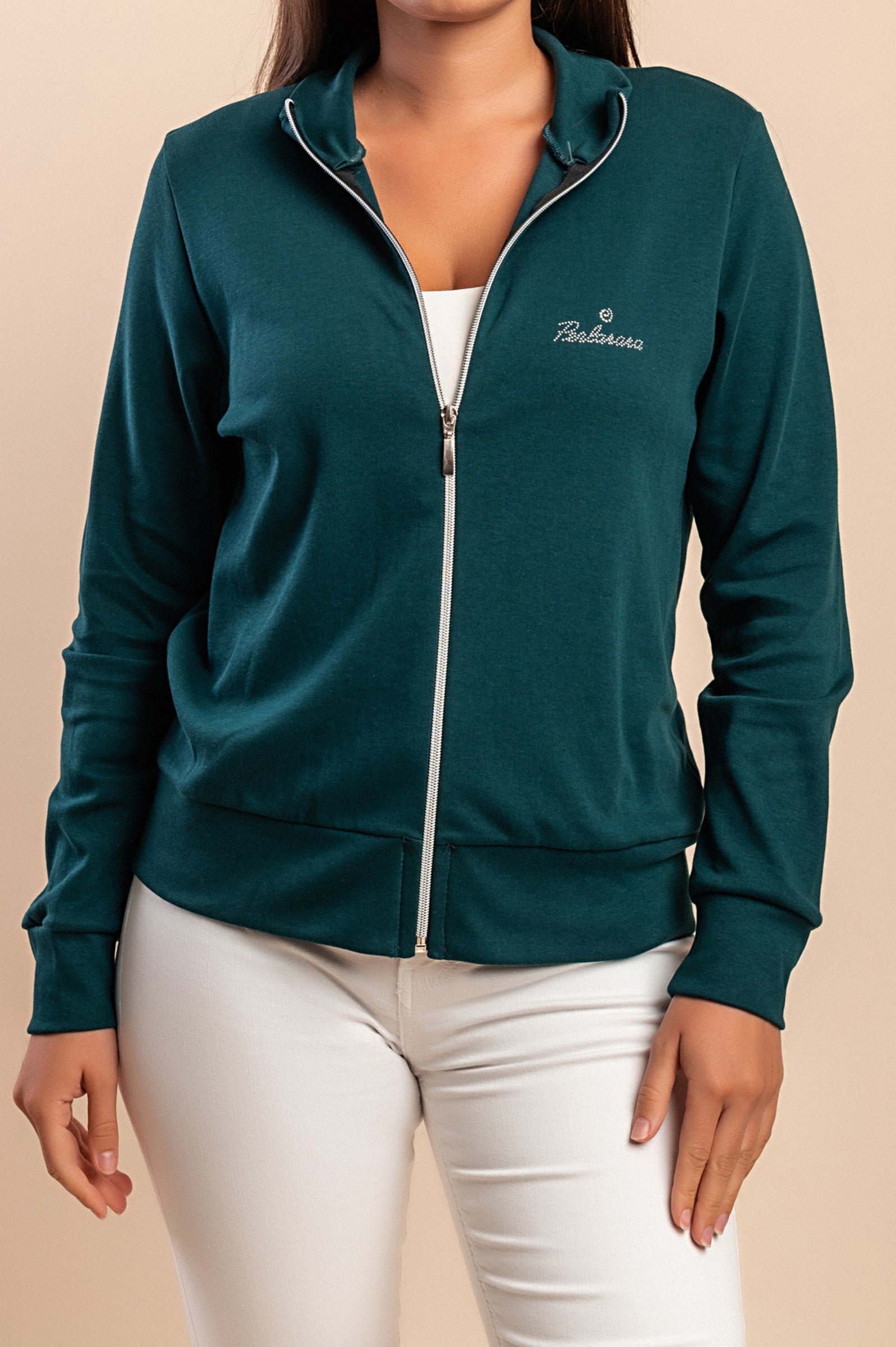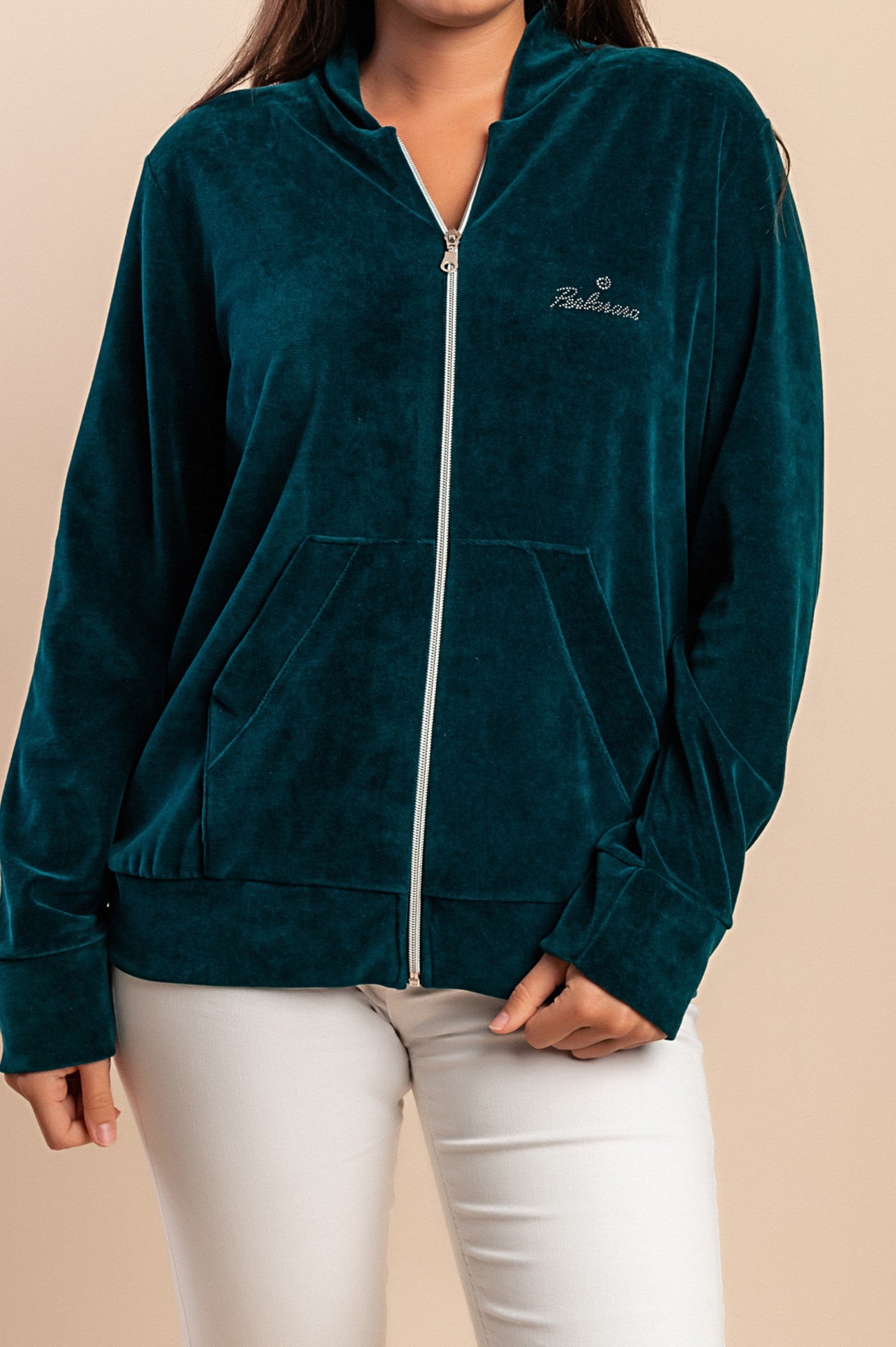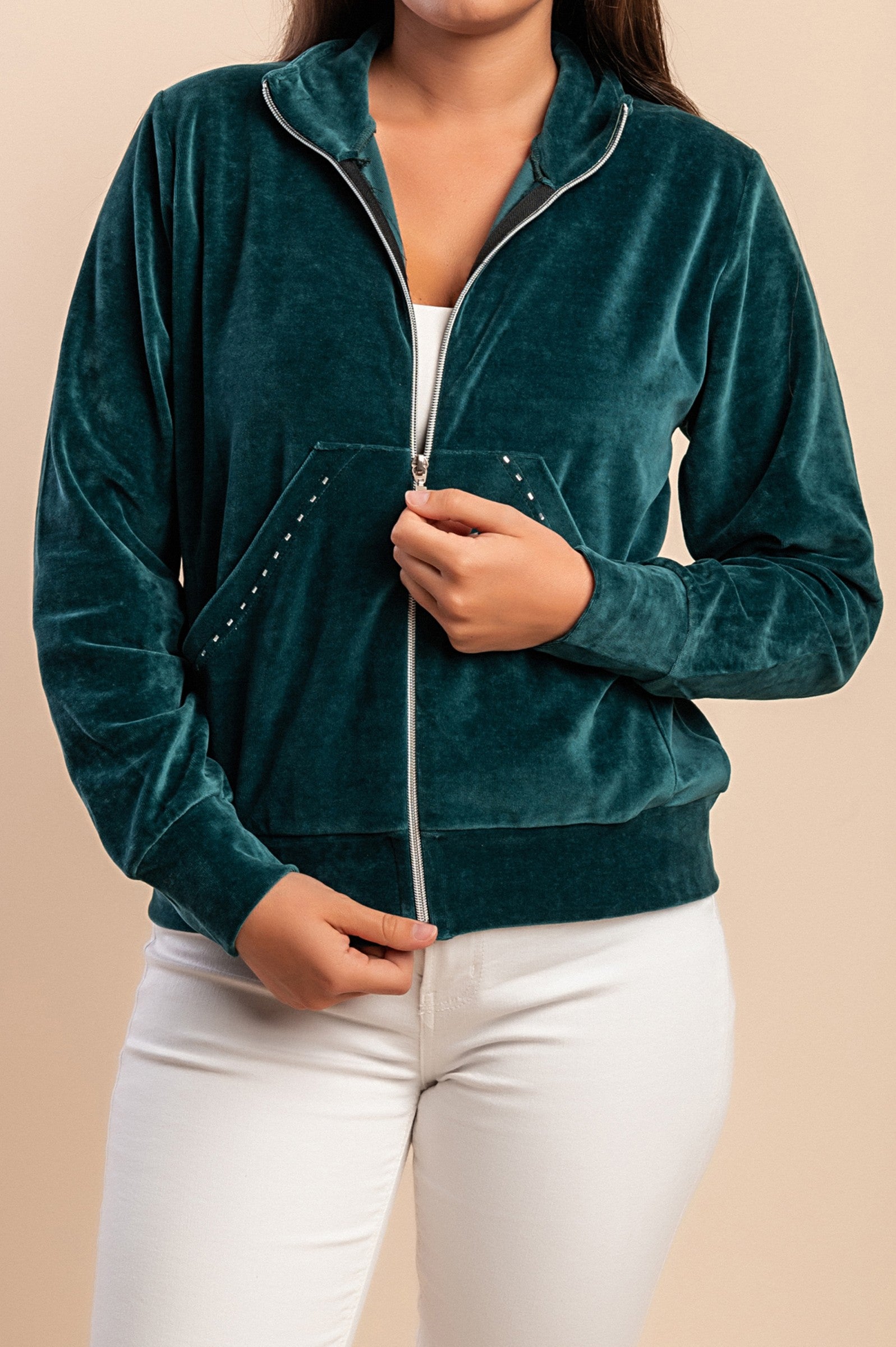 Felpa con zip in cotone e velluto sintetico, verde oliva
