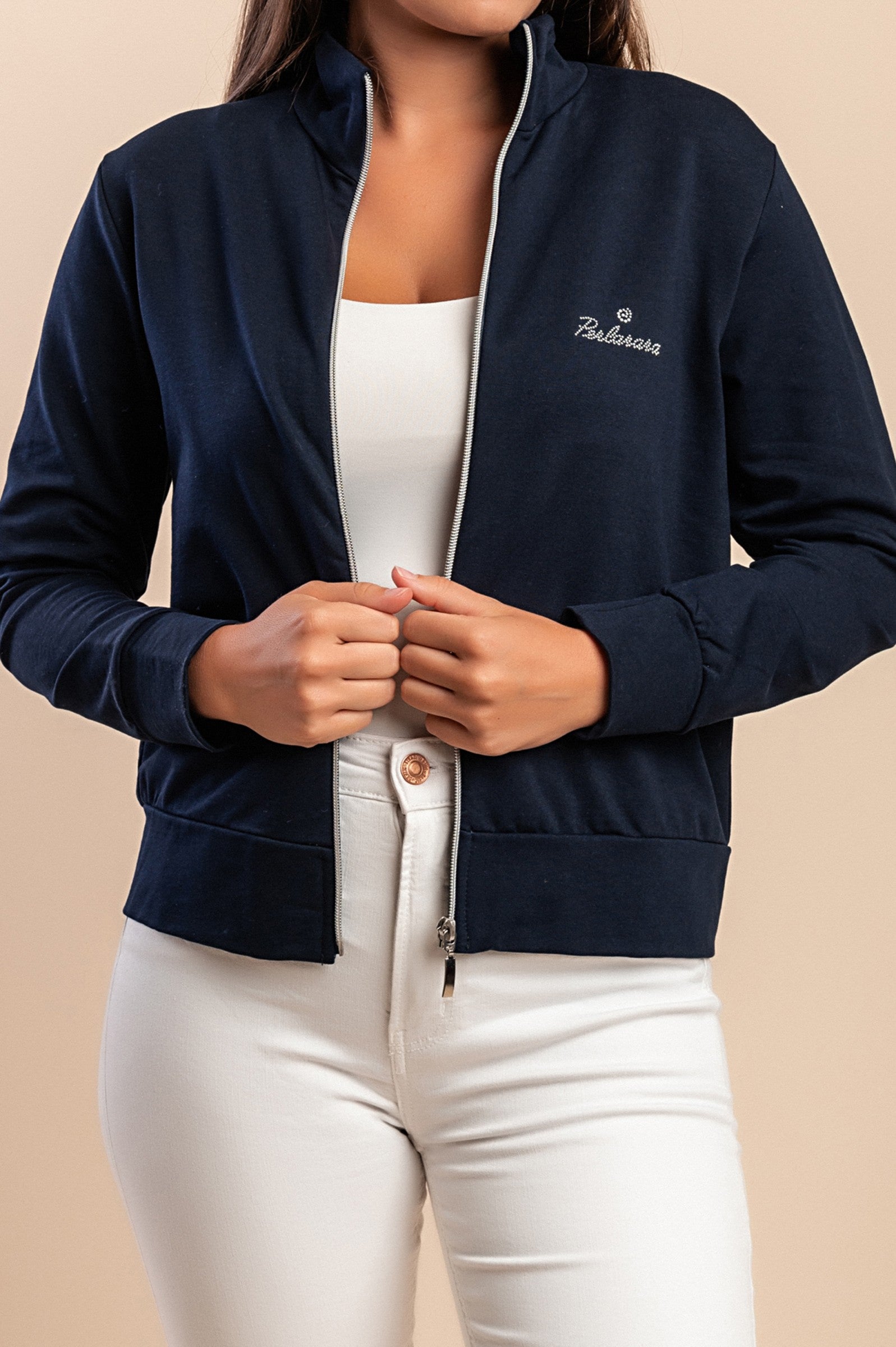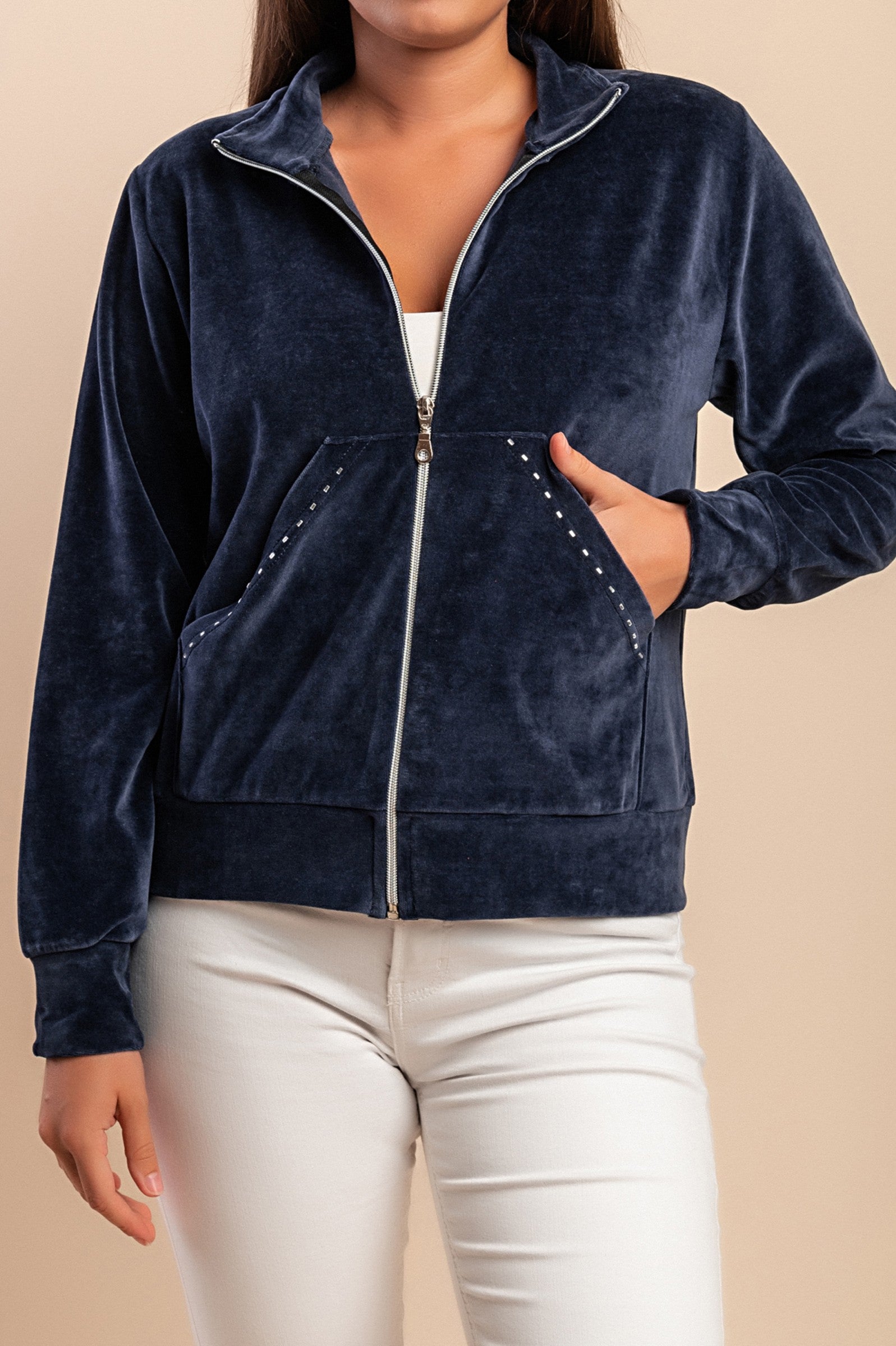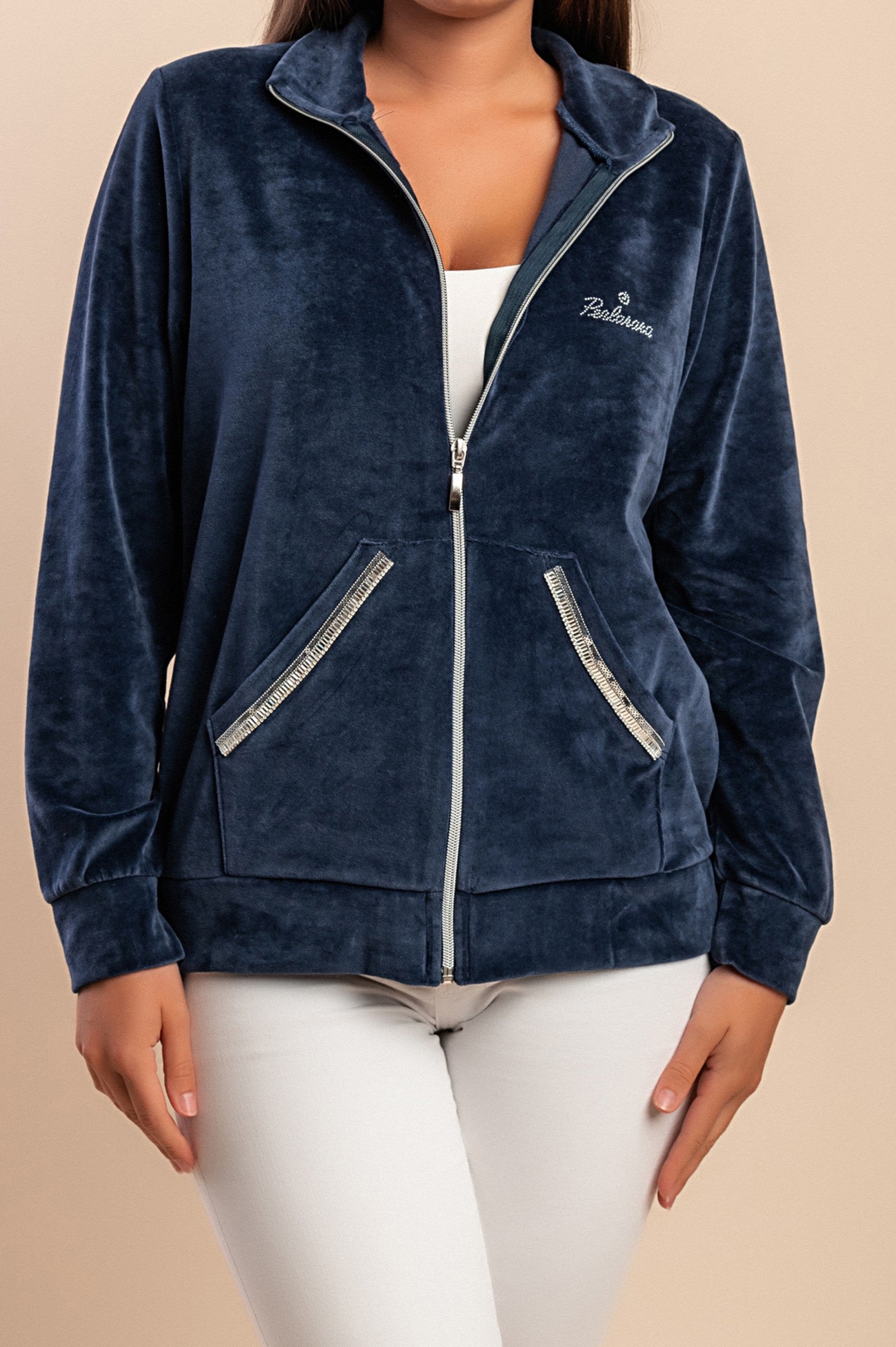 Felpa con zip in cotone e velluto sintetico, blu scuro