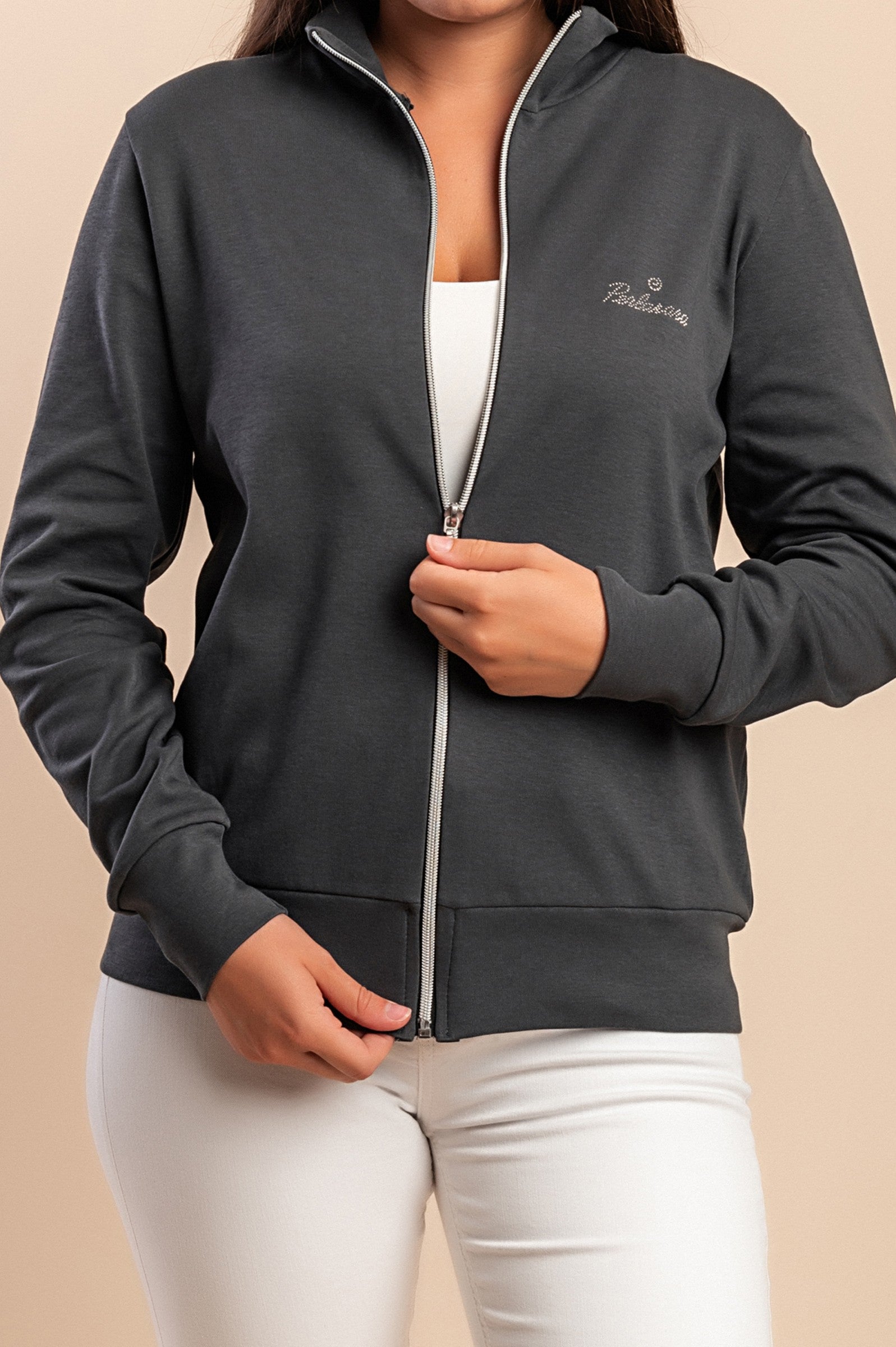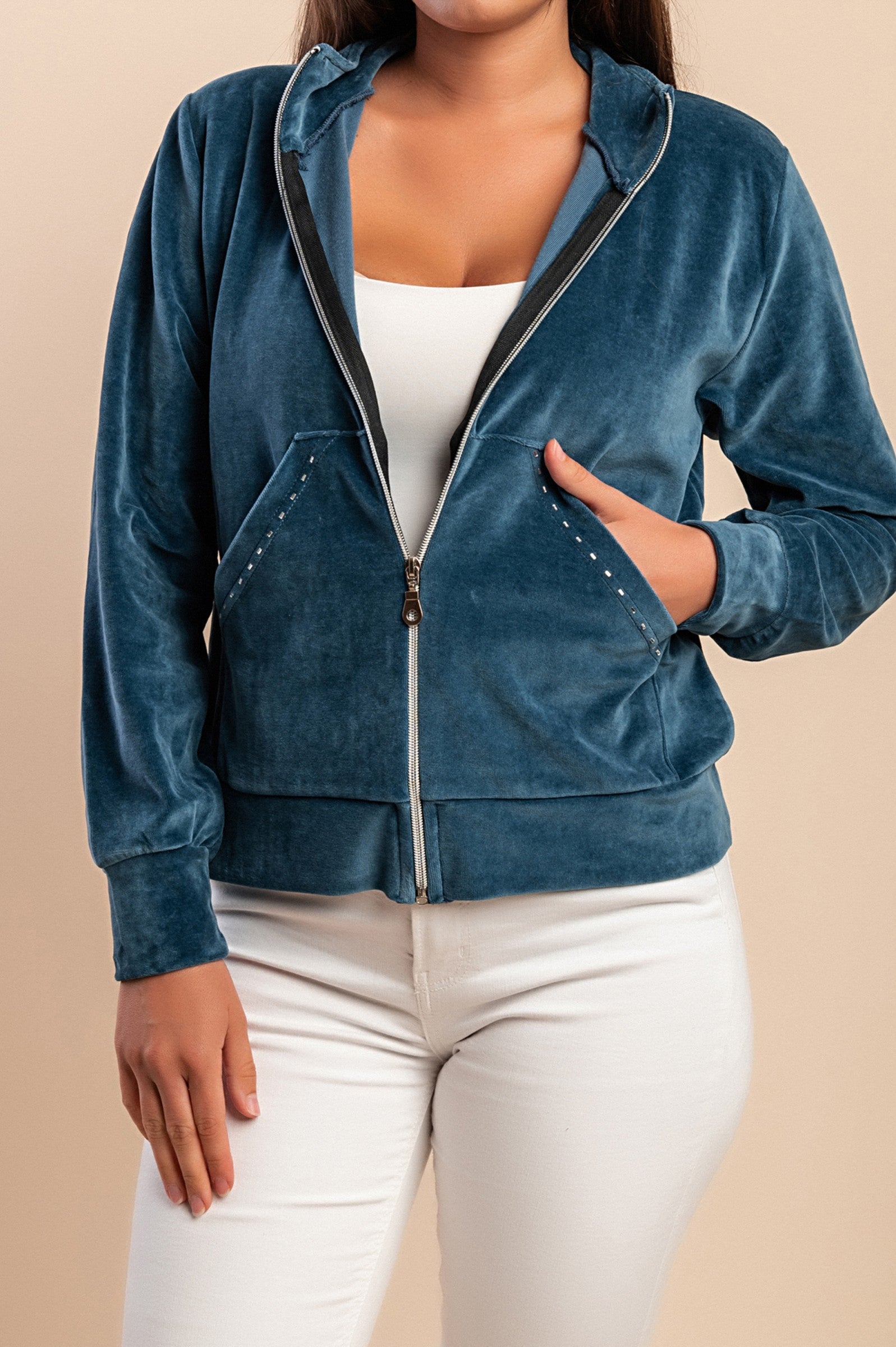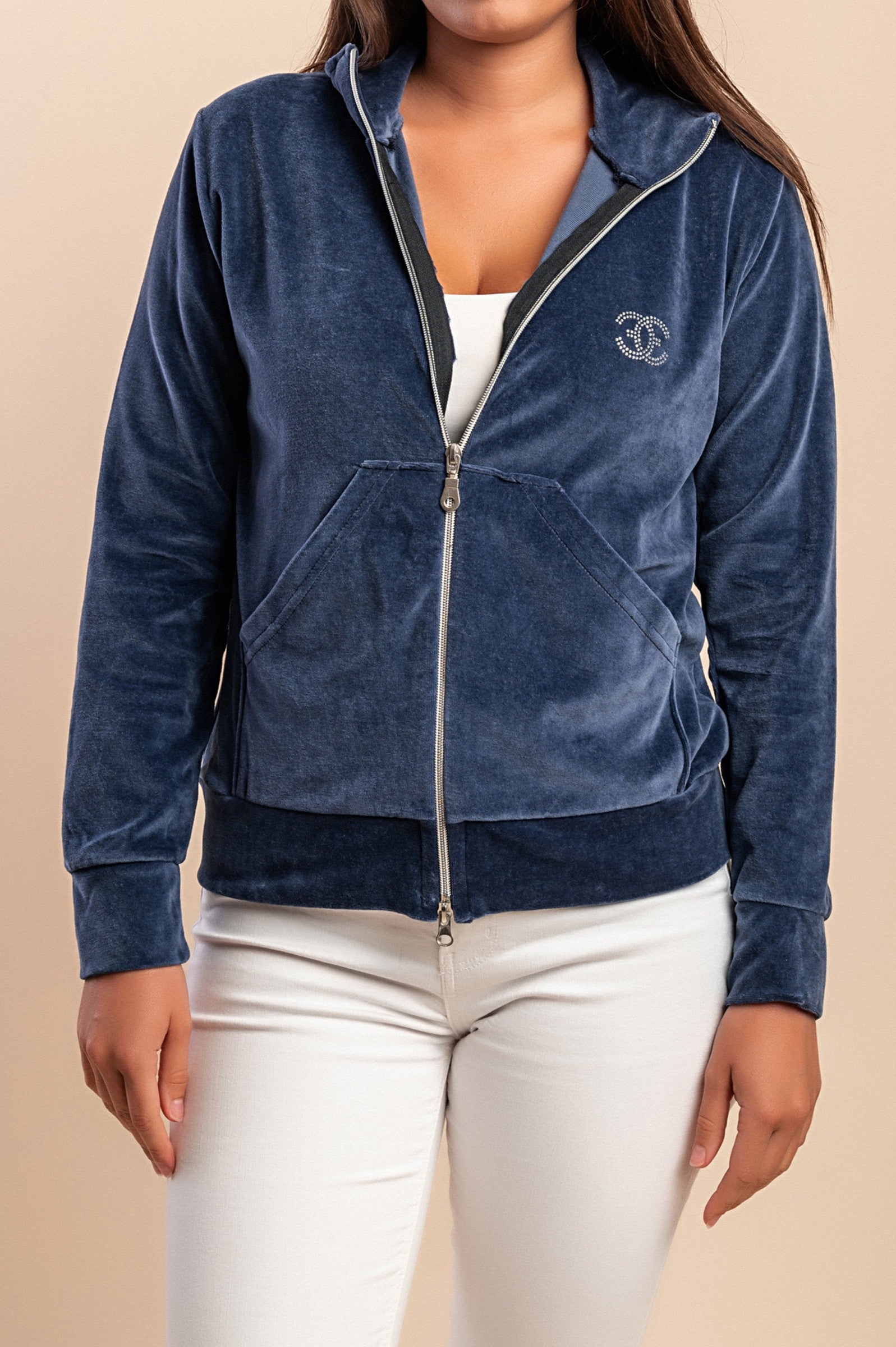 Felpa con zip in cotone e velluto sintetico, blu scuro