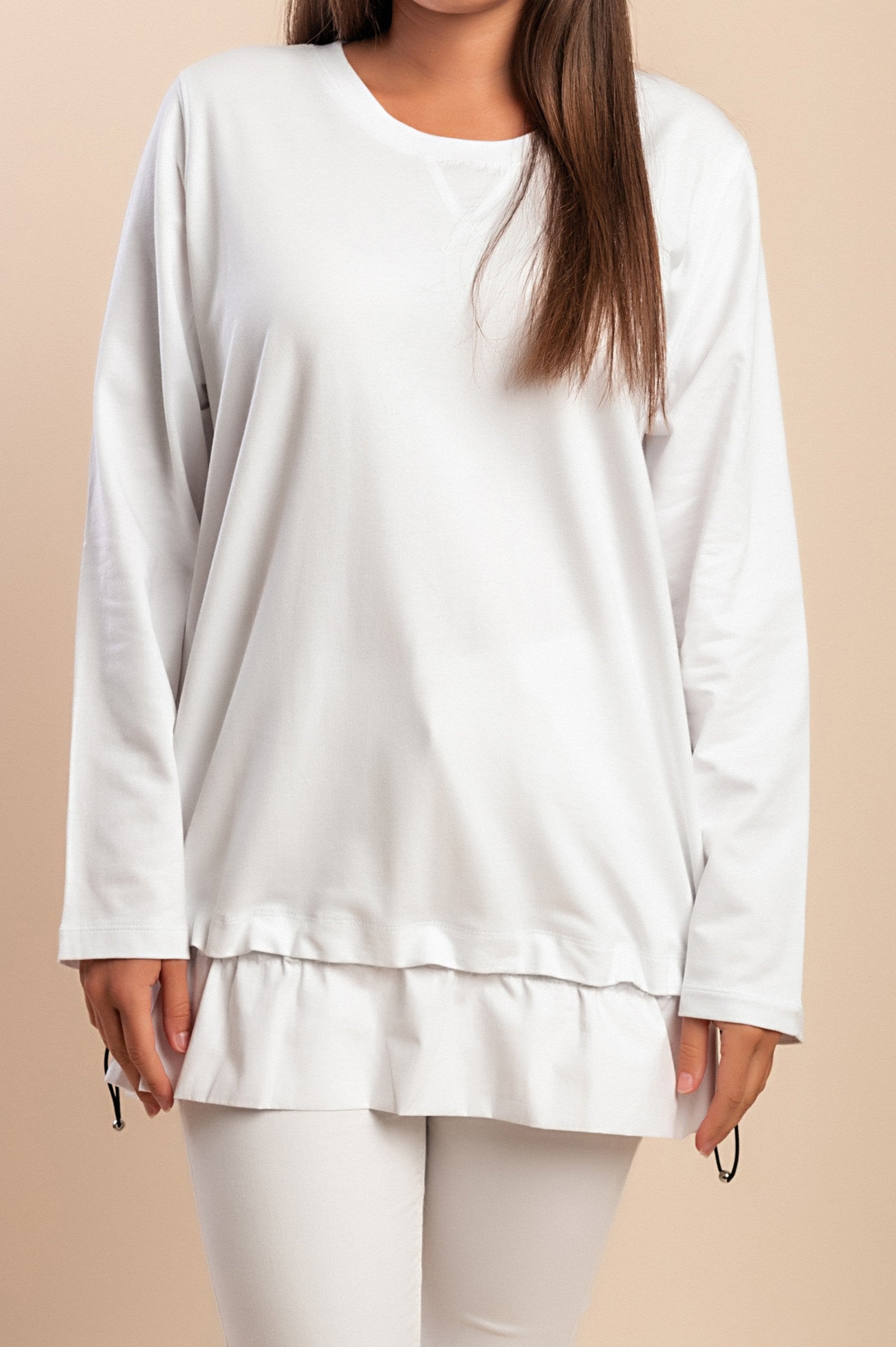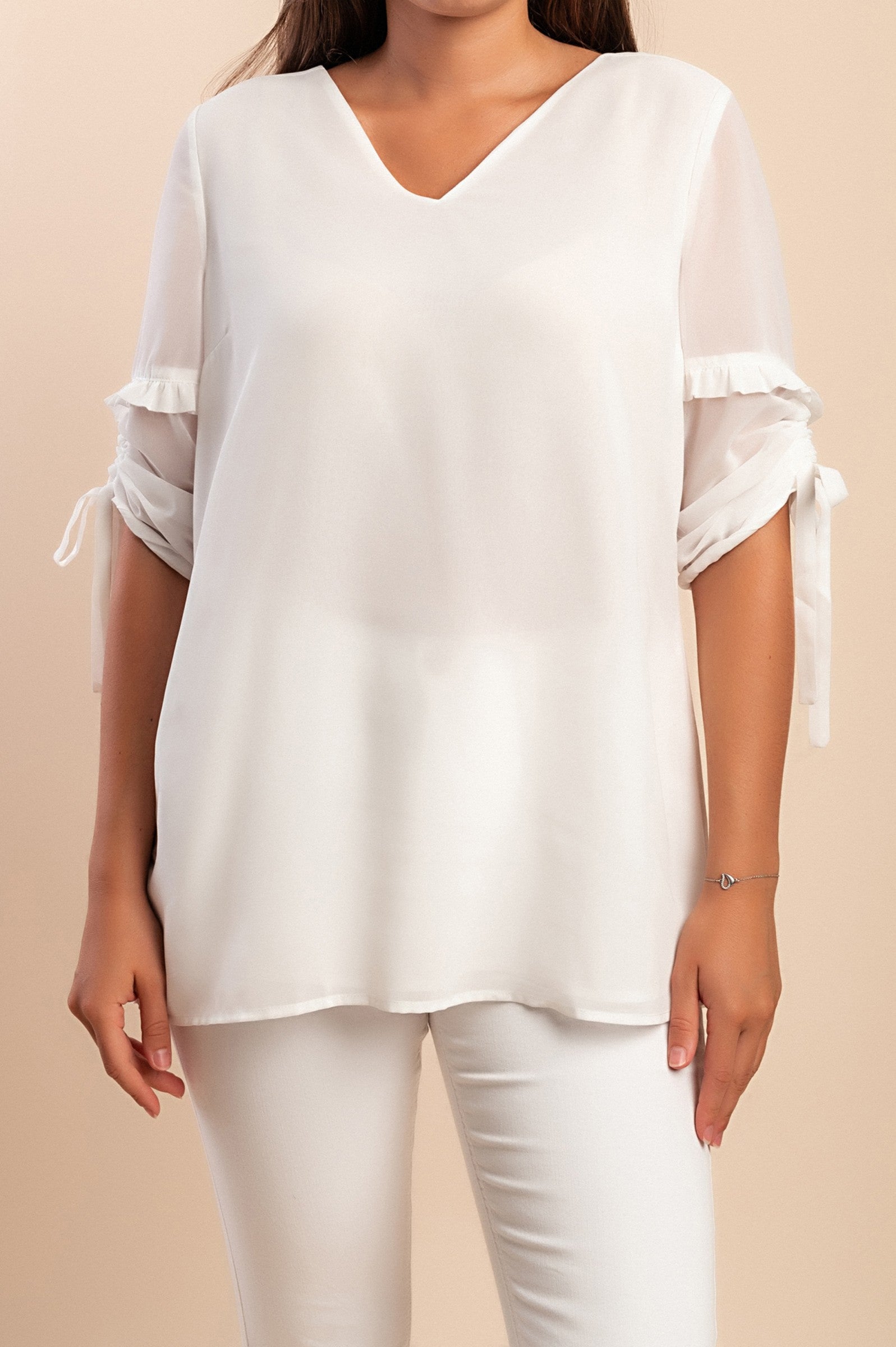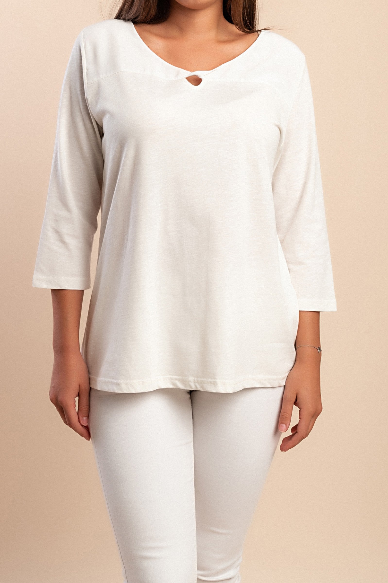 Top in cotone taglie forti con maniche a 3/4, bianco