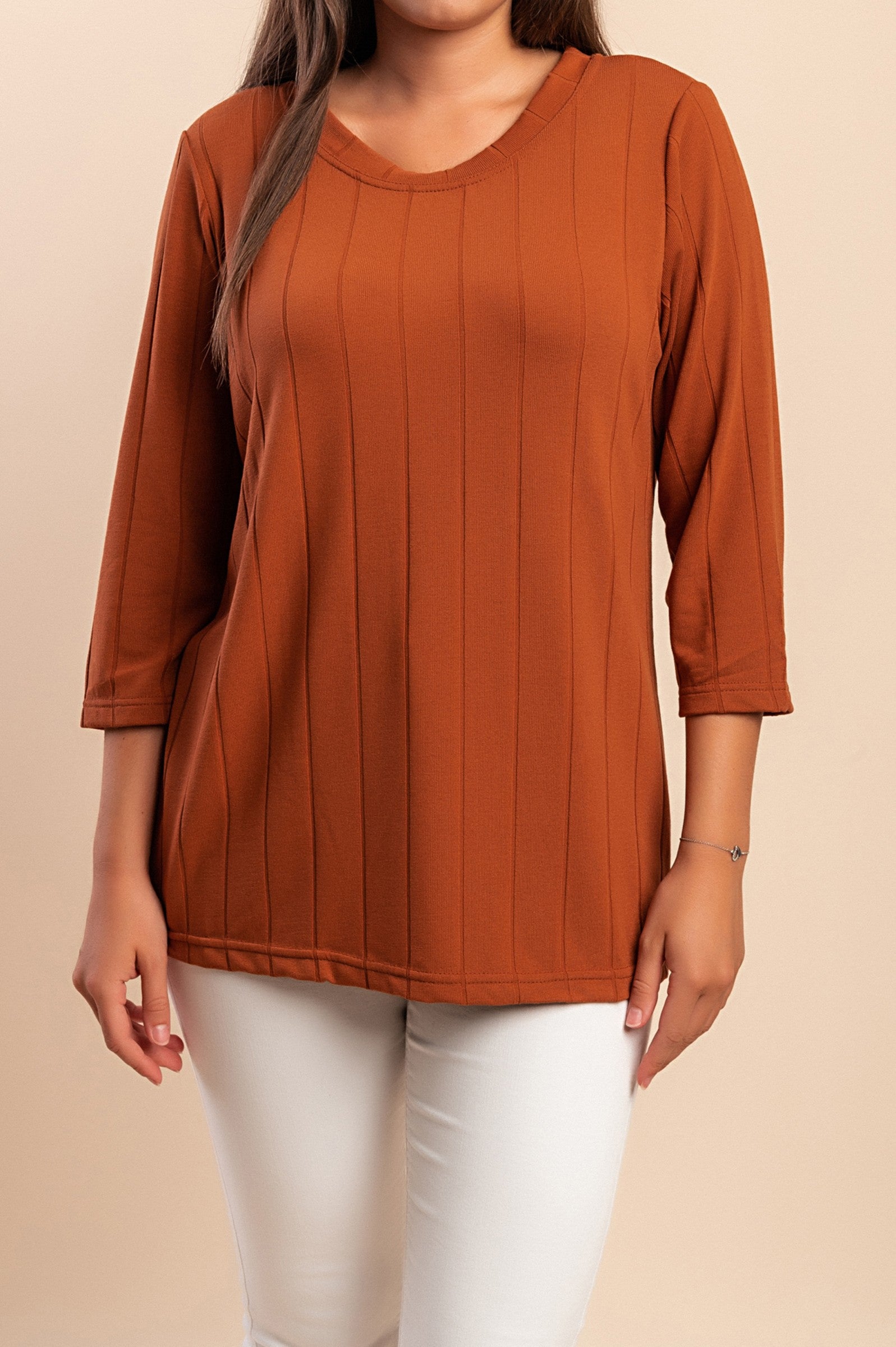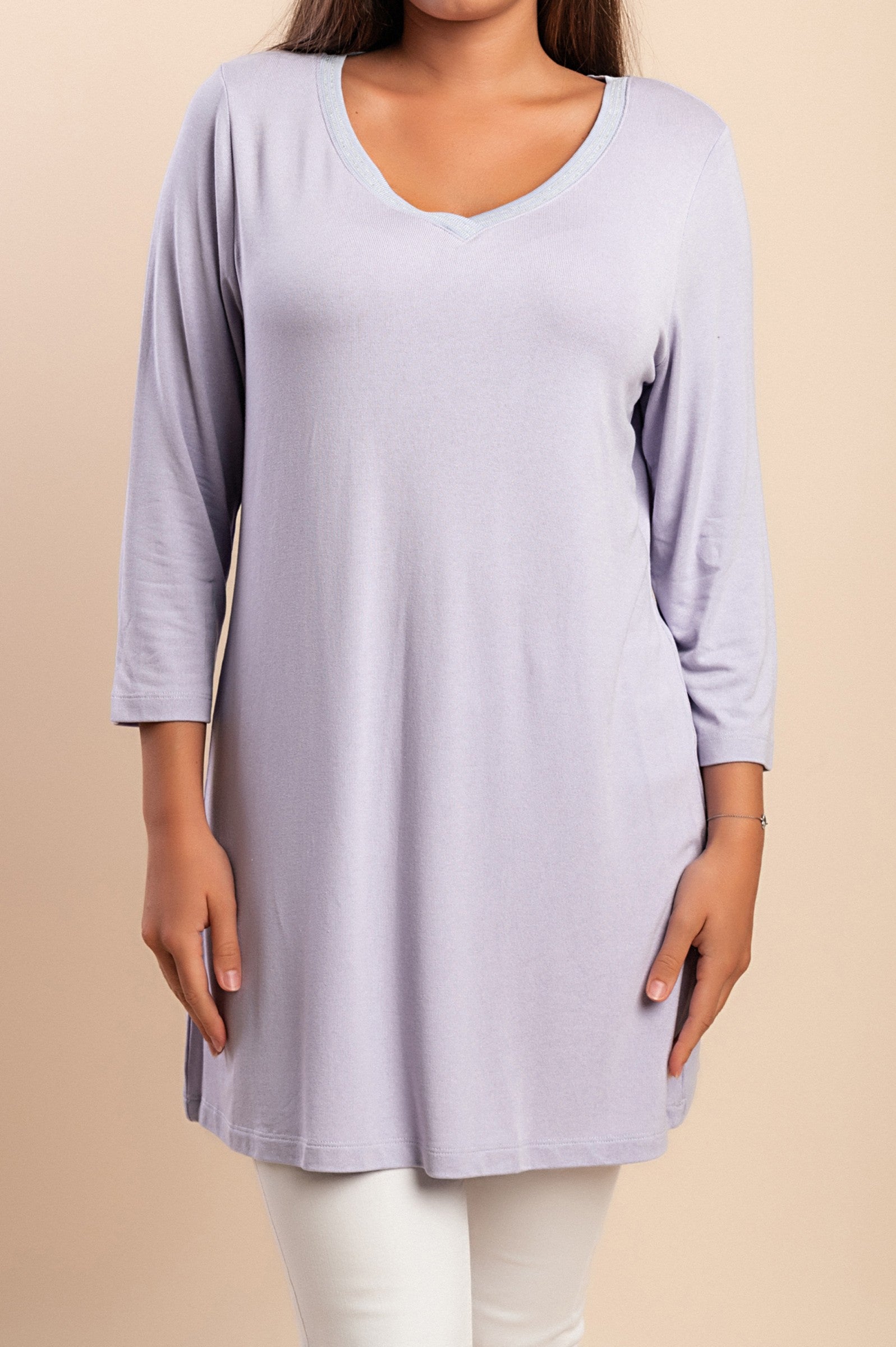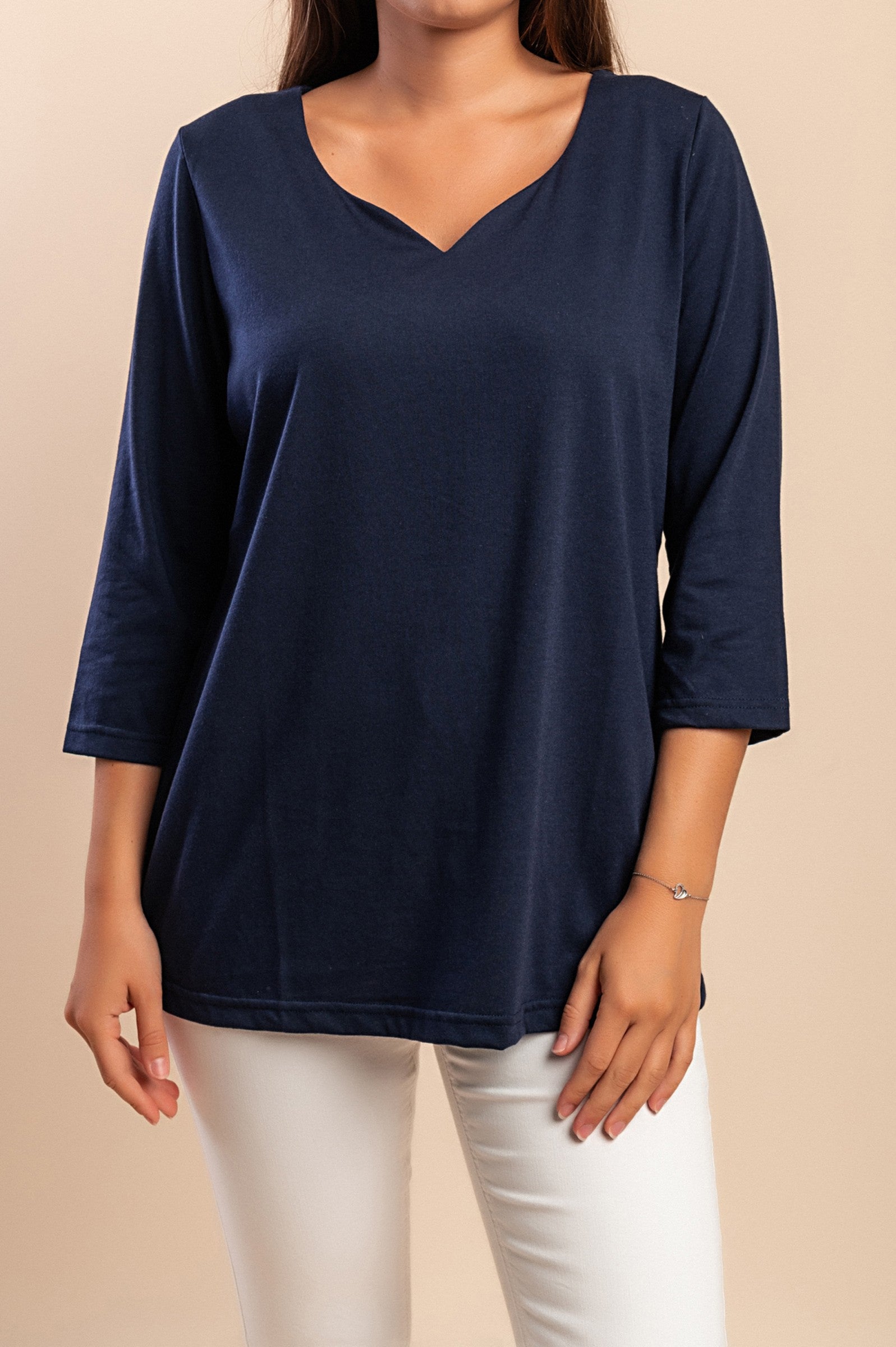 Top in cotone taglie forti con maniche a 3/4, bianco
