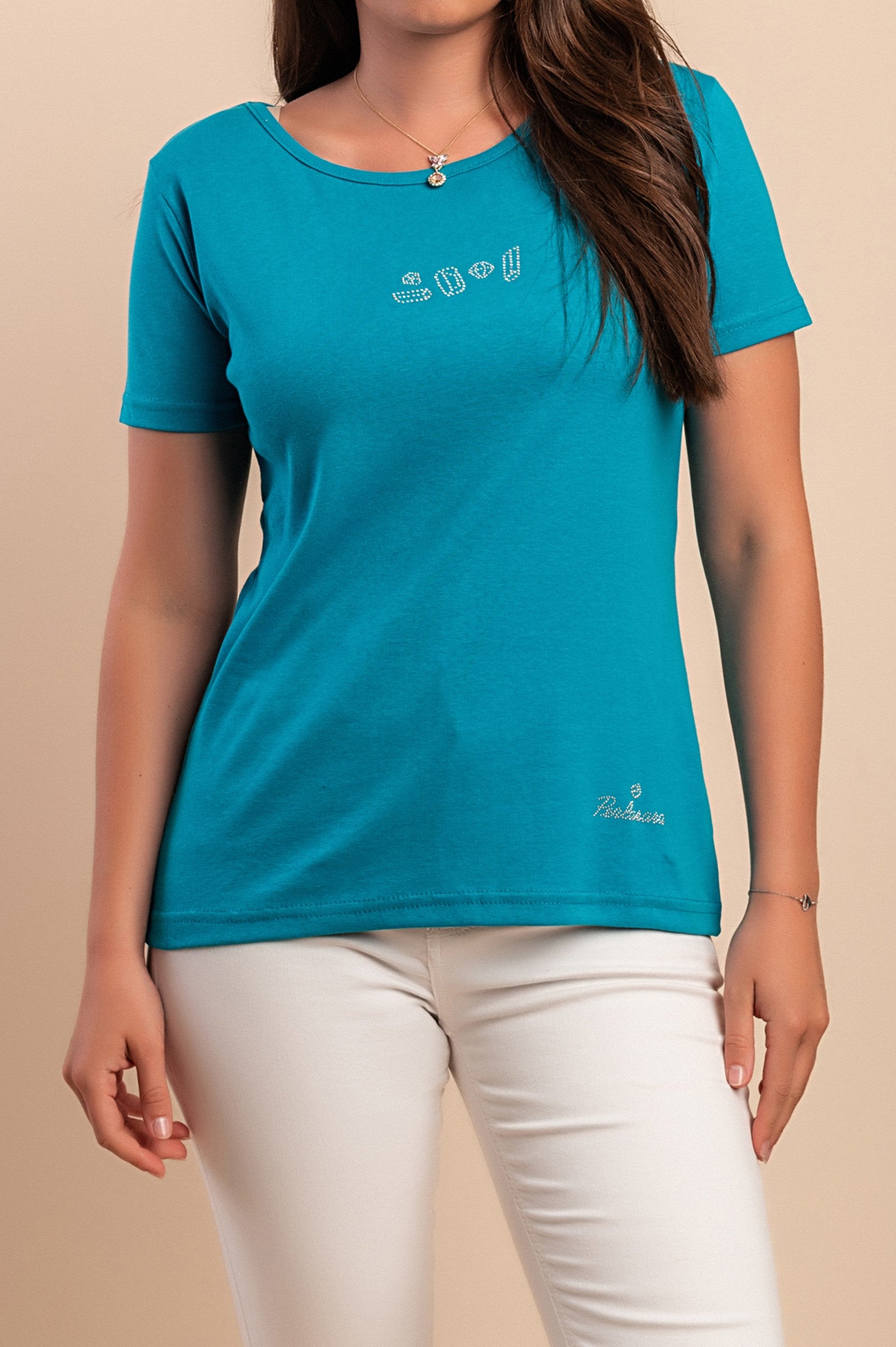 T-shirt in cotone con scollo rotondo, turchese