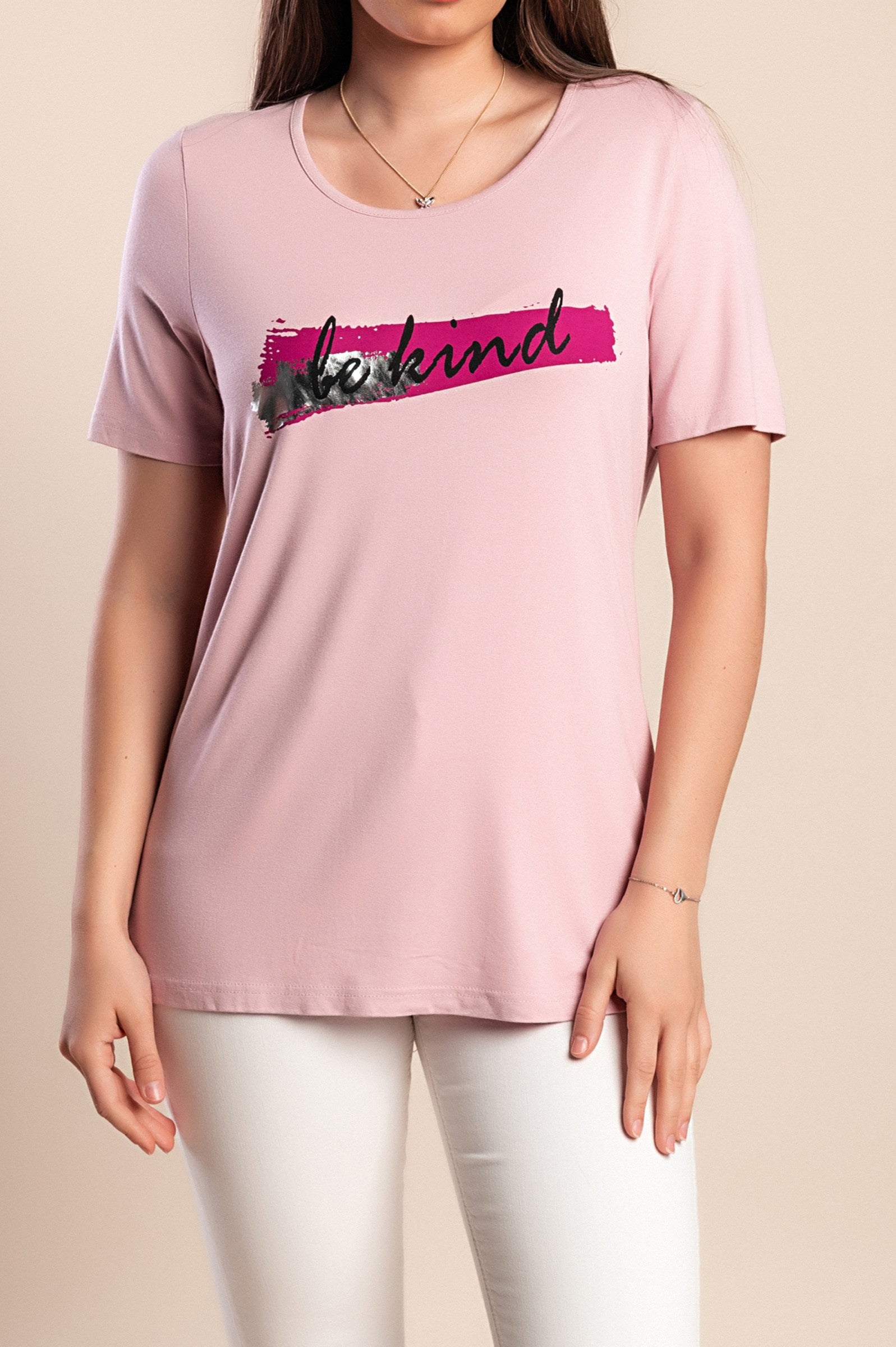 Maglietta stampata taglie forti, rosa