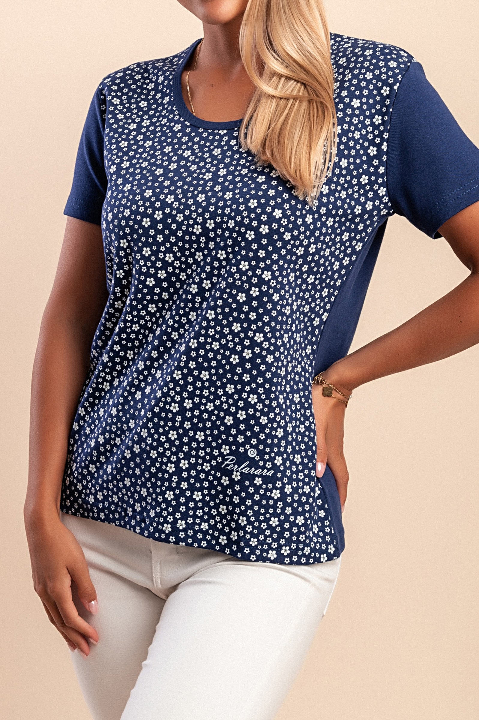 T-shirt in cotone con dettaglio decorativo, blu scuro