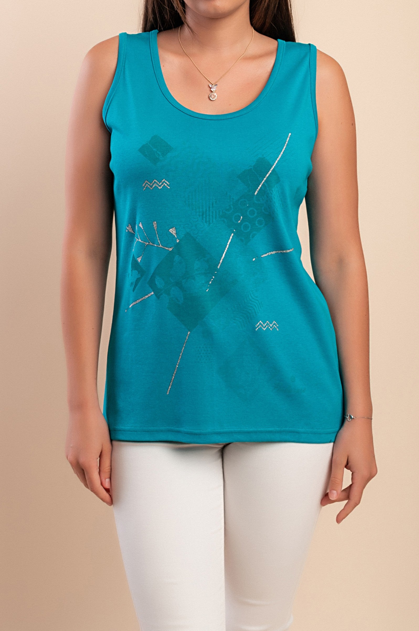 Top senza maniche in cotone, turchese