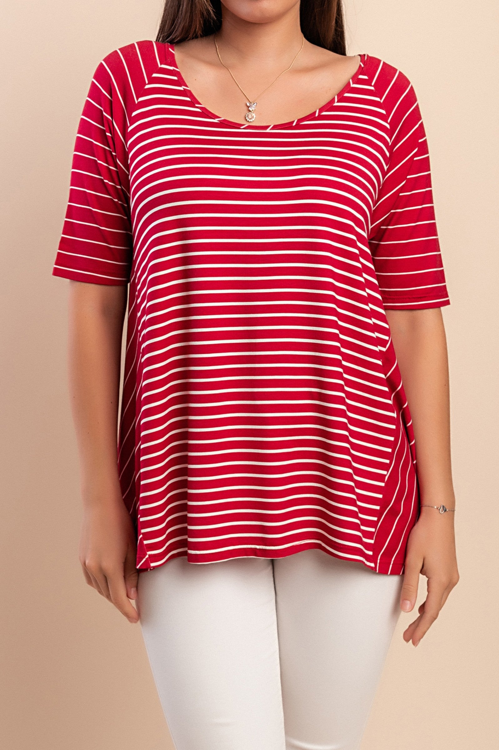 T-shirt con stampa a righe, rossa