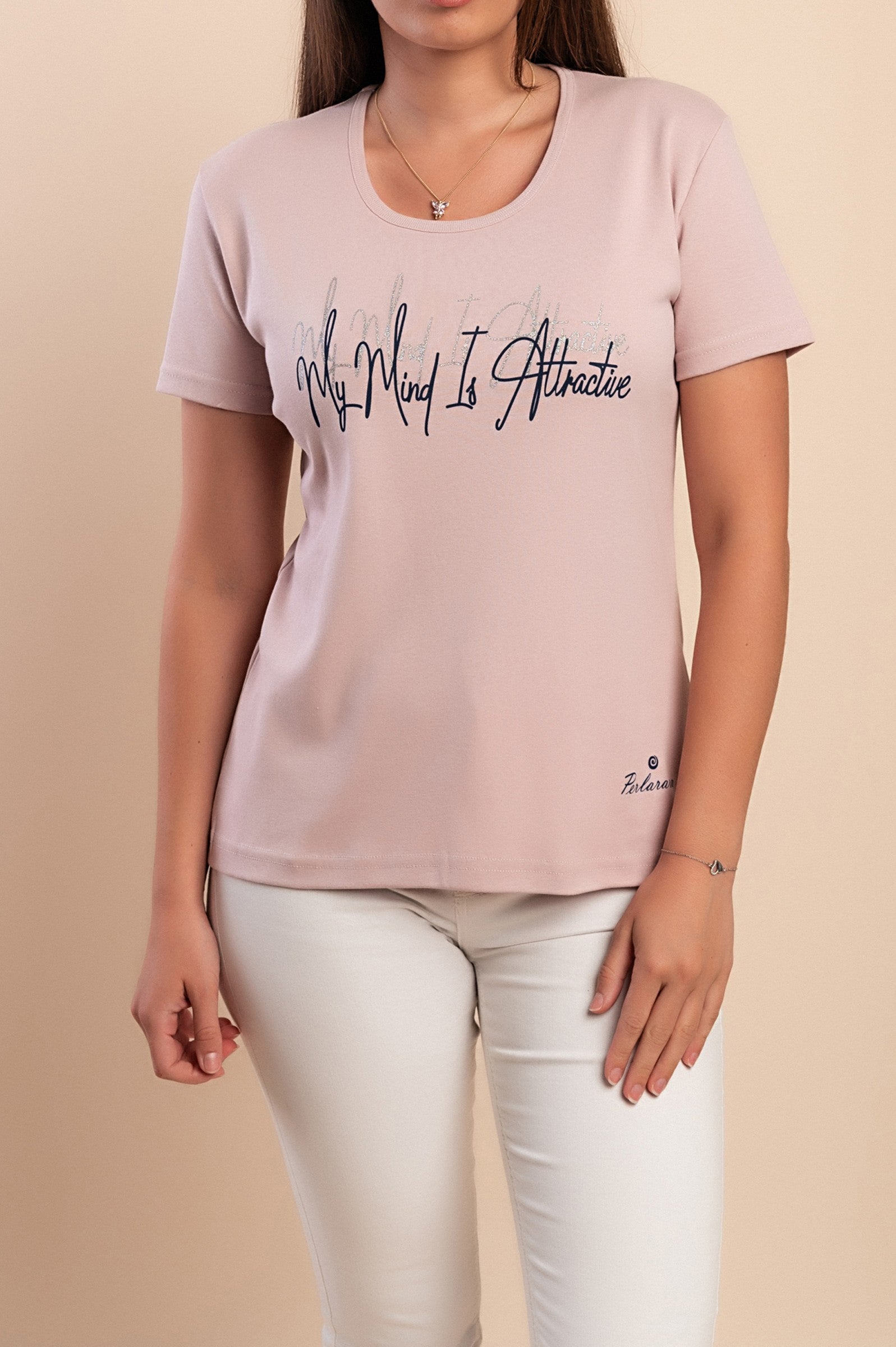 T-shirt in viscosa con dettaglio decorativo, beige