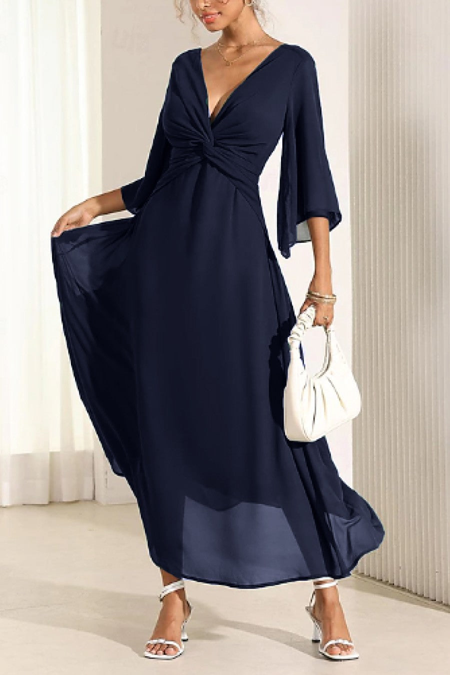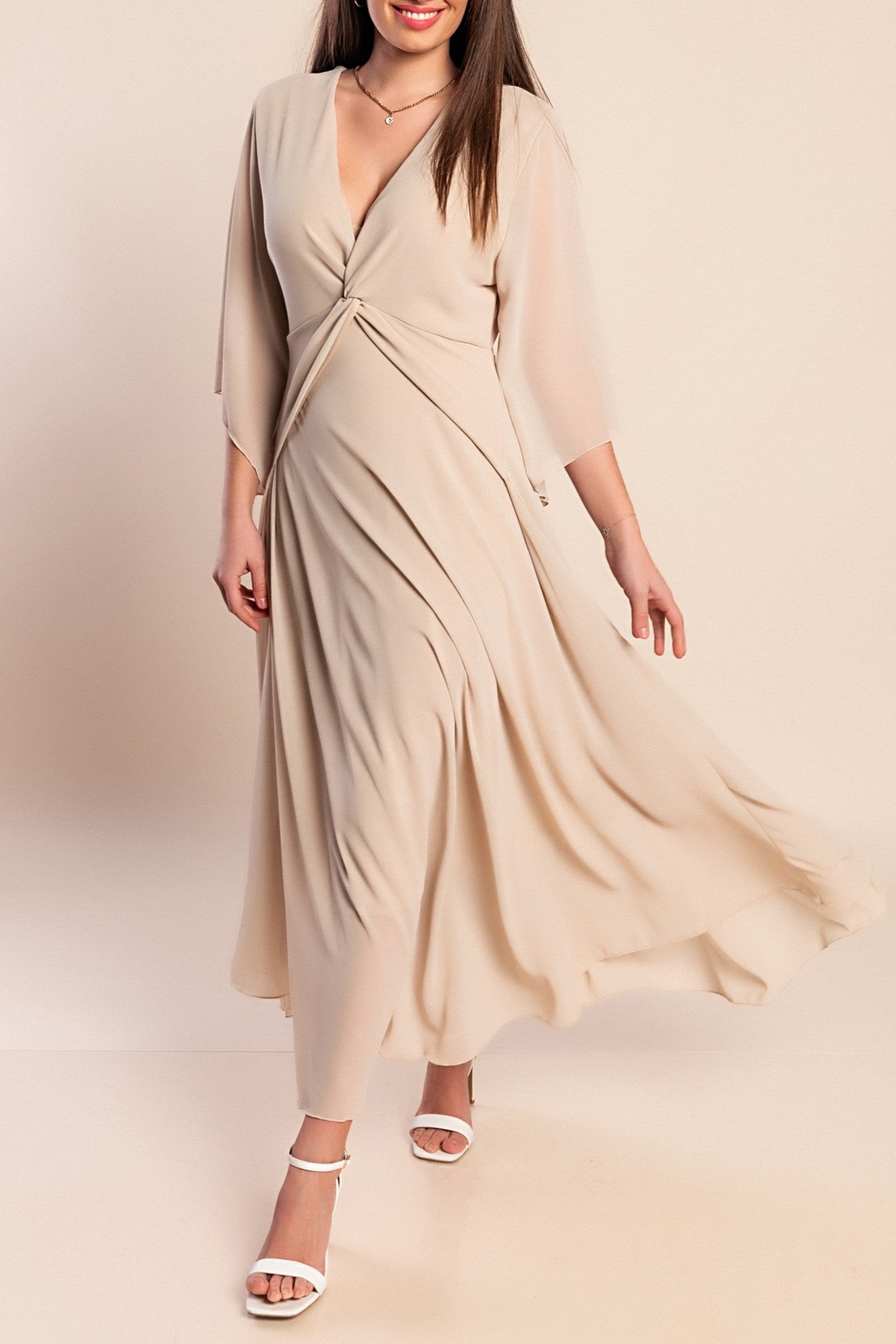 Abito lungo elegante, verde oliva