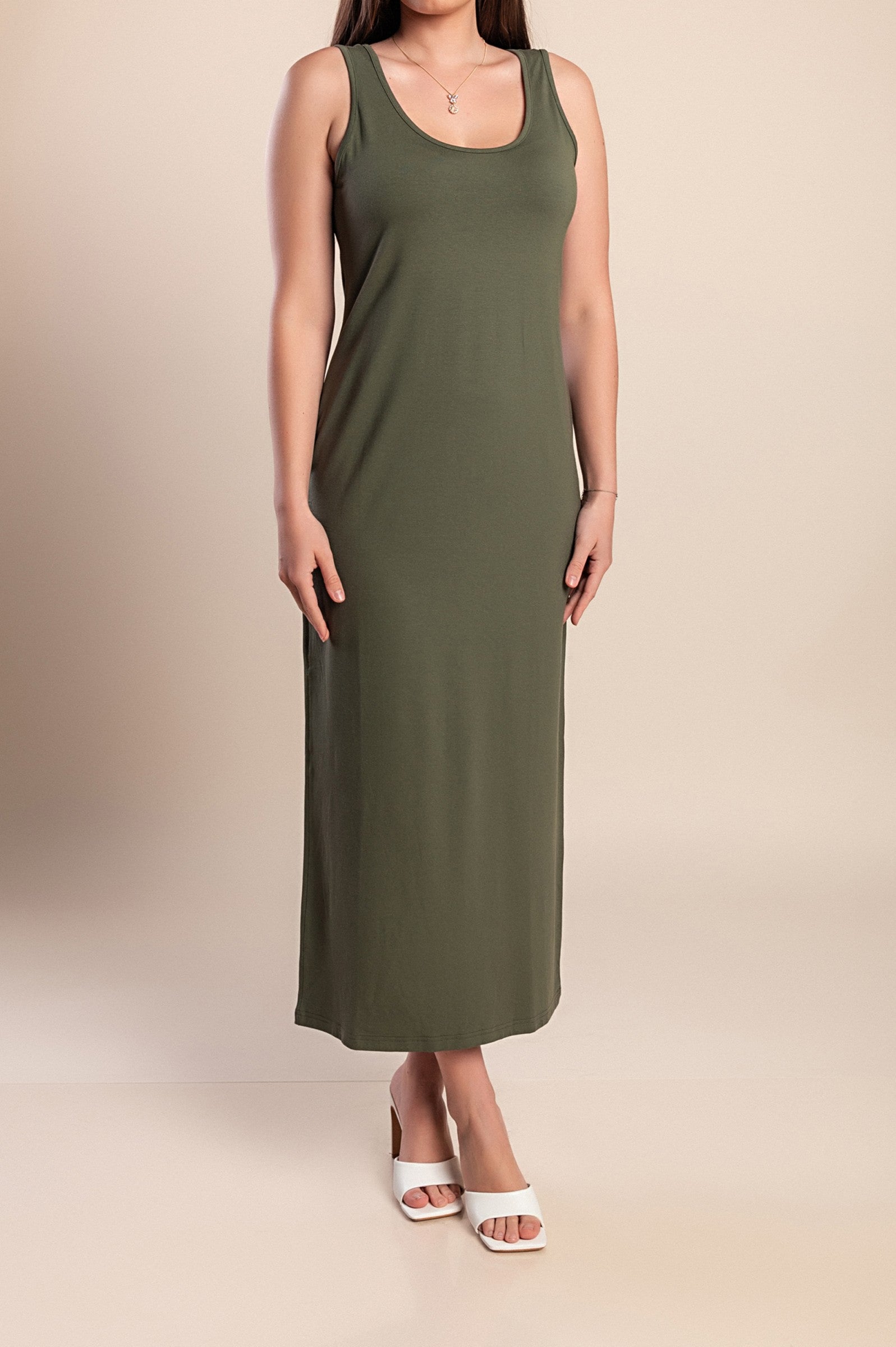 Abito lungo senza maniche, verde oliva