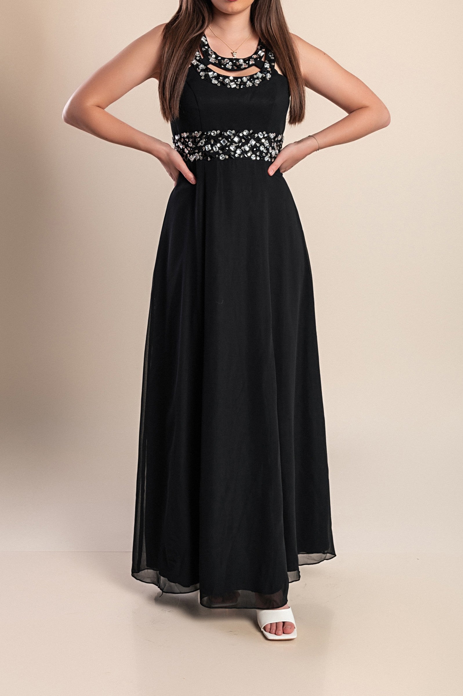 Abito lungo con dettagli decorativi, nero