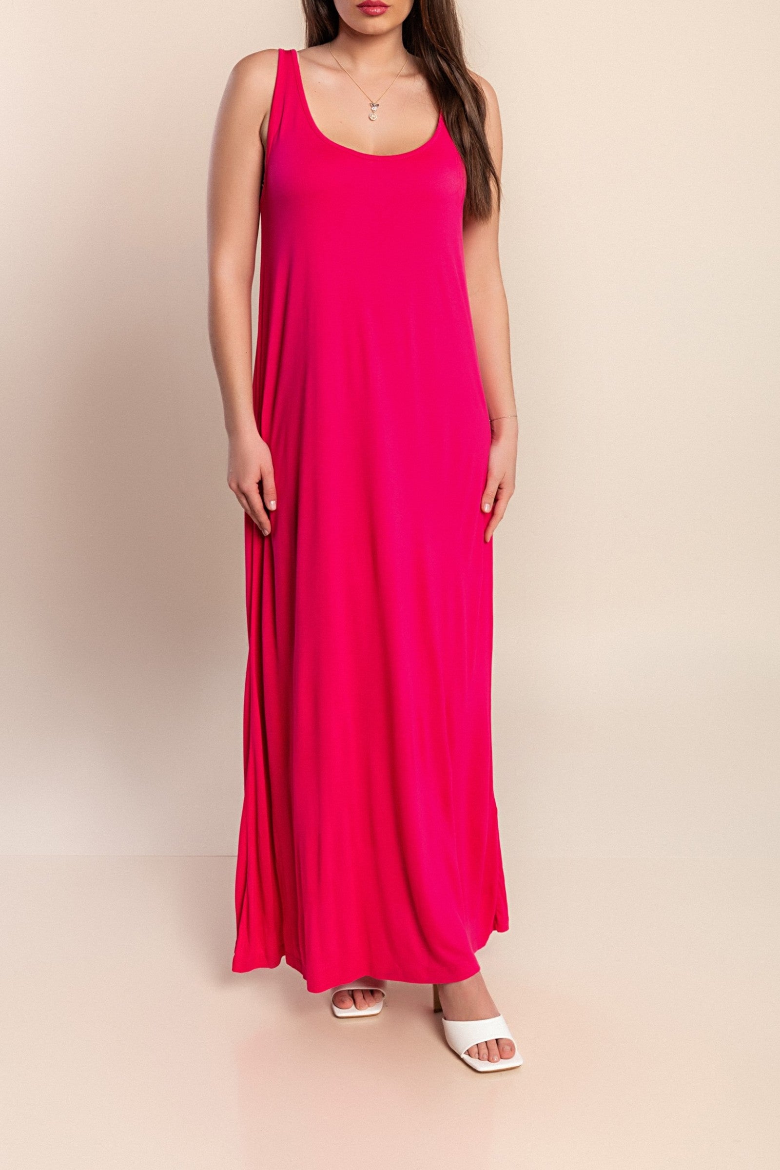 Abito lungo taglie forti, fucsia