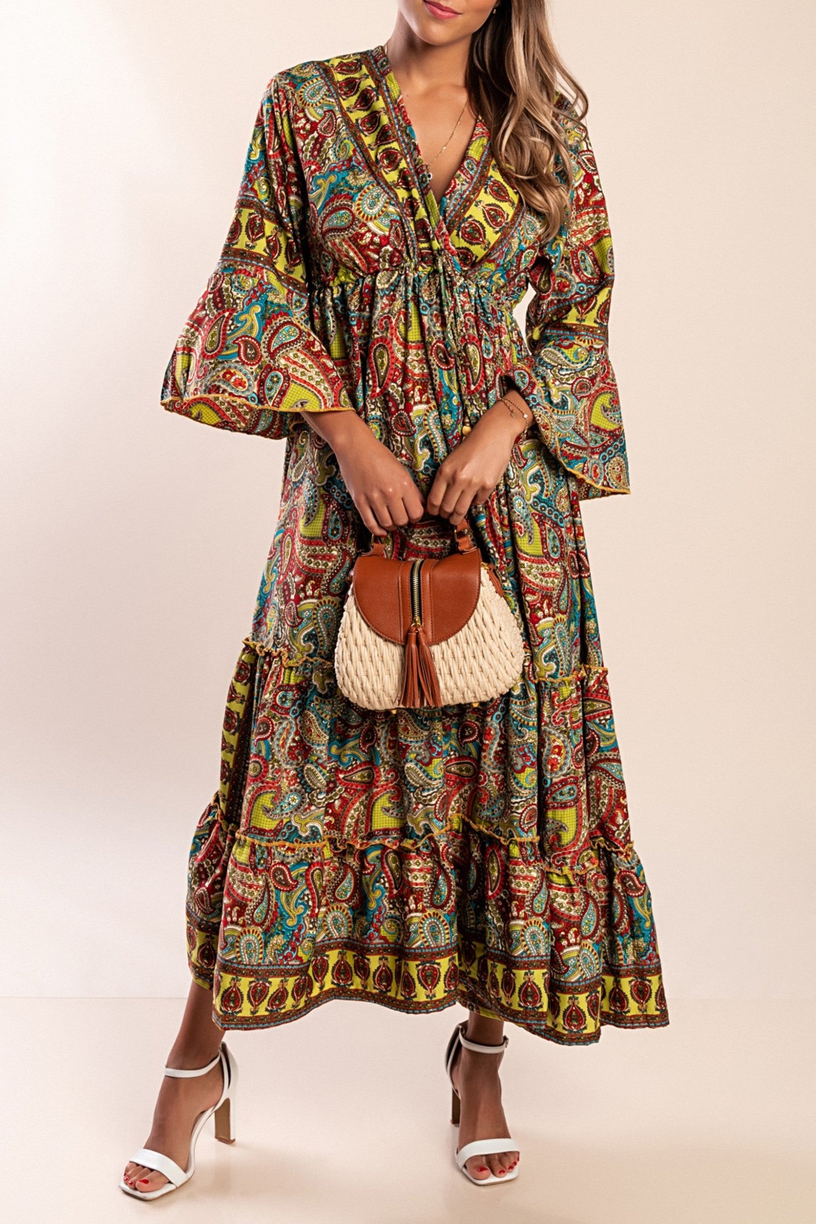 Abito lungo con scollo a V, maniche corte e stampa floreale. È inclusa una cintura decorativa. Codice articolo:...Prezzo di listino €41,90 EURPrezzo scontato €41,90 EUR Prezzo di listinoPrezzo unitario per€79,90 EUR -