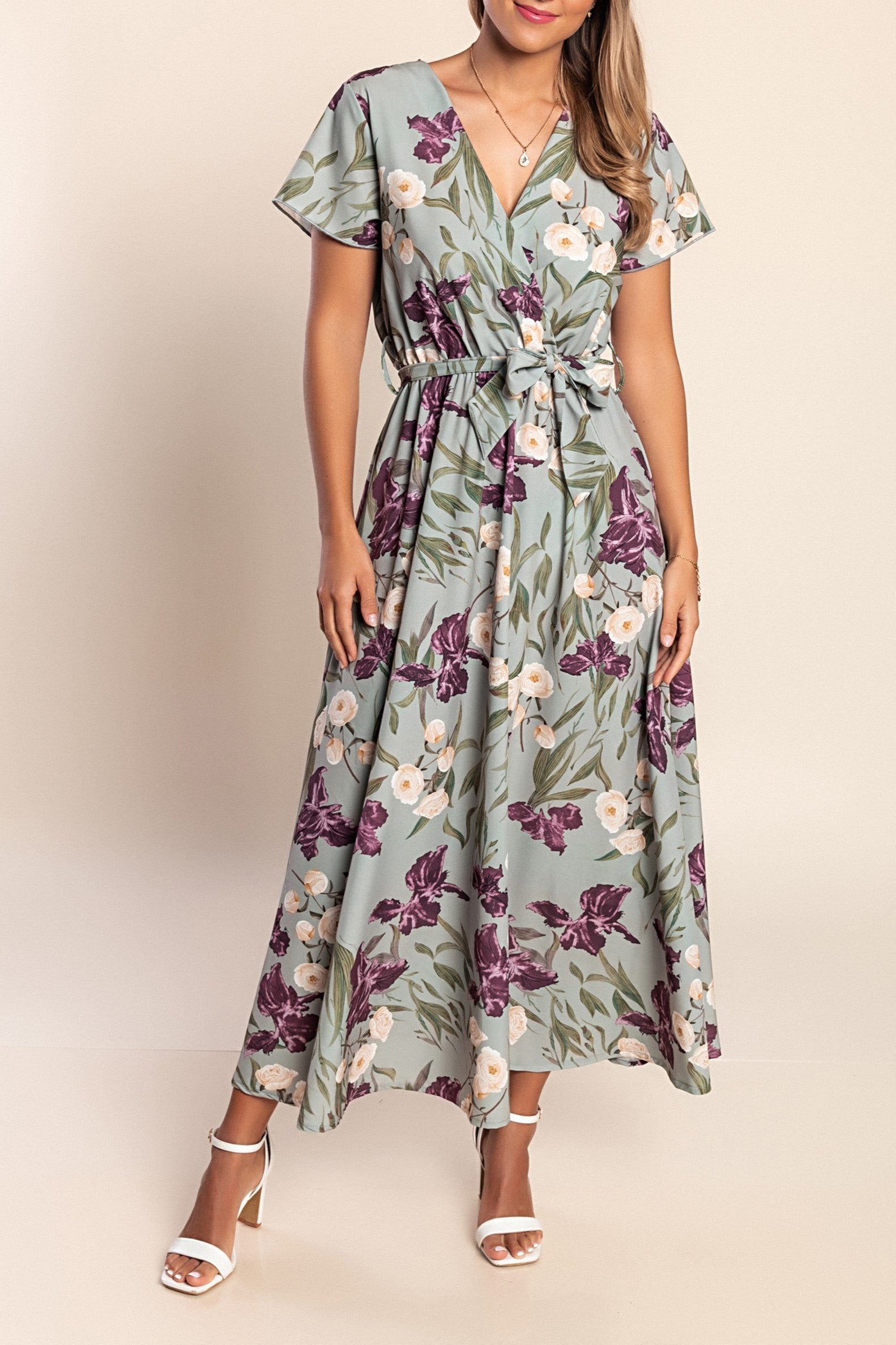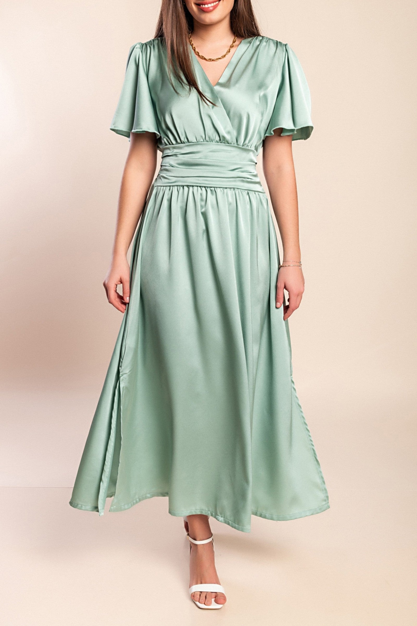 Abito lungo con maniche corte, menta