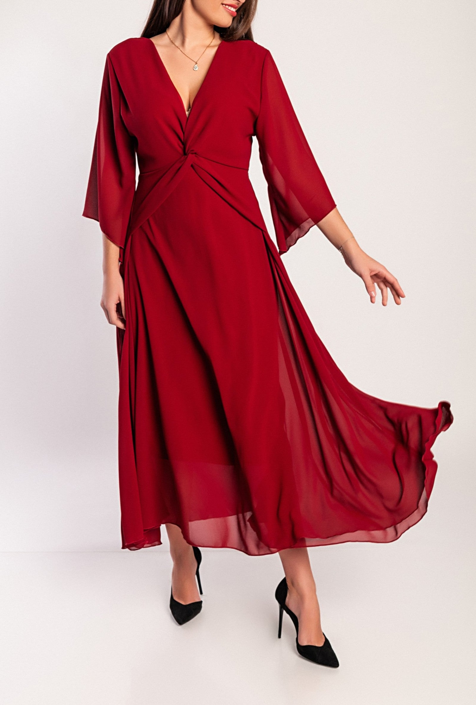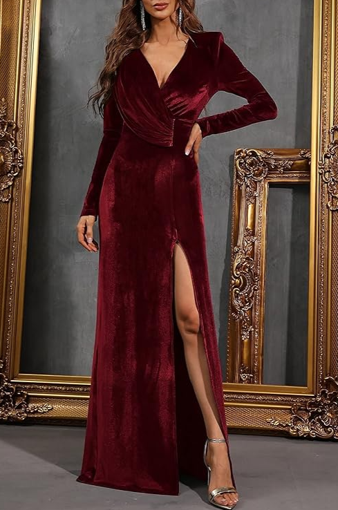 Abito lungo con spacco, bordeaux