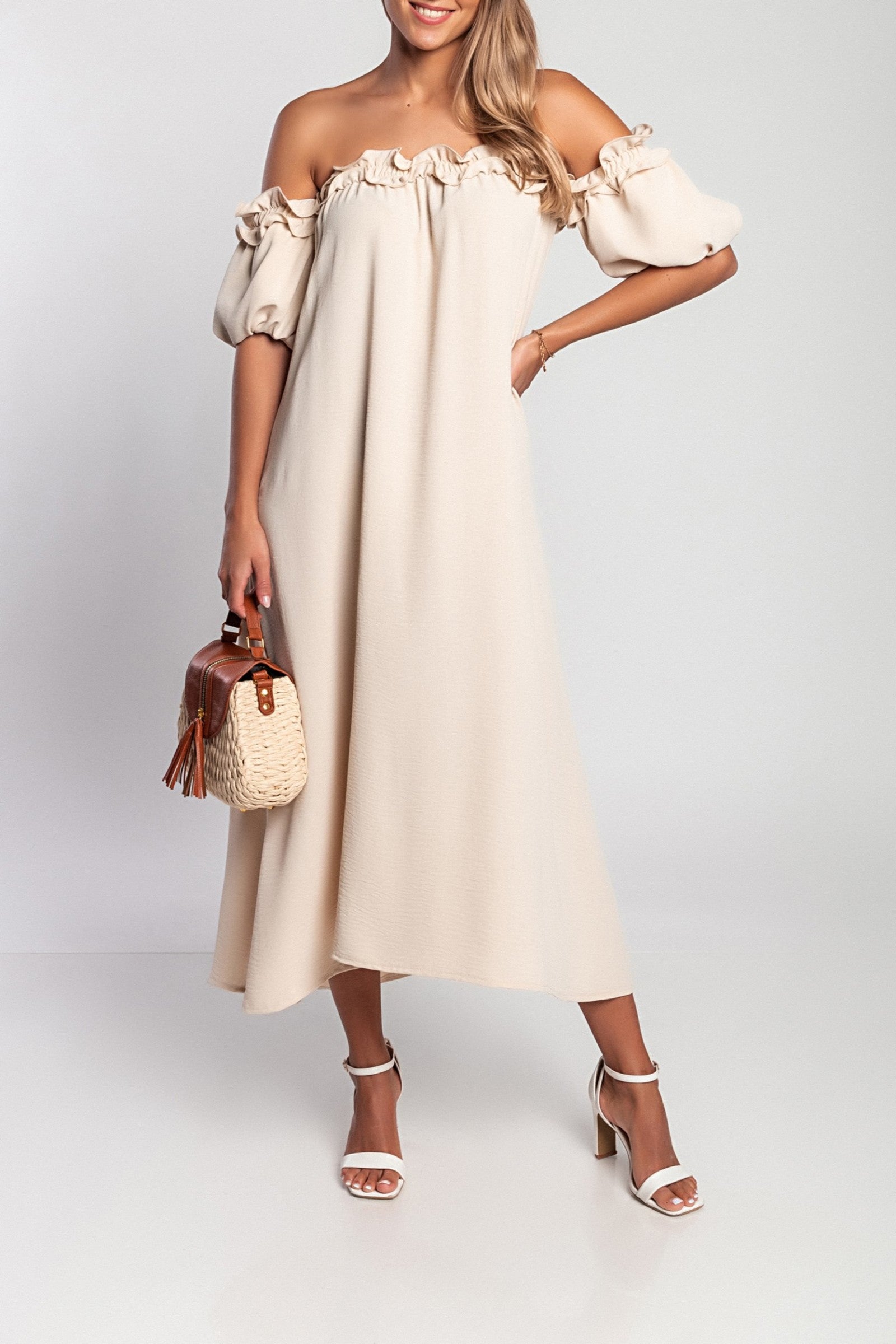 Abito lungo con spalle scoperte, maniche corte e volant. Vestibilità ampia. Codice articolo: 21575 Colore dell'articolo: beigePrezzo di listino €24,90 EURPrezzo scontato €24,90 EUR Prezzo di listinoPrezzo unitario per€59,90 EUR -