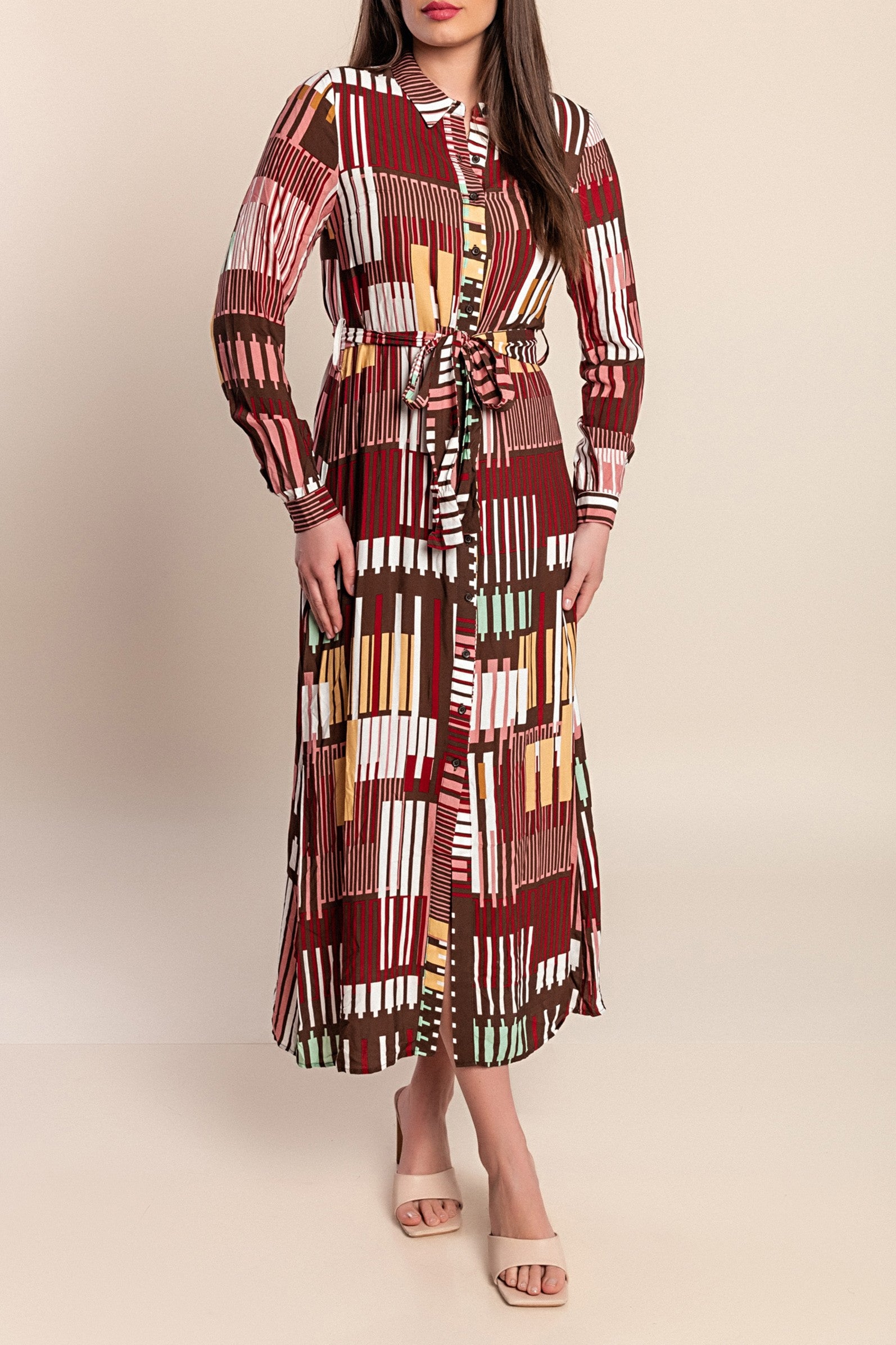 Elegante maxi abito con stampa a righe, multicolor
