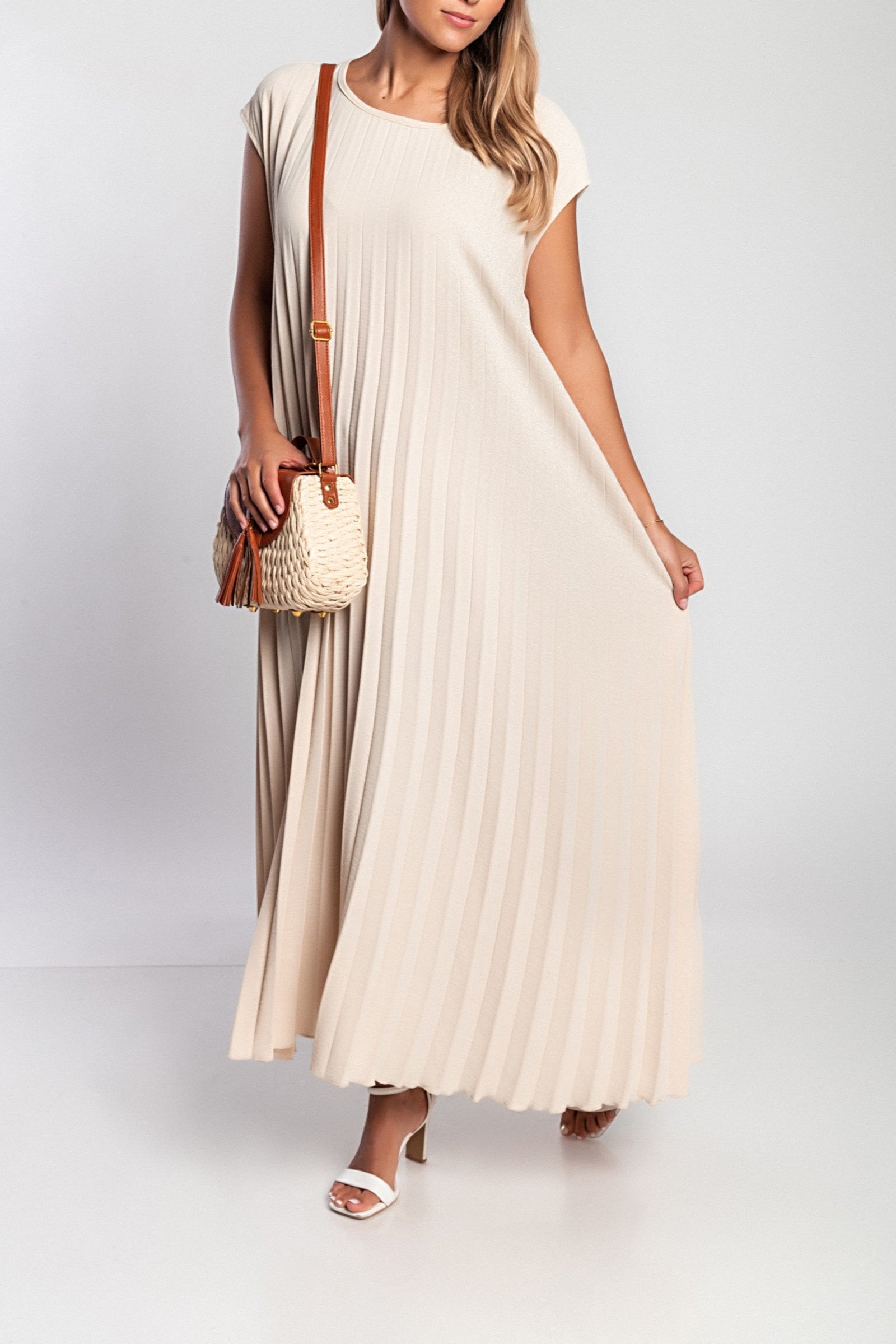 Abito lungo plissettato, beige