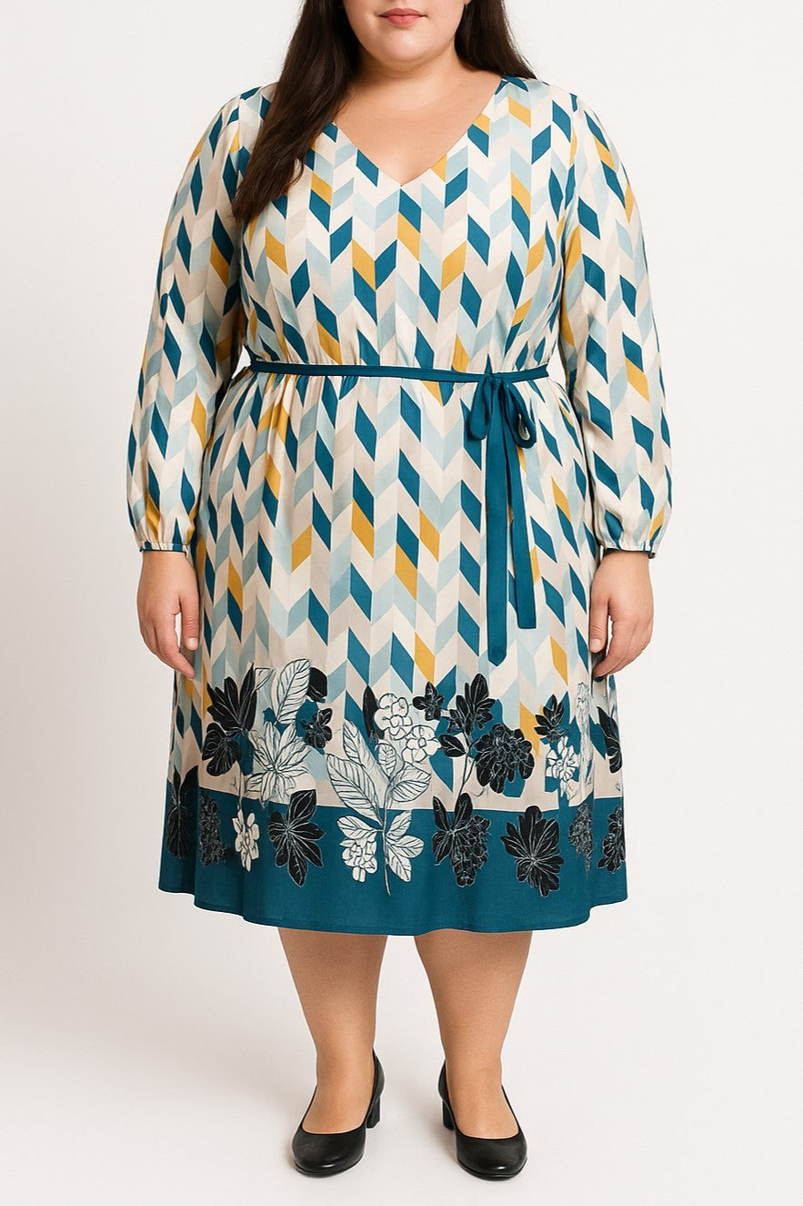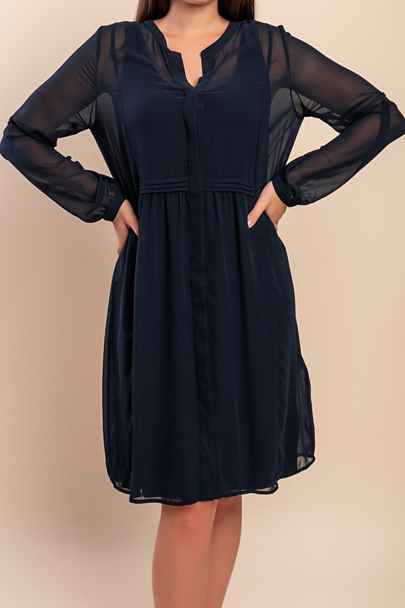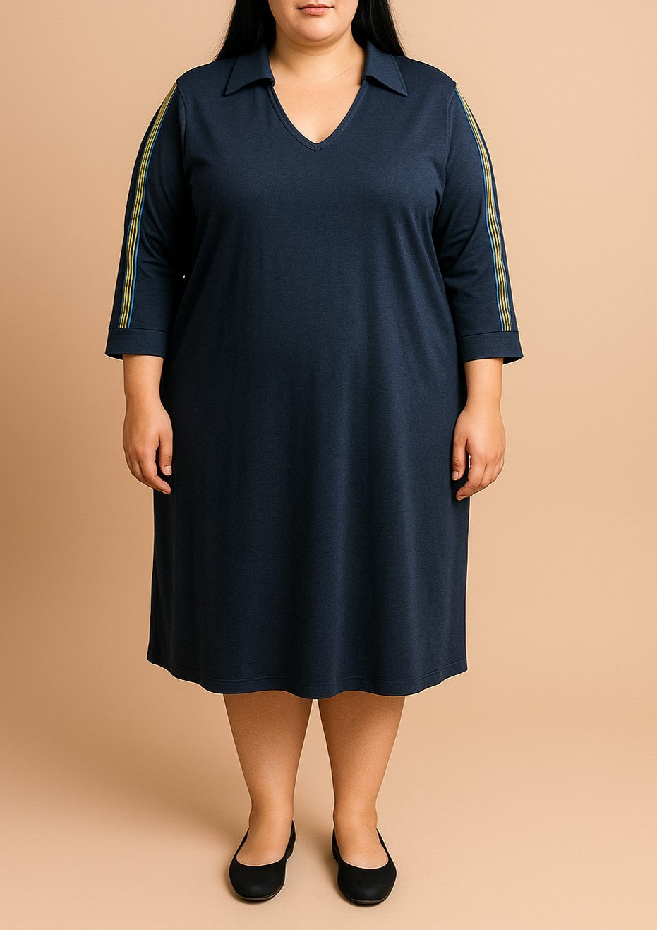 Abito midi taglie forti con maniche lunghe, blu scuro