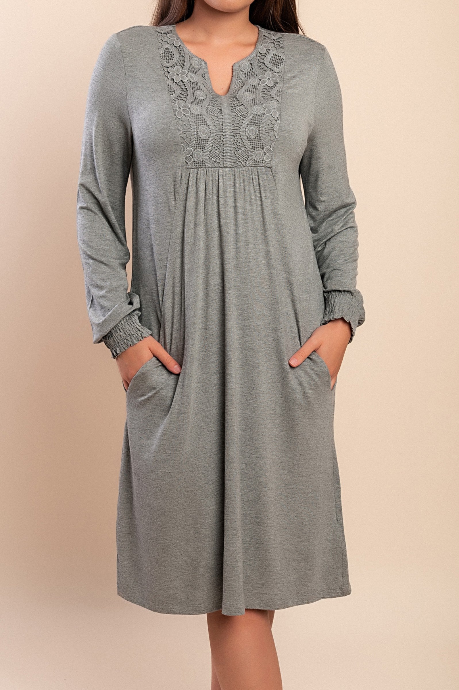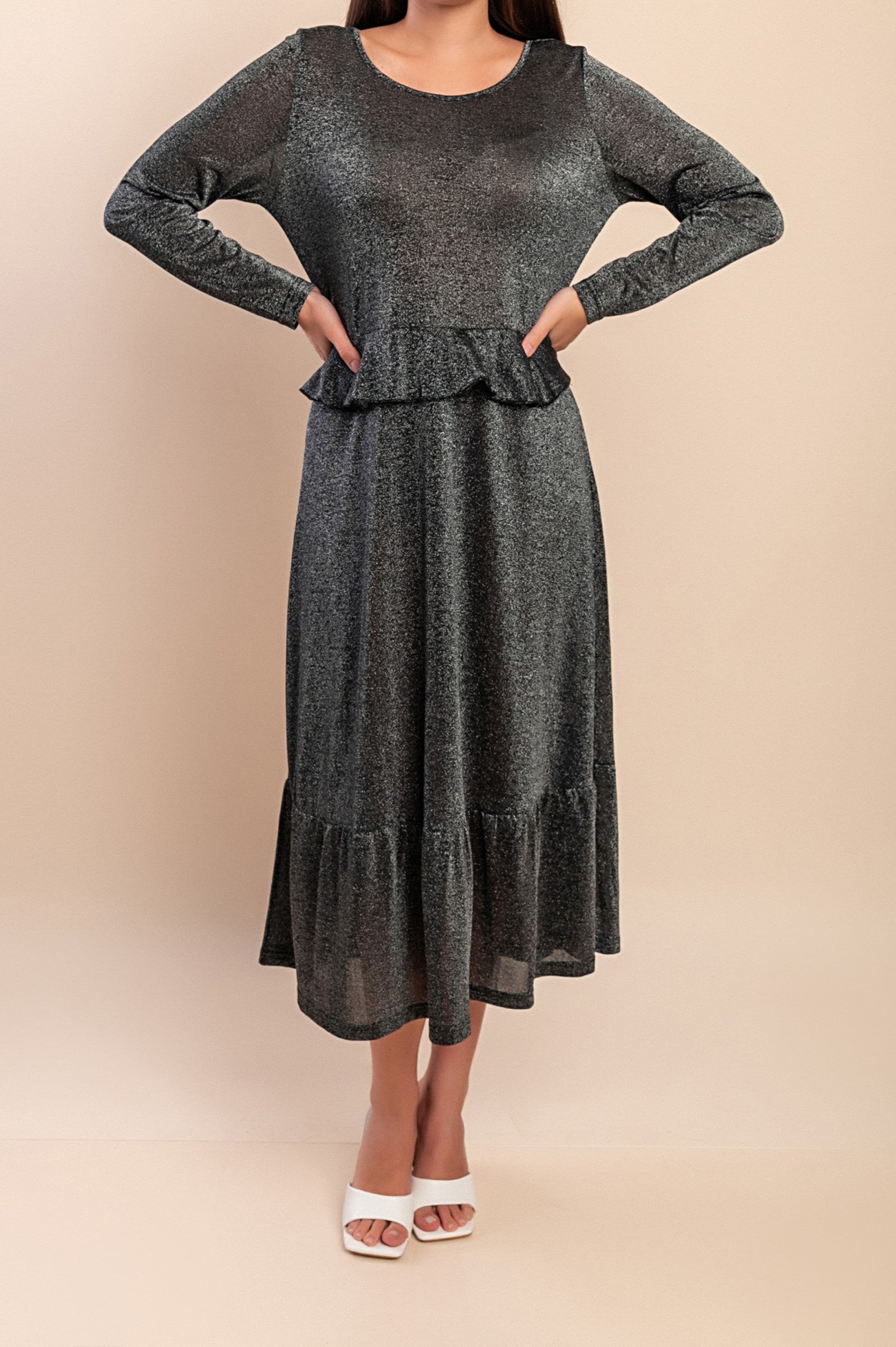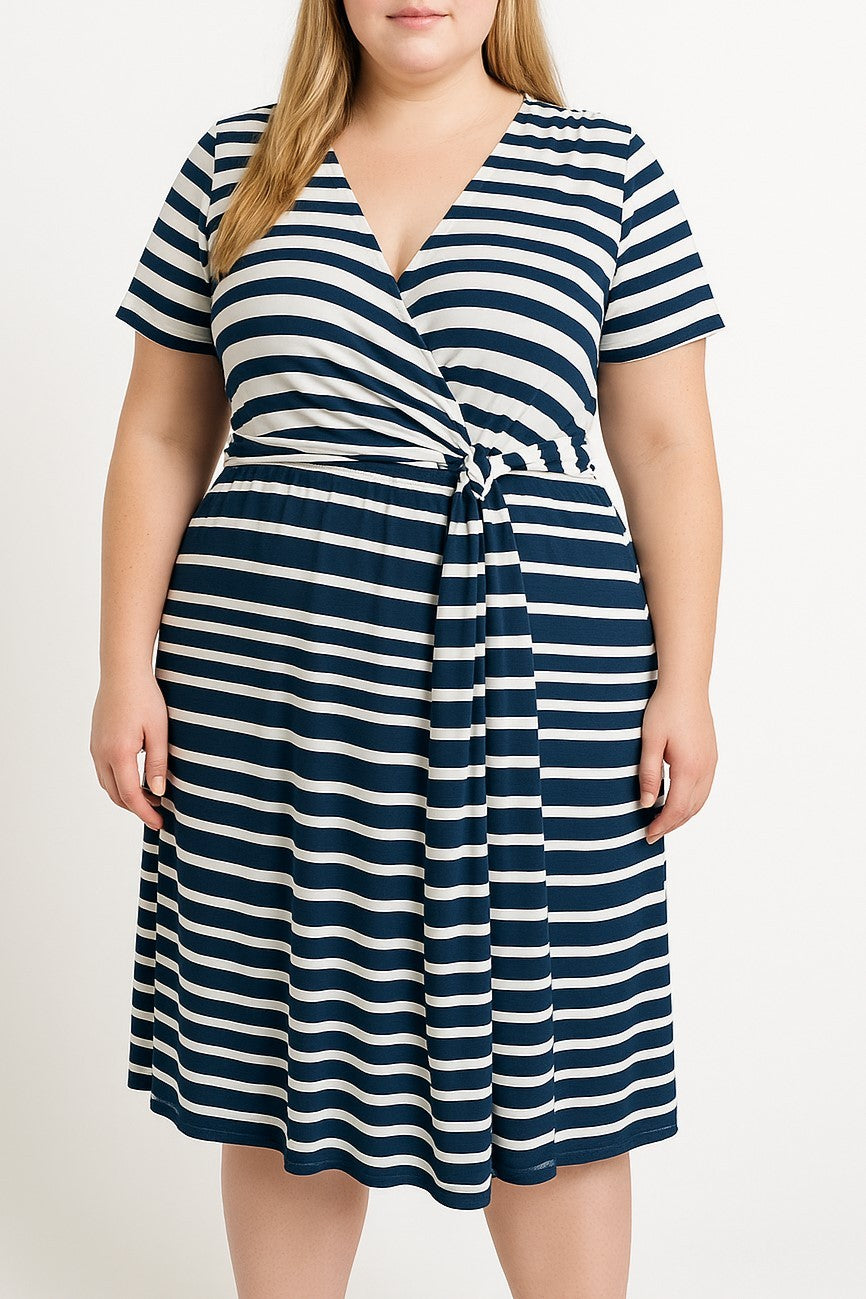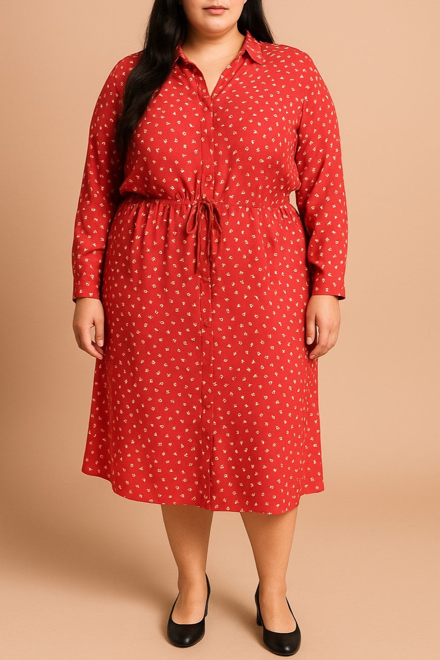 Abito midi taglie forti con maniche lunghe, blu scuro
