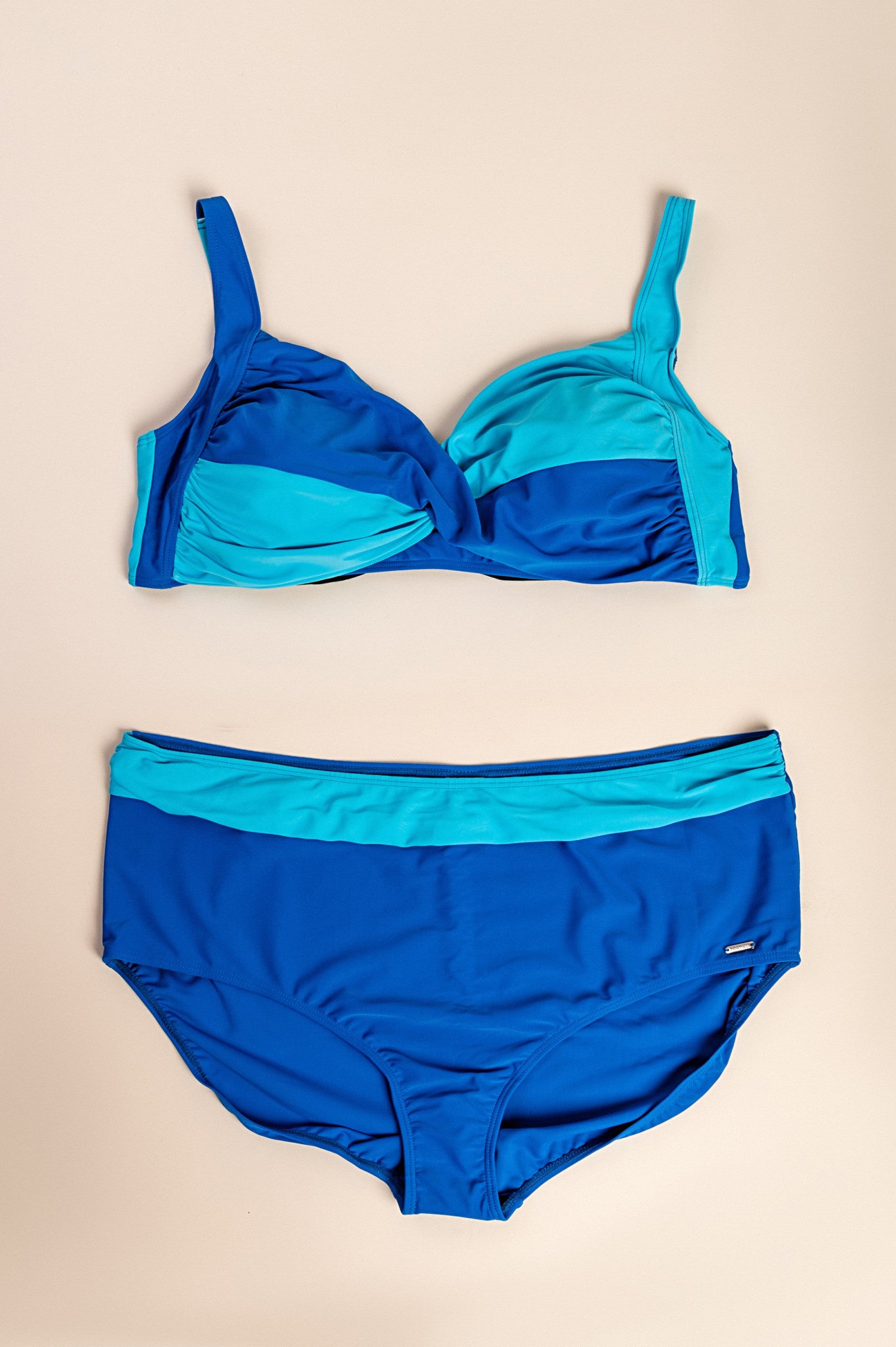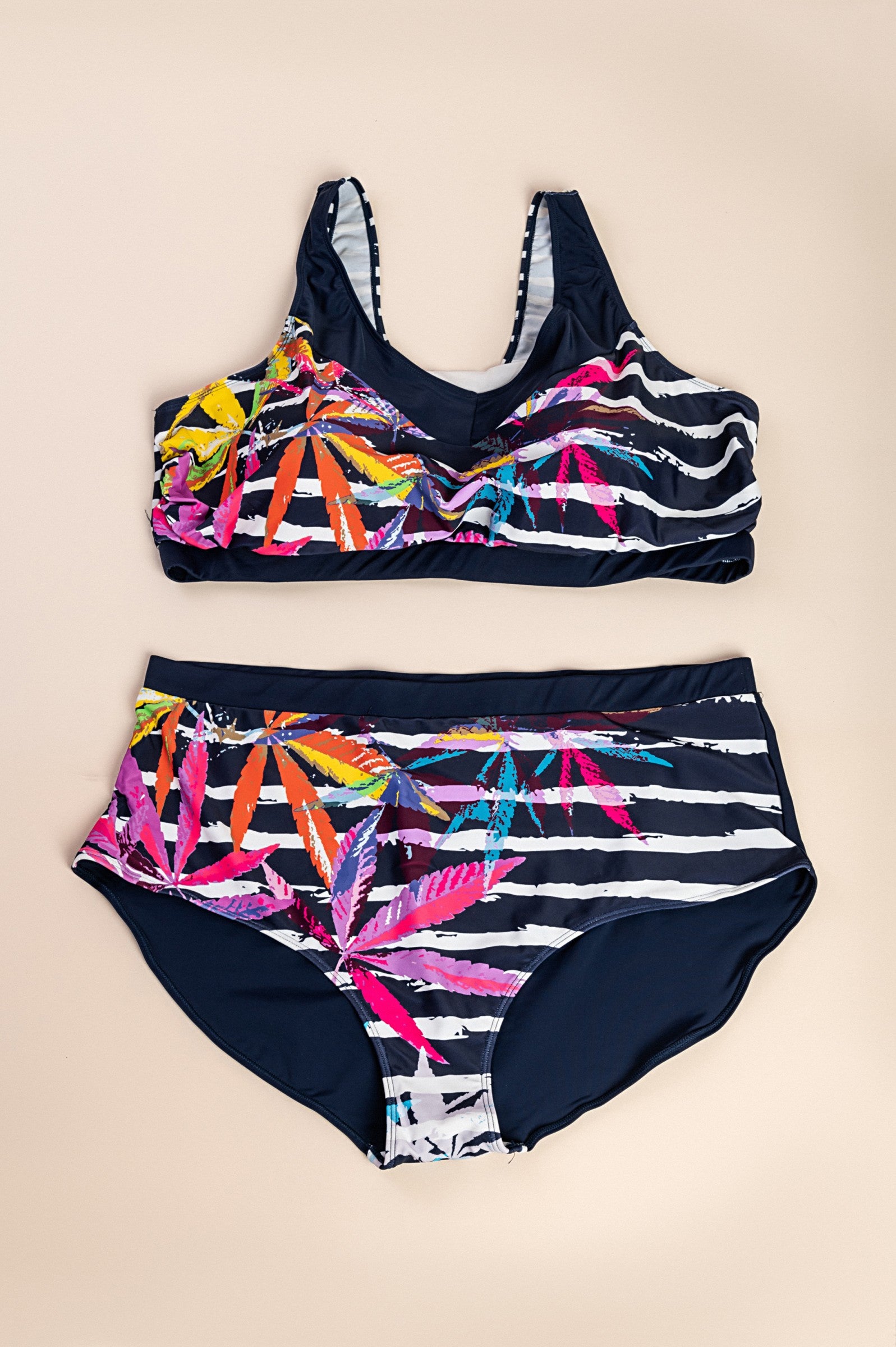 Costume da bagno due pezzi taglie forti con stampa, blu