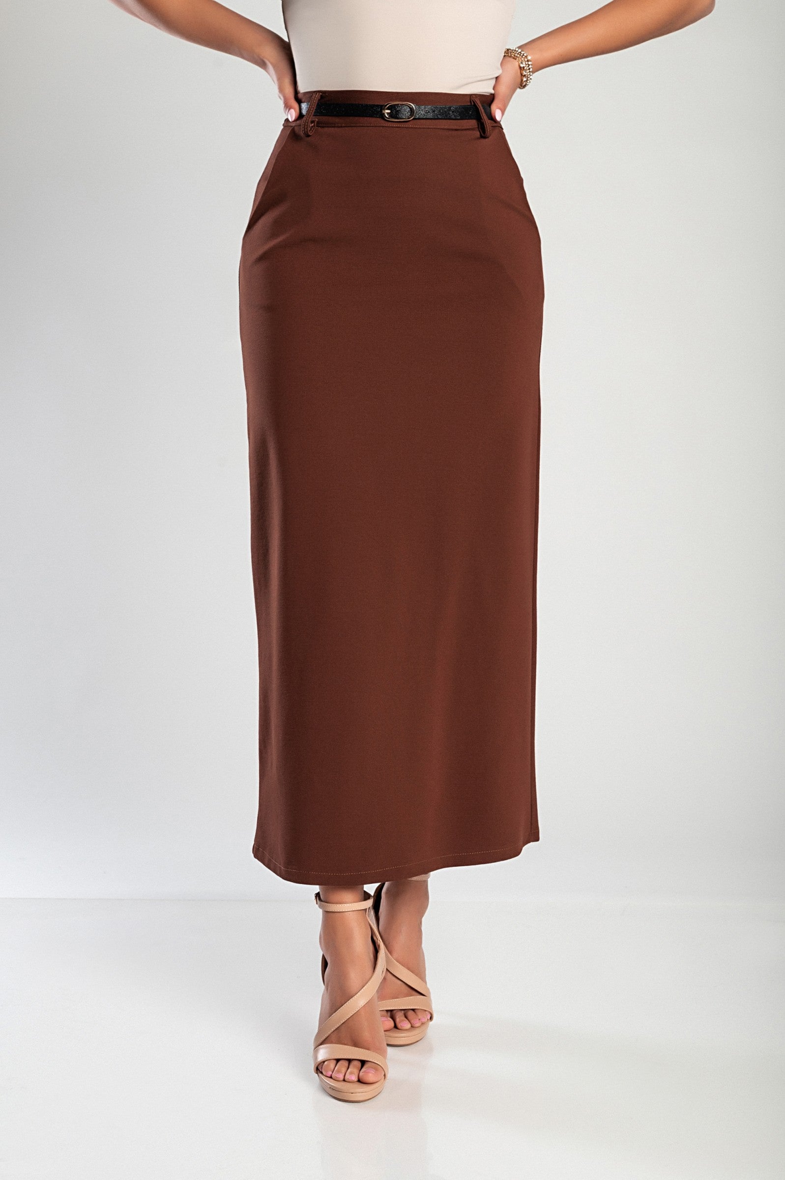 Gonna midi elegante, marrone