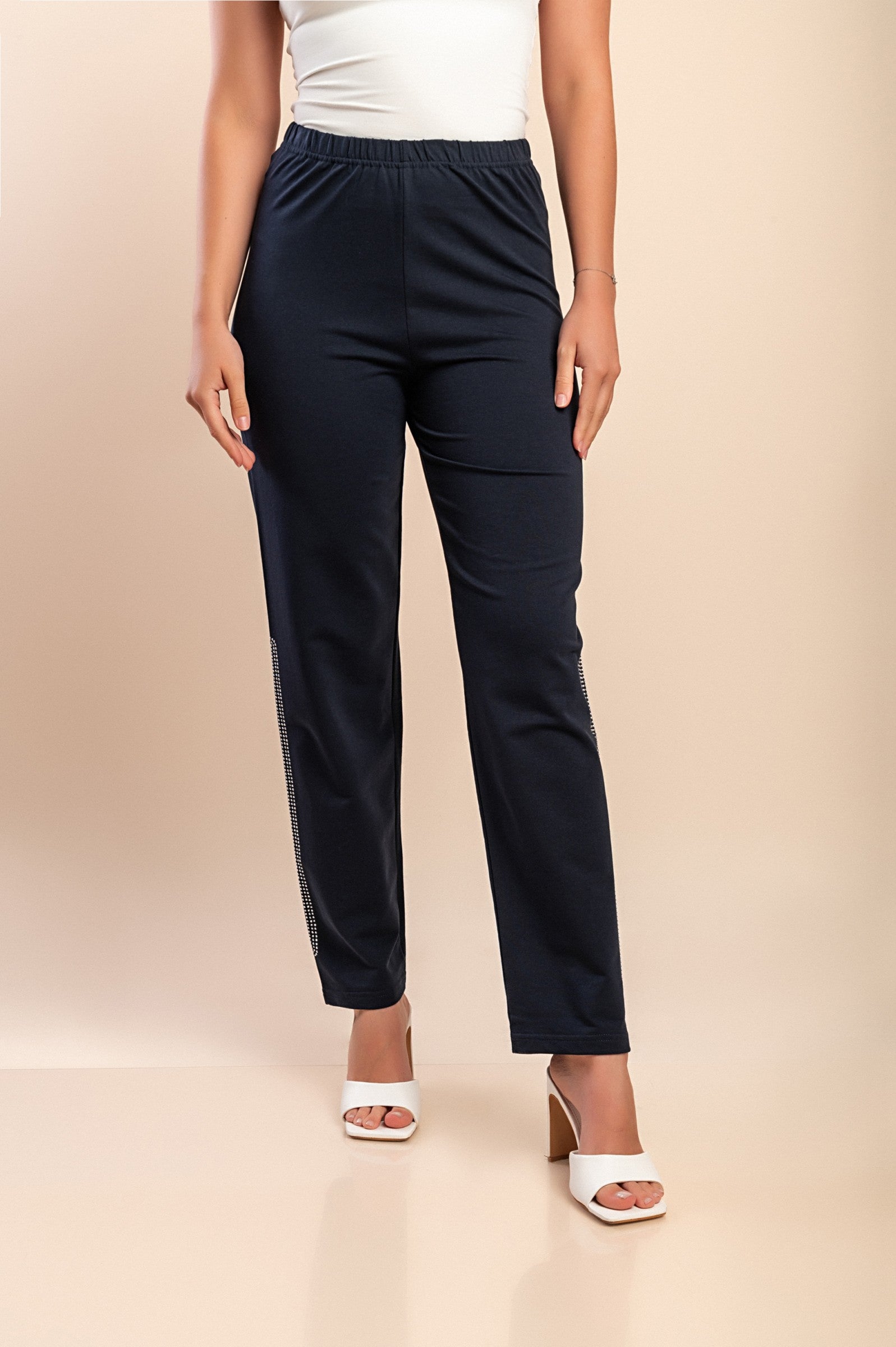 Pantaloni in cotone con dettaglio decorativo, blu scuro
