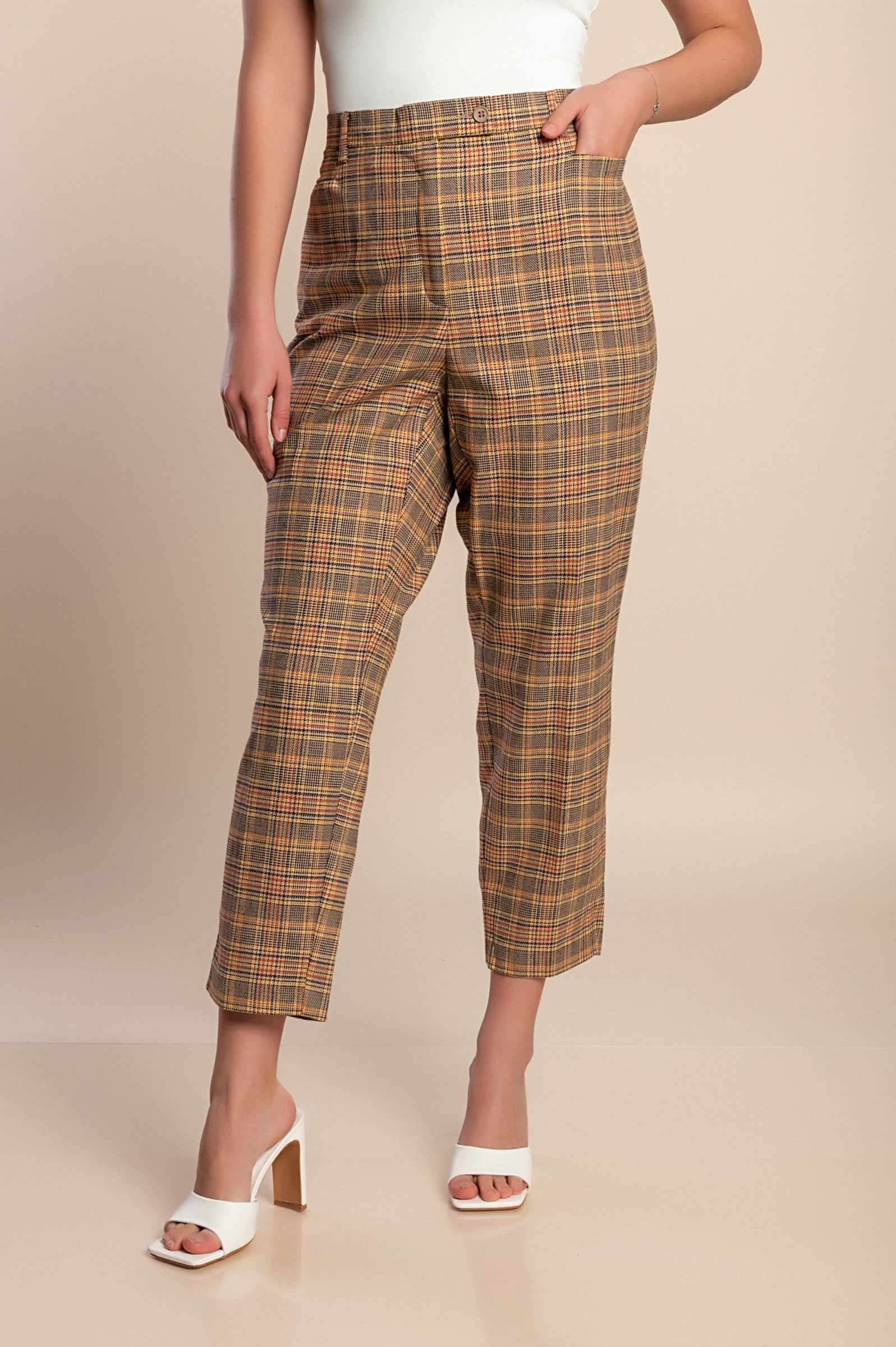 Pantaloni a quadri taglie forti, marroni