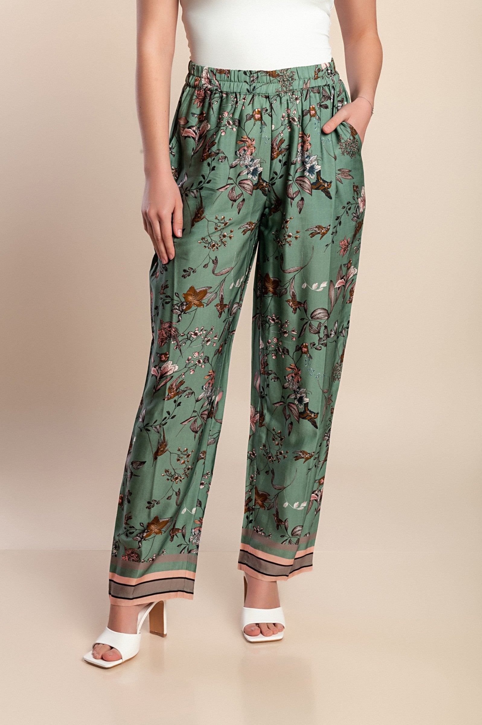 Pantaloni lunghi con stampa, verdi