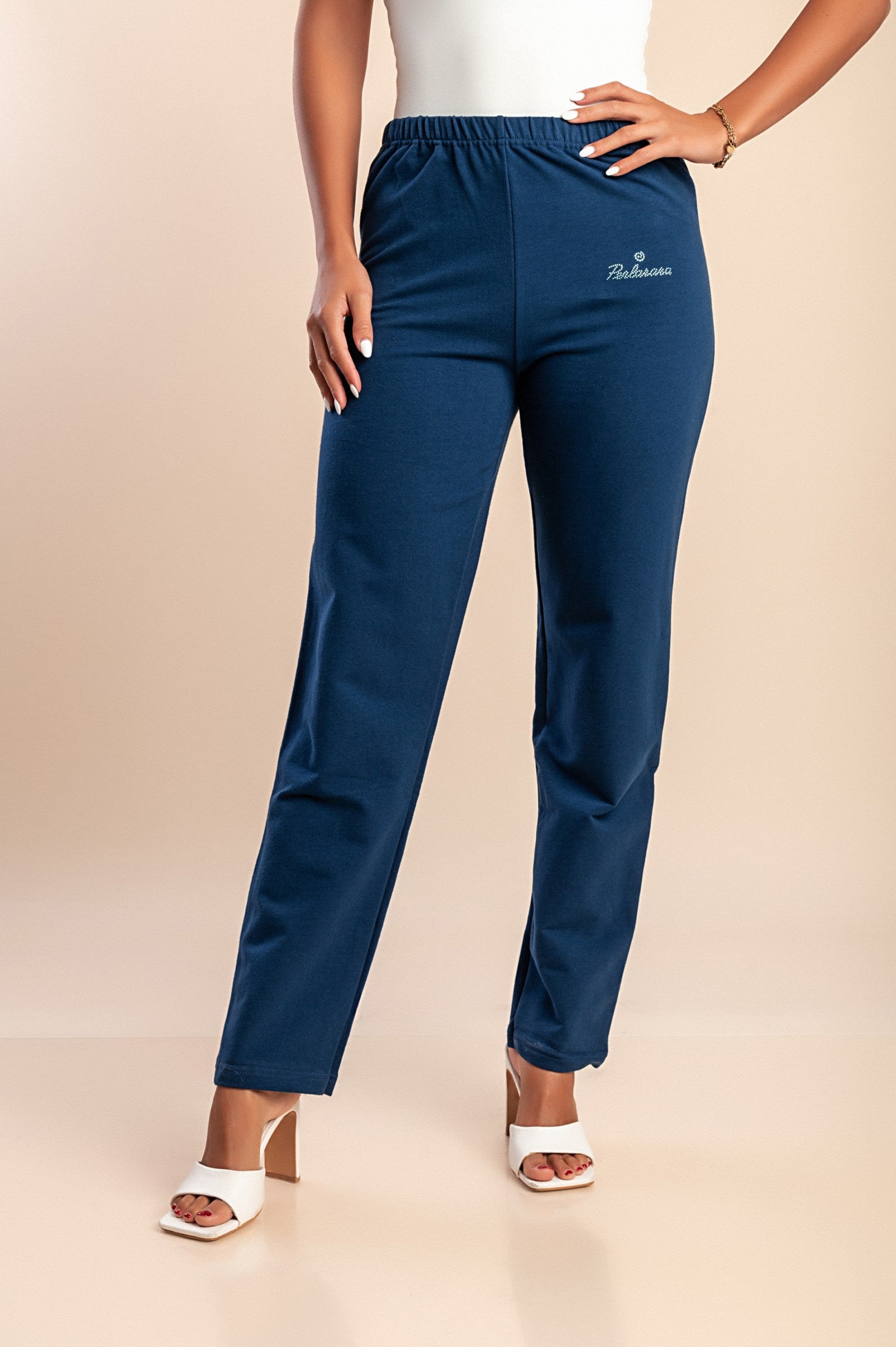 Pantaloni in cotone con elastico, blu